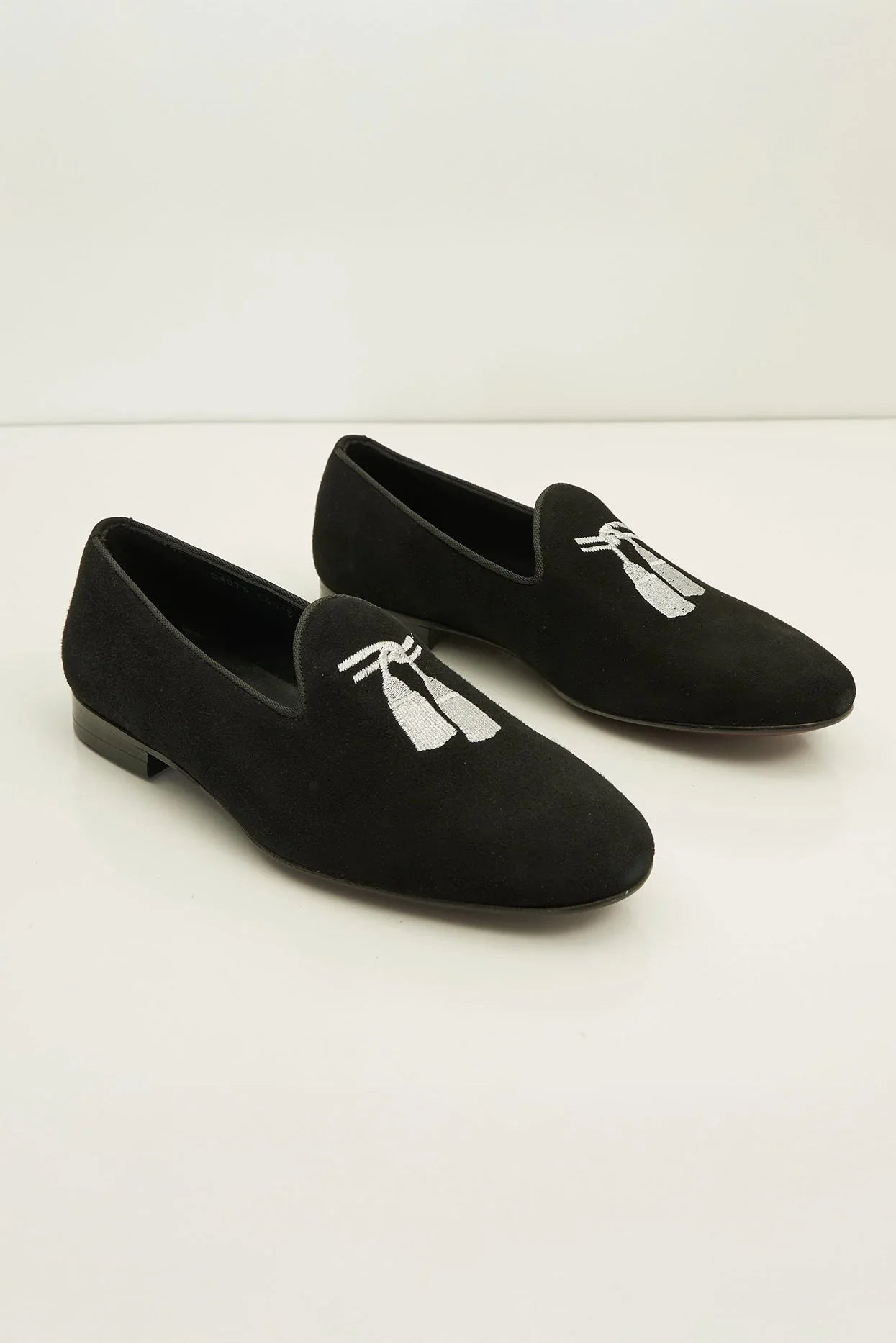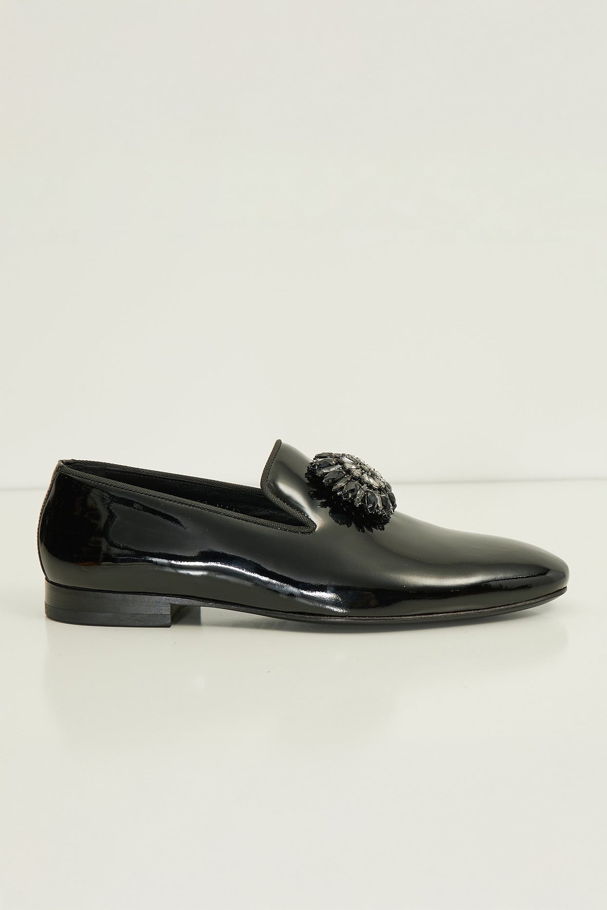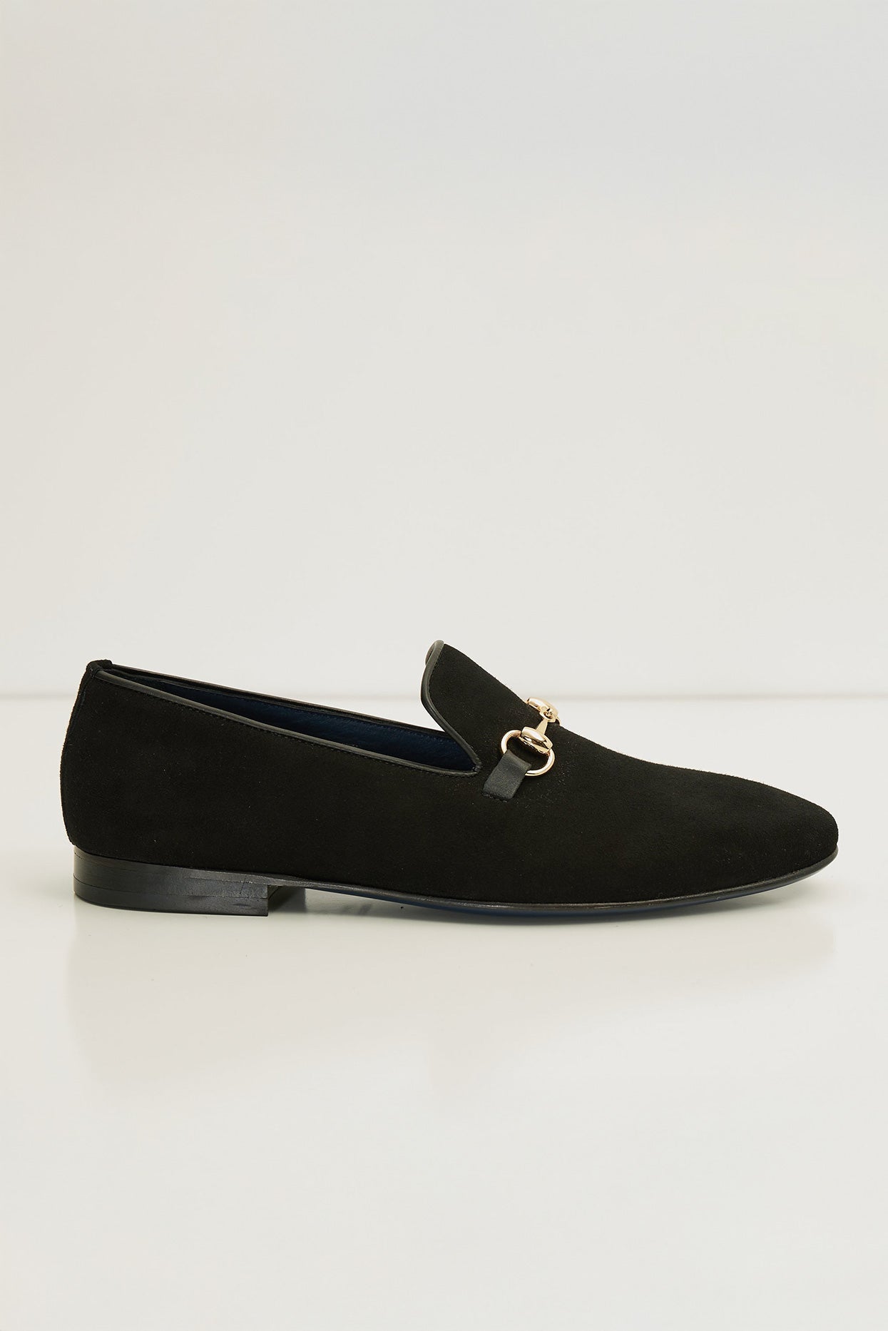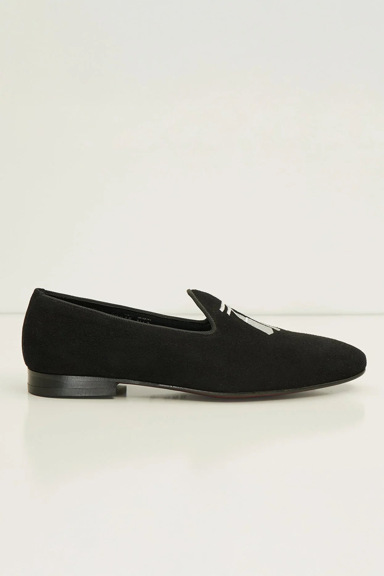 The Crystal Jewel Formal Leather Loafer - Black Suede