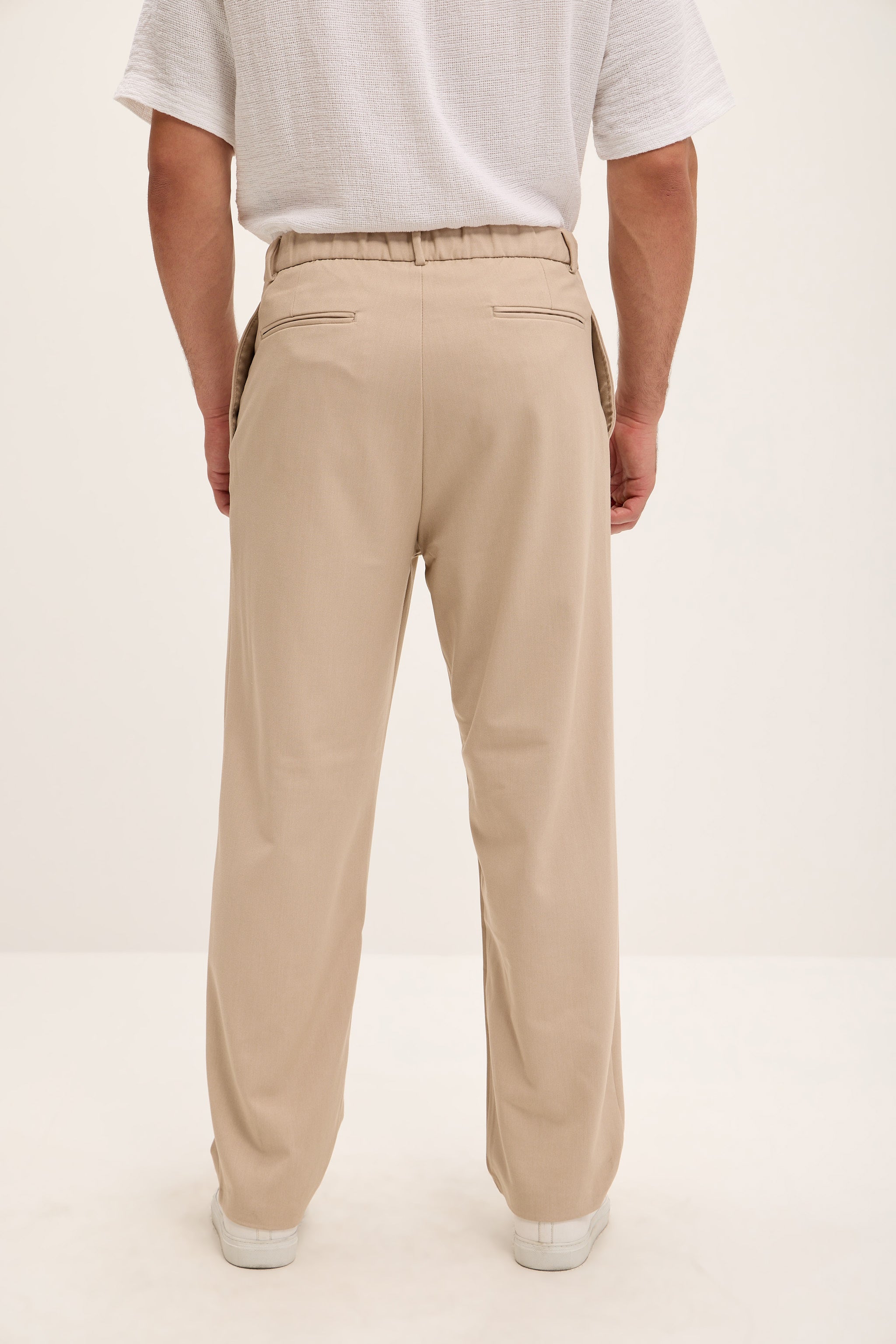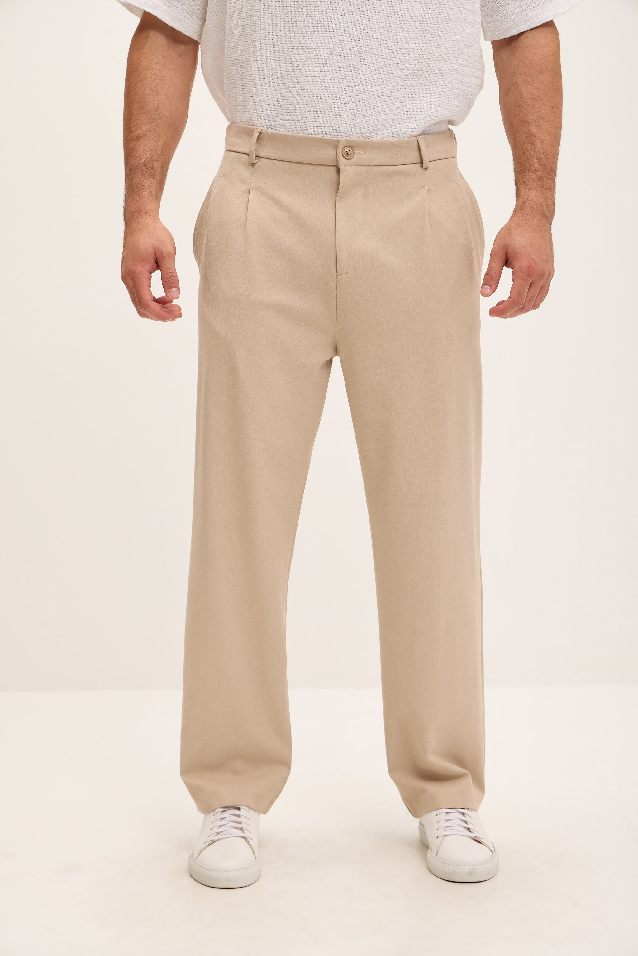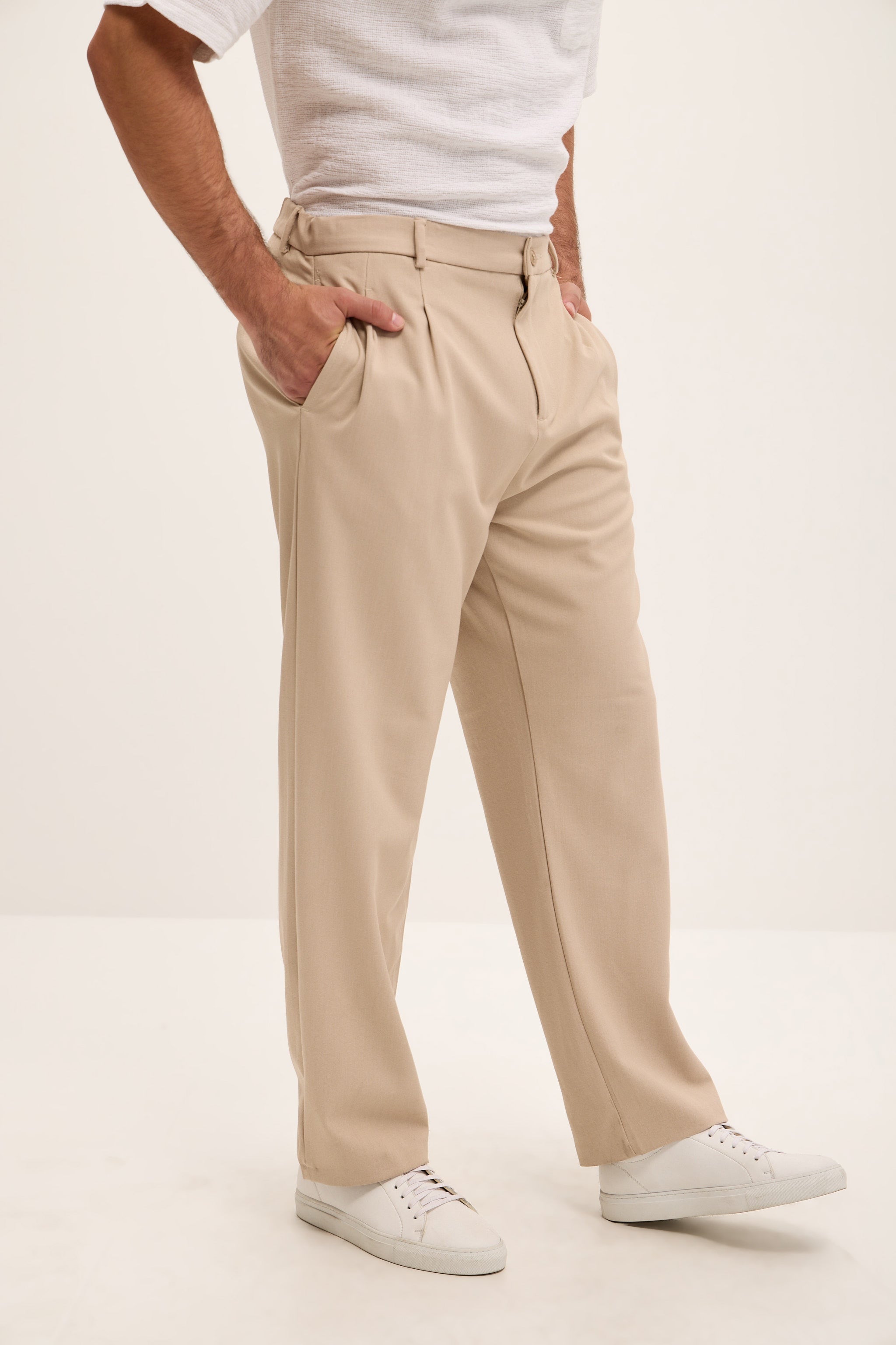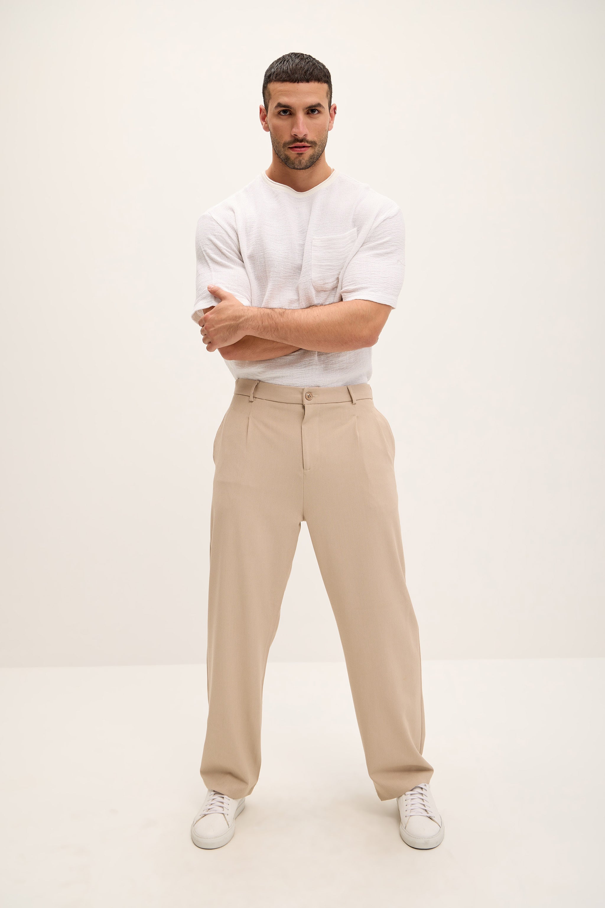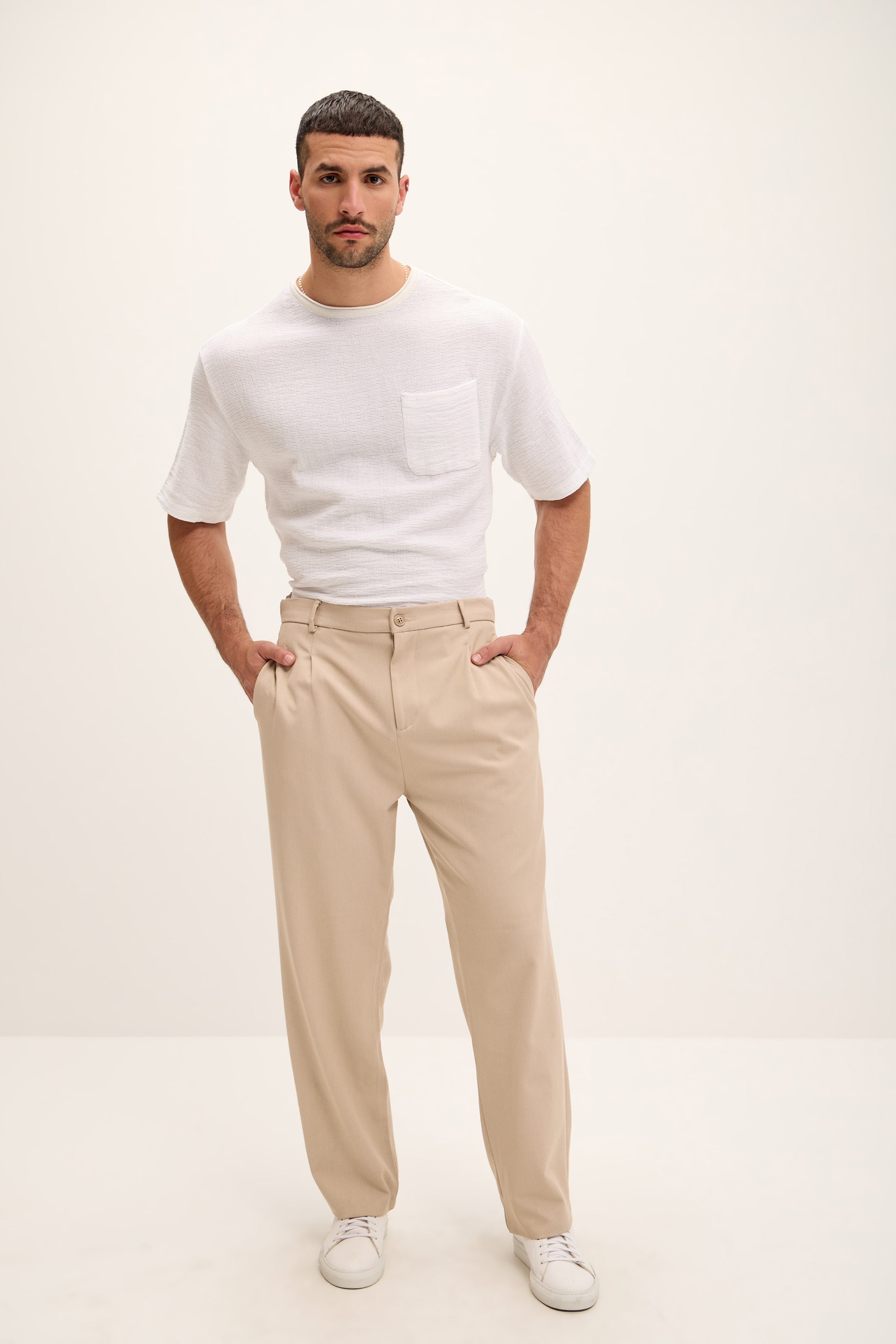Diese lässige Hose mit weitem Bein und lockerer Silhouette besticht durch eine einzelne Bundfalte, Gürtelschlaufen sowie tiefe Seiten- und Gesäßtaschen. Der ungekrempelte Saum unterstreicht den entspannten Stil. Kombinieren Sie die Hose mit dem passenden zweireihigen Sakko für einen eleganten und harmonischen Look.