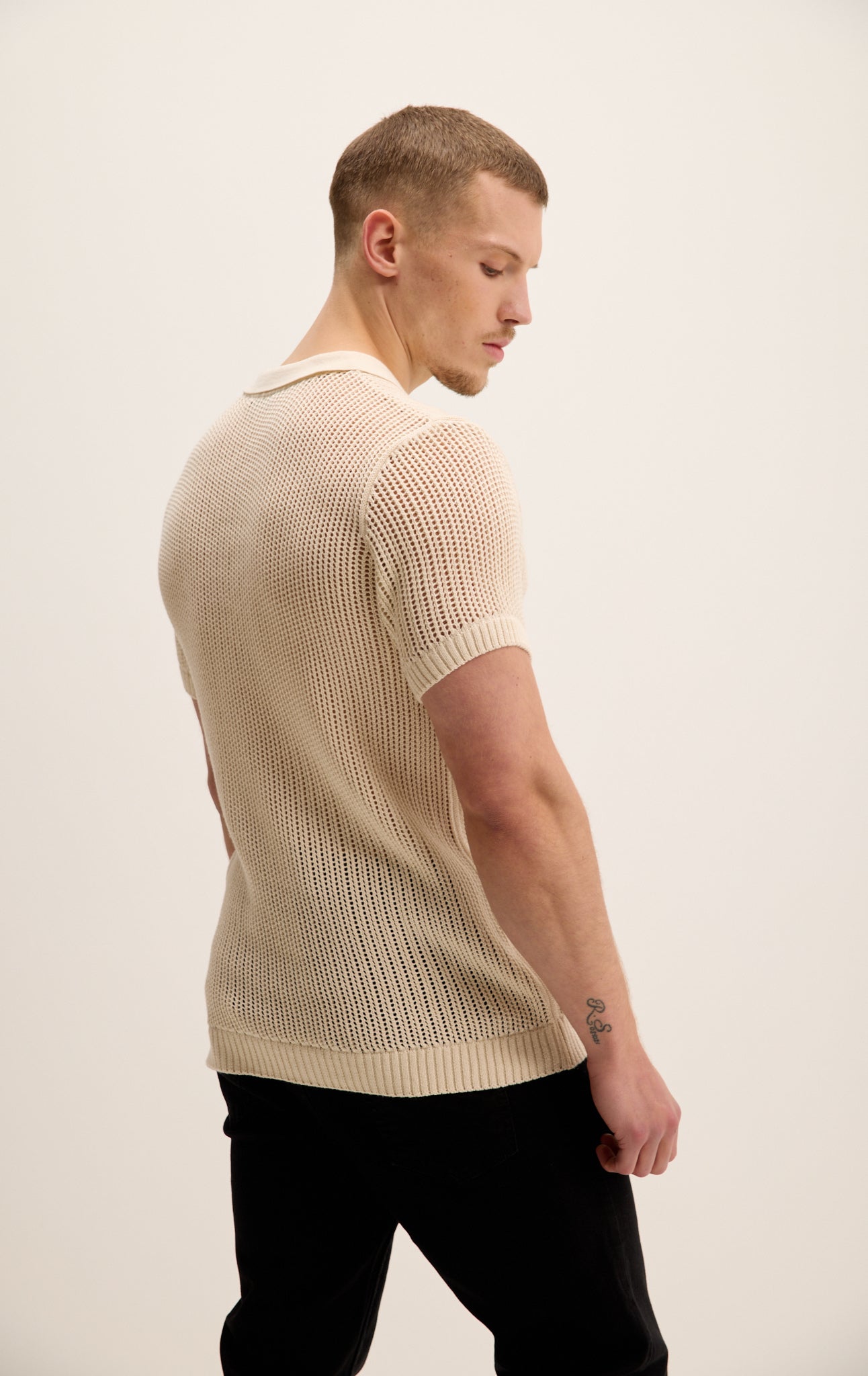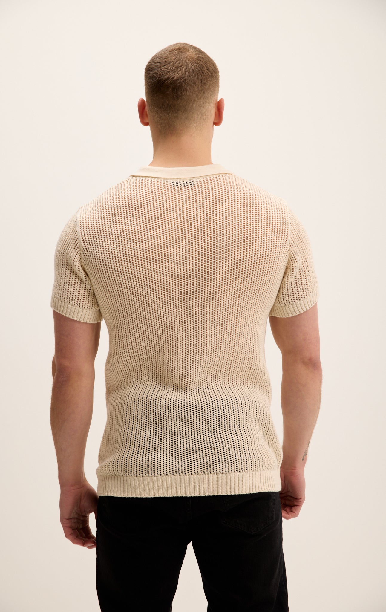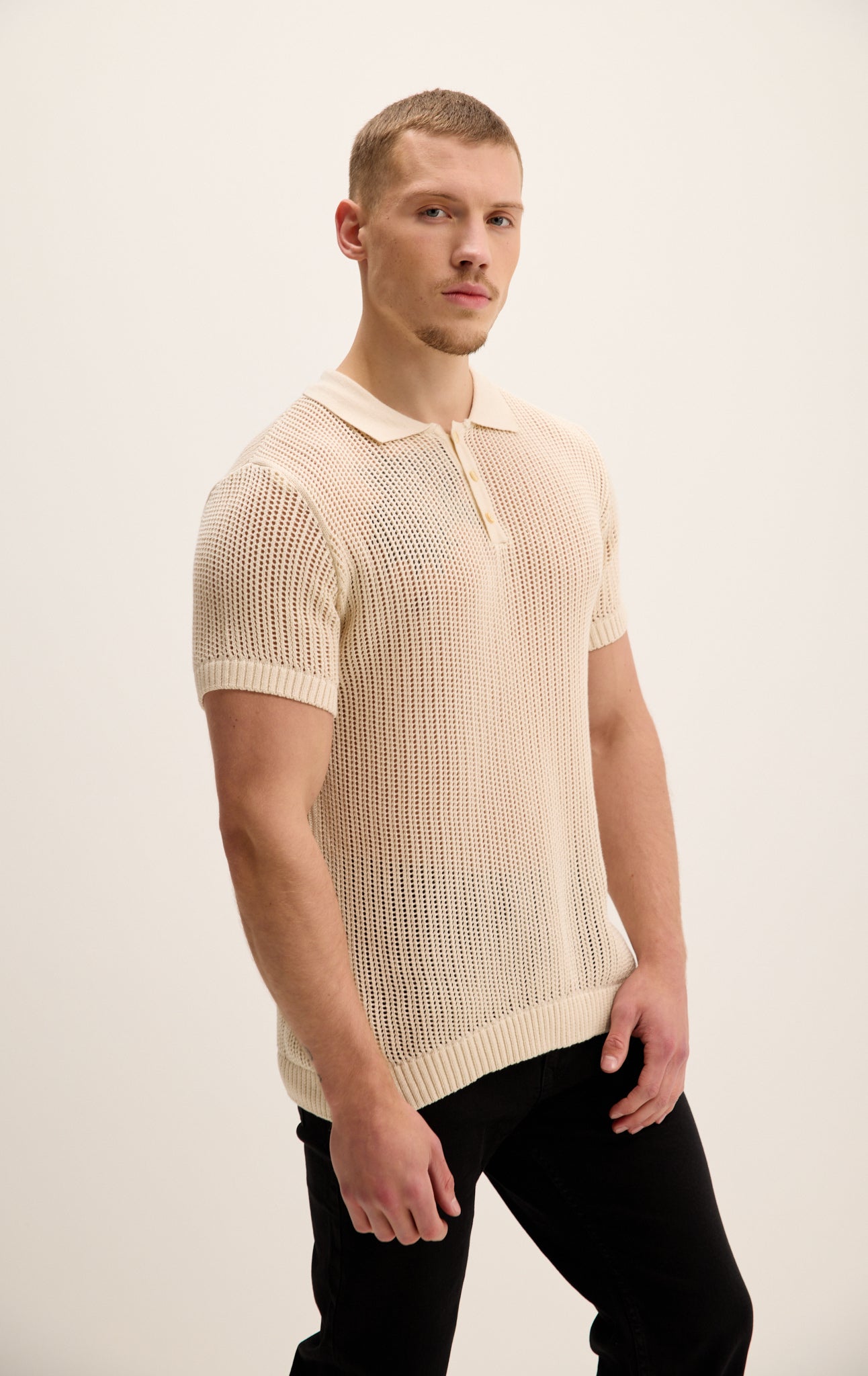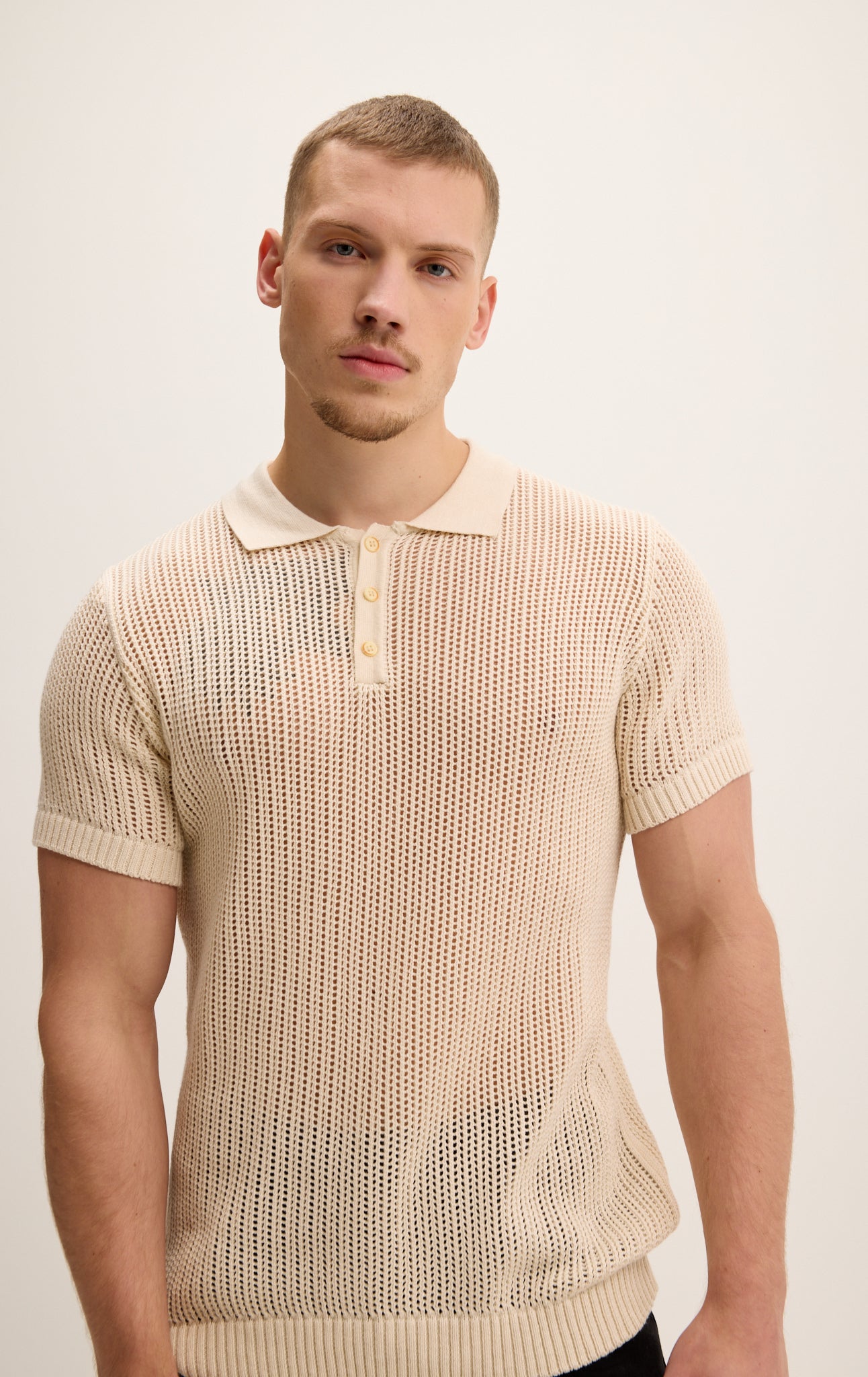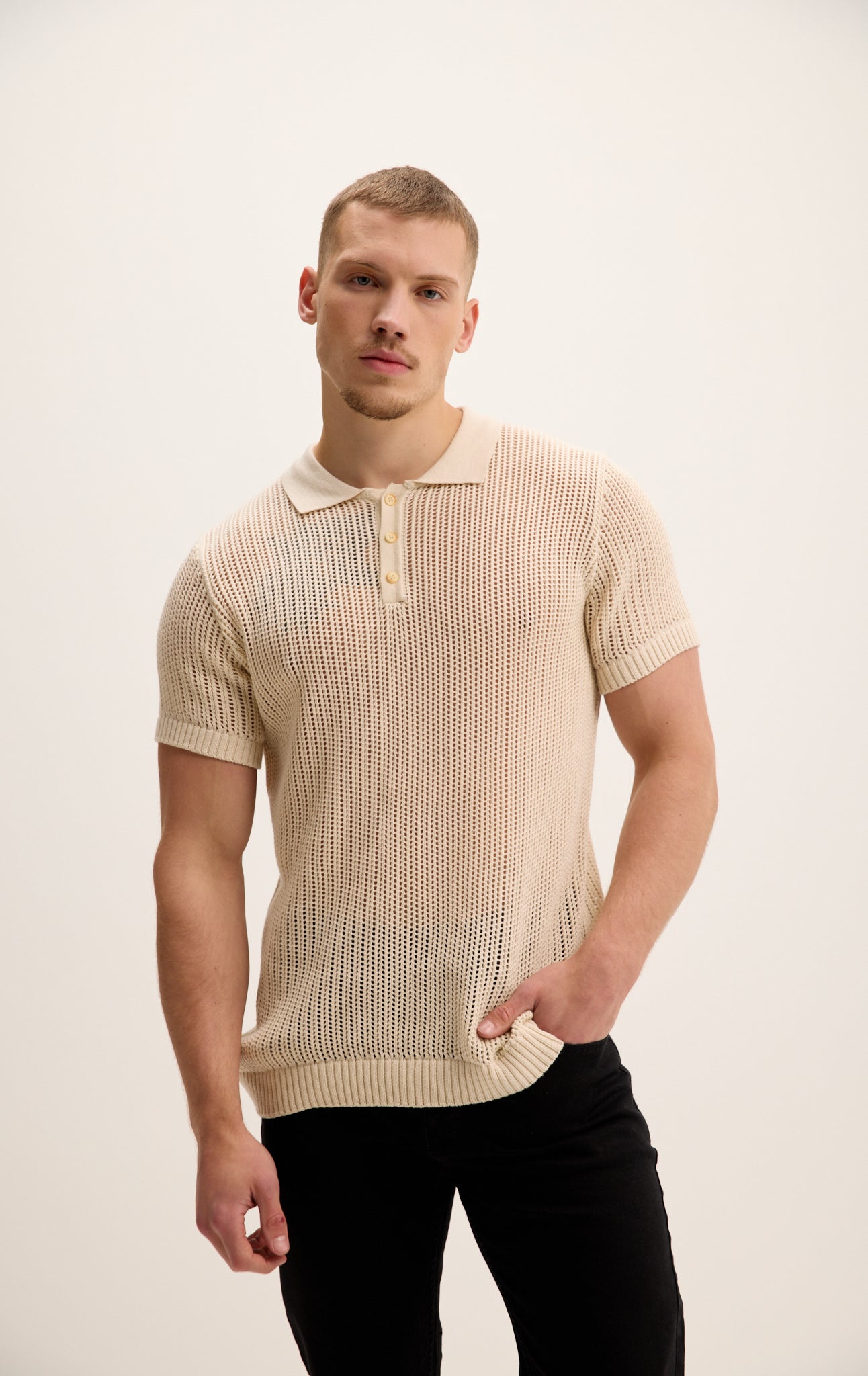 Polo-Shirt mit Lochmuster-Strickmuster – Beige