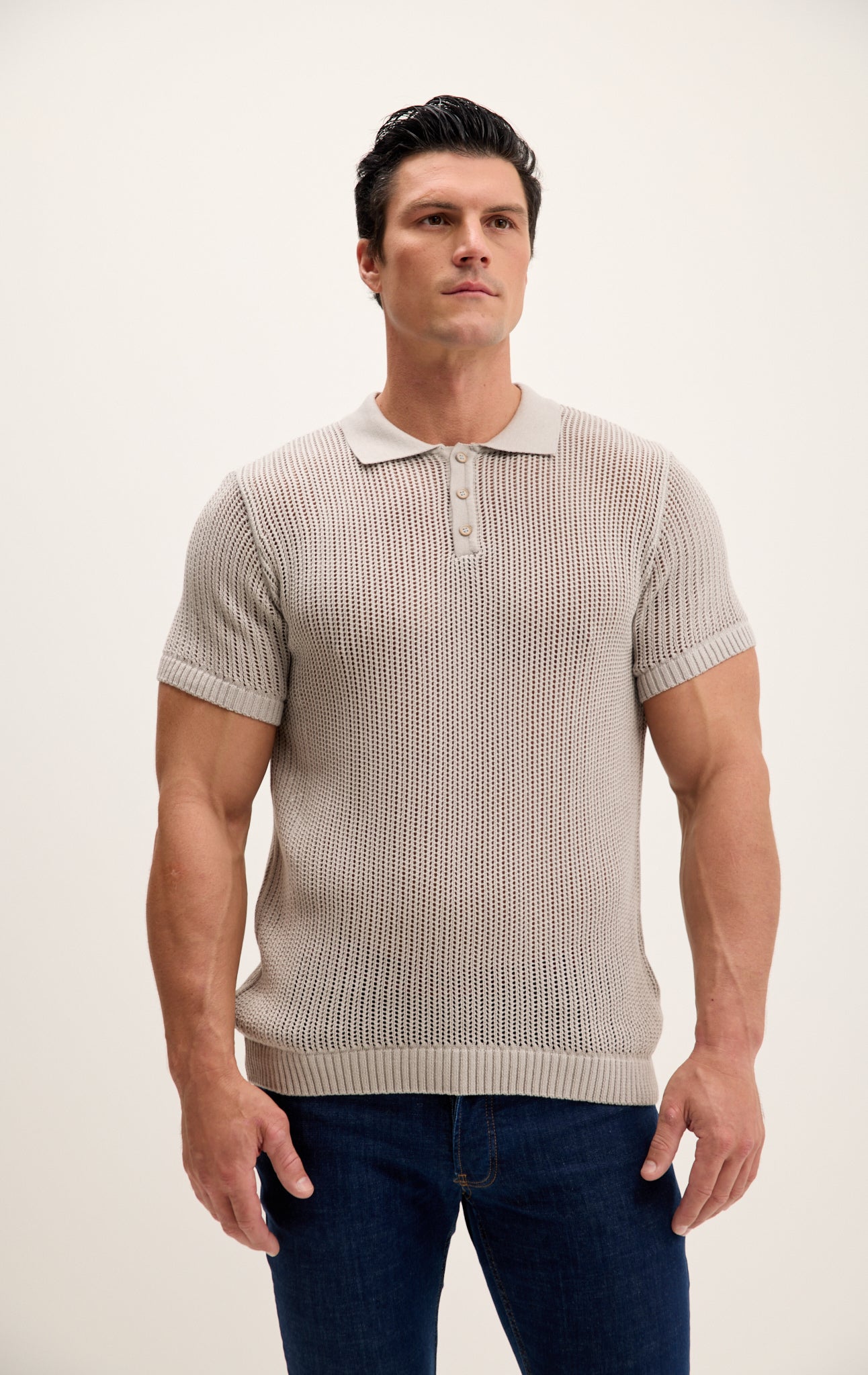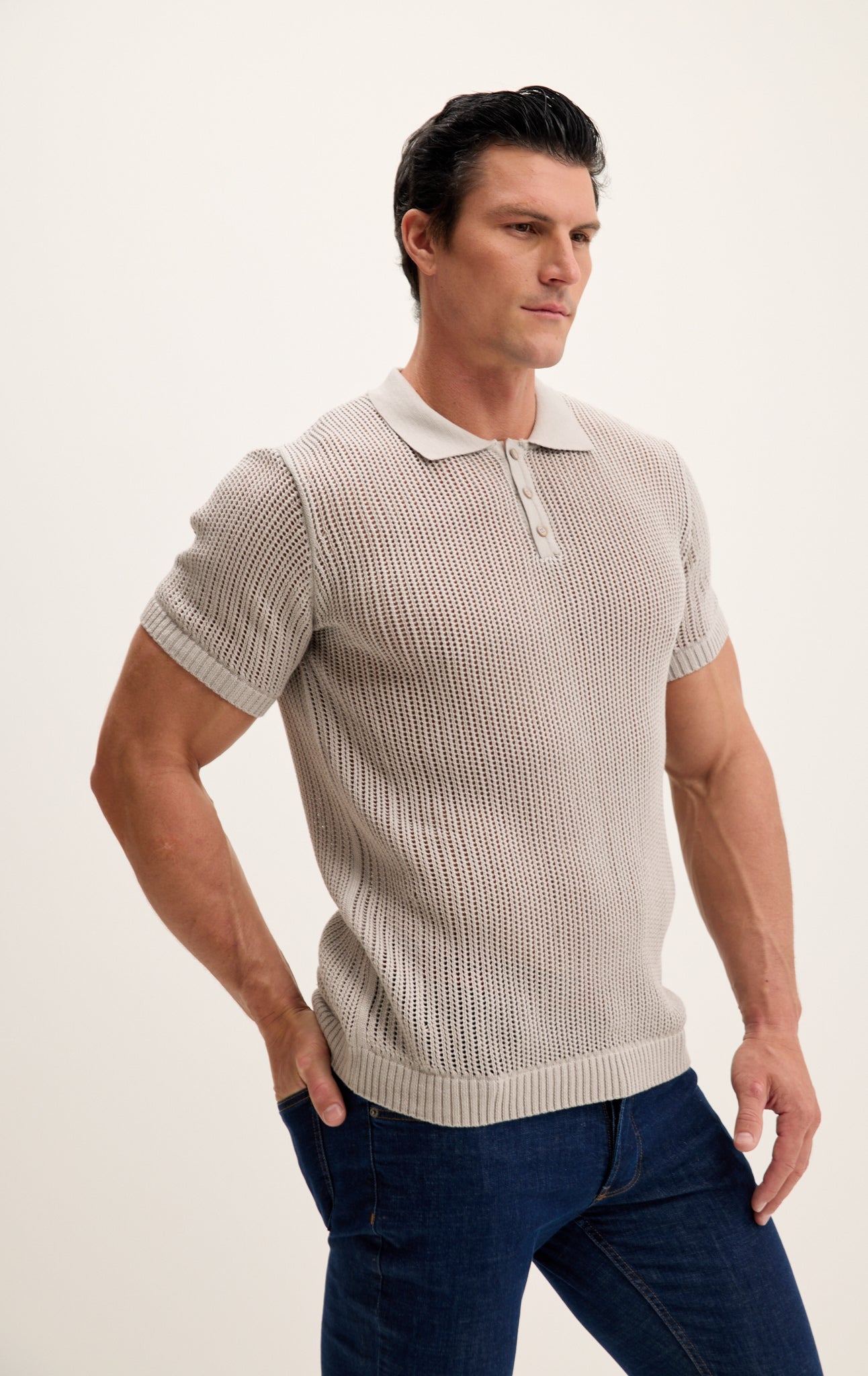 Setzen Sie ein modisches Statement und werten Sie Ihre Garderobe mit unserem Polo-Shirt aus offener Strickarbeit auf. Ob im Büro oder beim Abendessen mit Freunden – mit diesem Polo-Shirt heben Sie sich dank seines einzigartigen Designs und der makellosen Verarbeitung garantiert von der Masse ab.