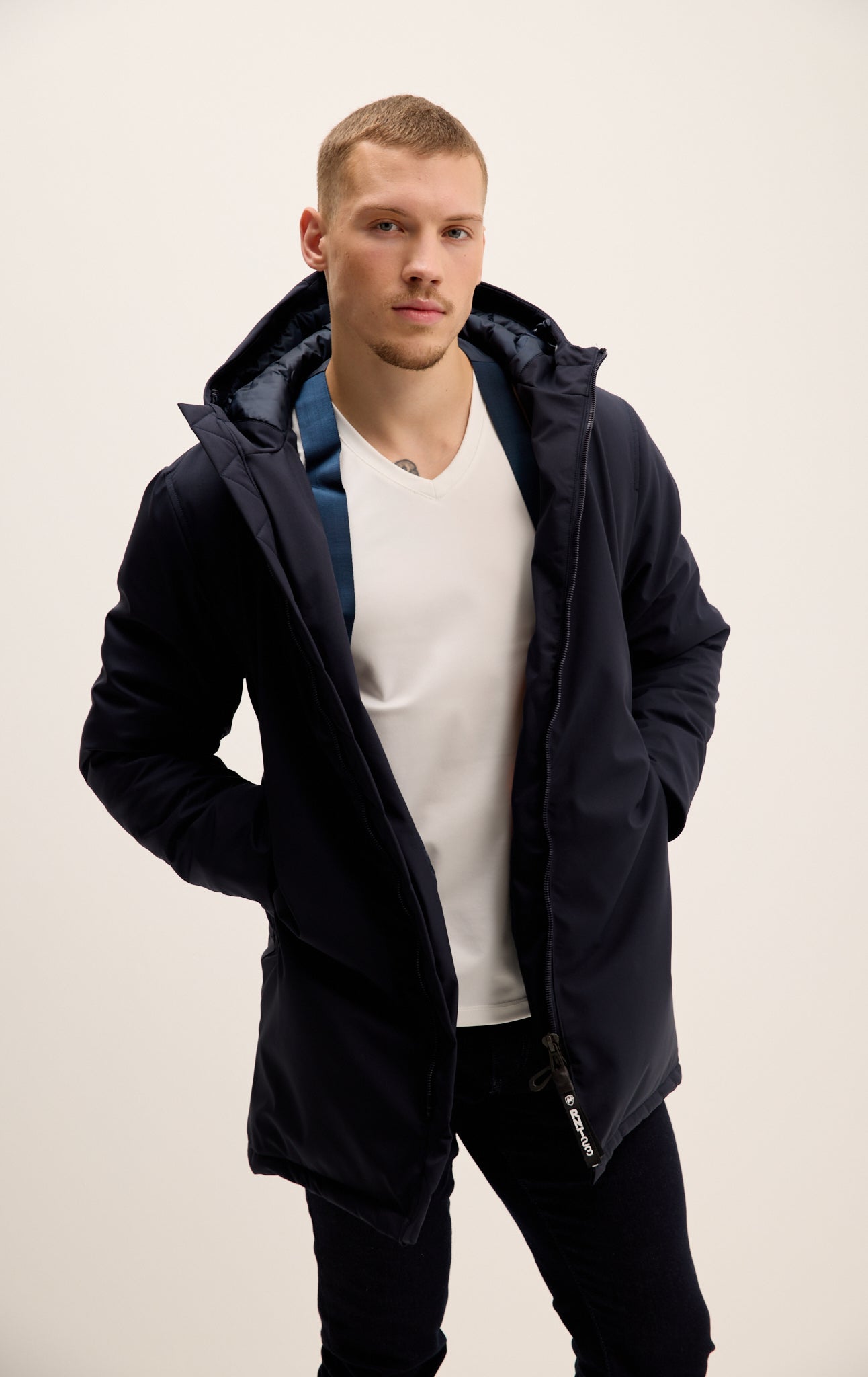 Gemütlicher, nahtloser Wintermantel – Marineblau