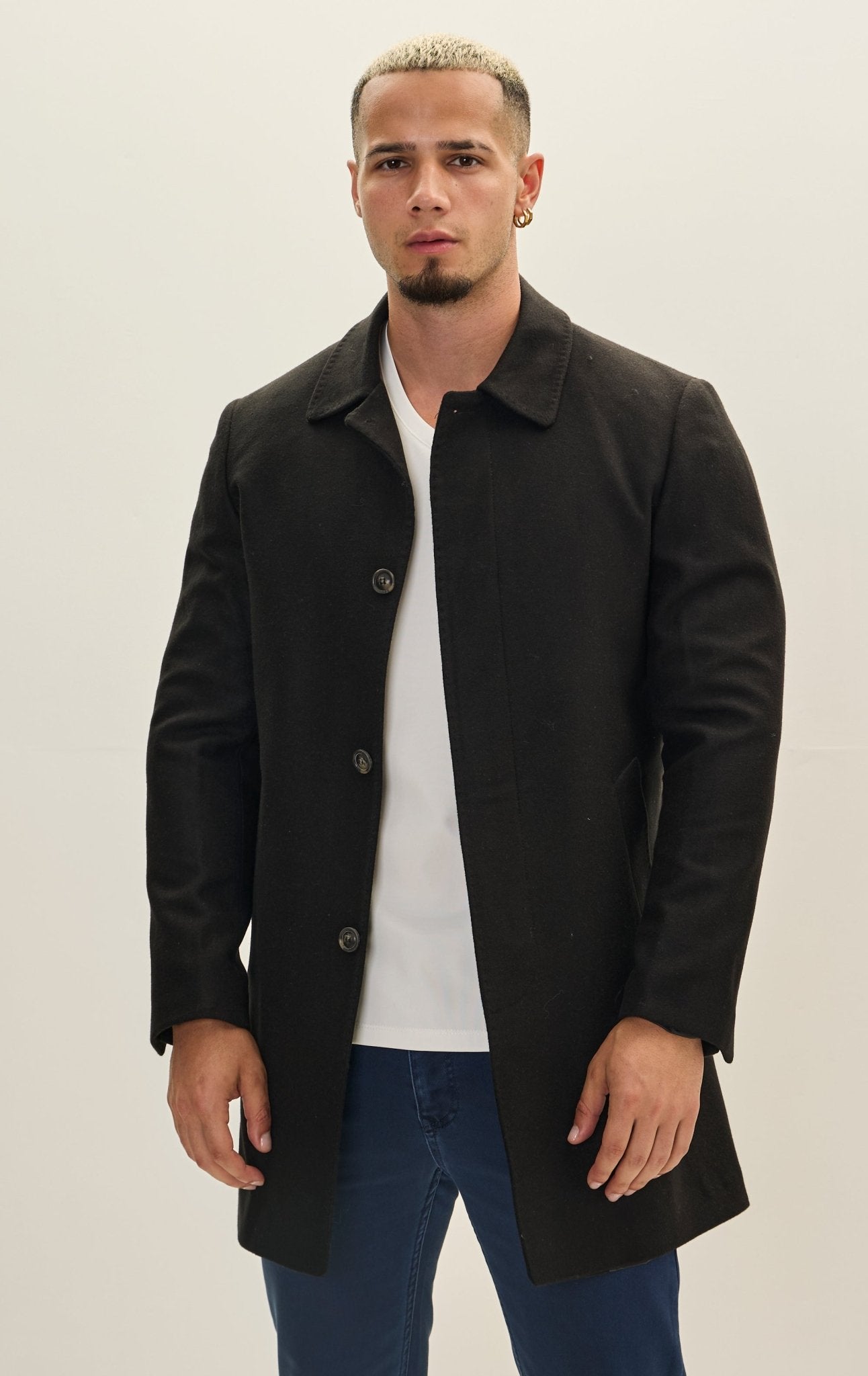 Unser klassischer Cabanmantel mit Seitentaschen ist ein stilvolles und funktionales Kleidungsstück. Dieser kurze, zweireihige Mantel ist aus schwerer Wolle gefertigt und bietet dadurch Wärme und Langlebigkeit. Er verfügt über große Knöpfe und praktische Seitentaschen für einfachen Zugriff und Stauraum. Die Seitentaschen verleihen dem traditionellen Design eine moderne Note und machen ihn gleichermaßen praktisch und zeitlos. Ideal für kalte Tage, bietet er einen eleganten Look, der sowohl zu legerer als auch zu formeller Kleidung passt.