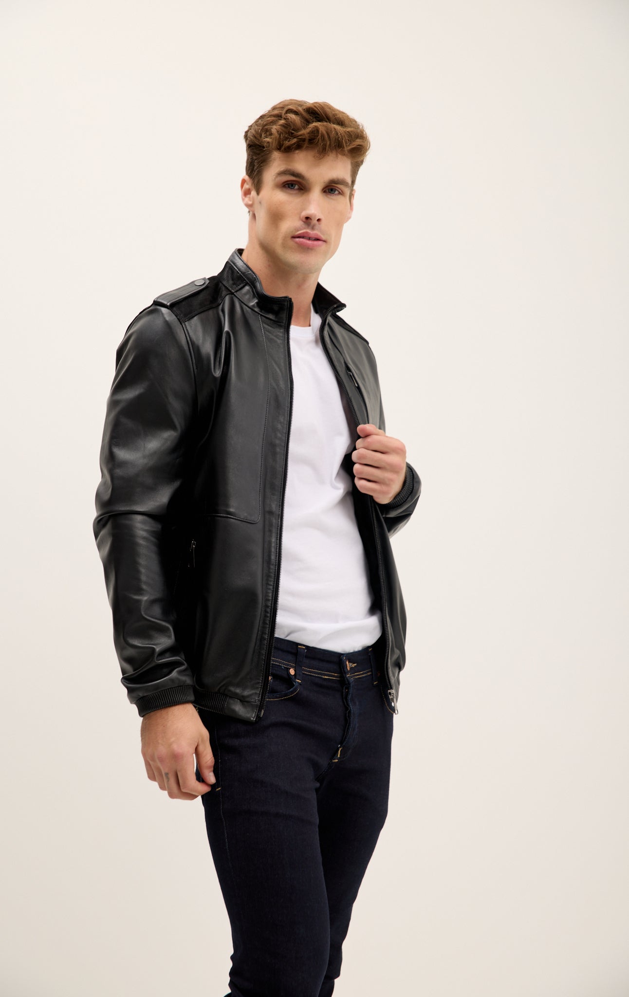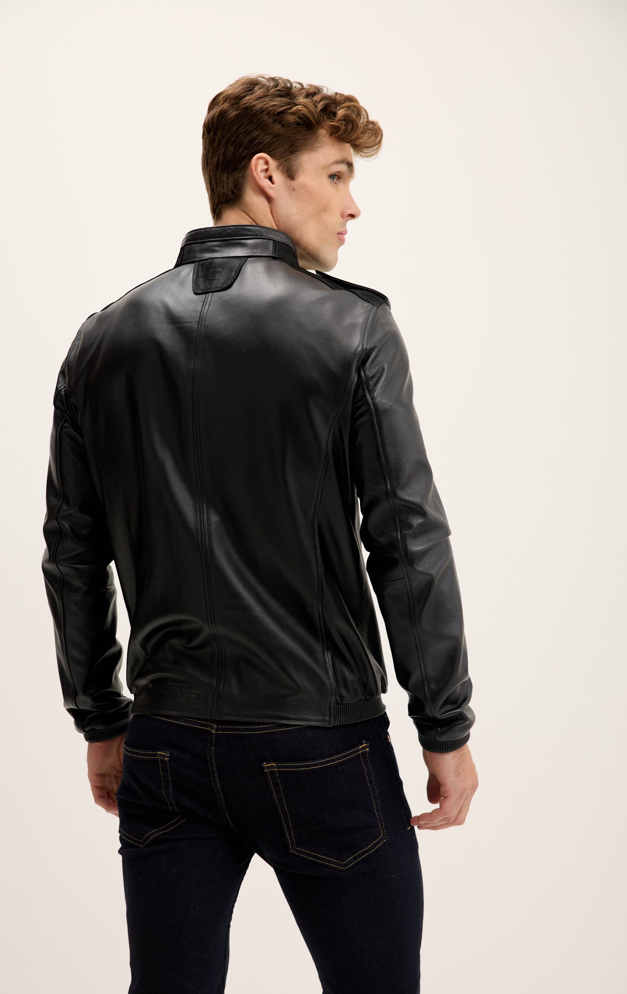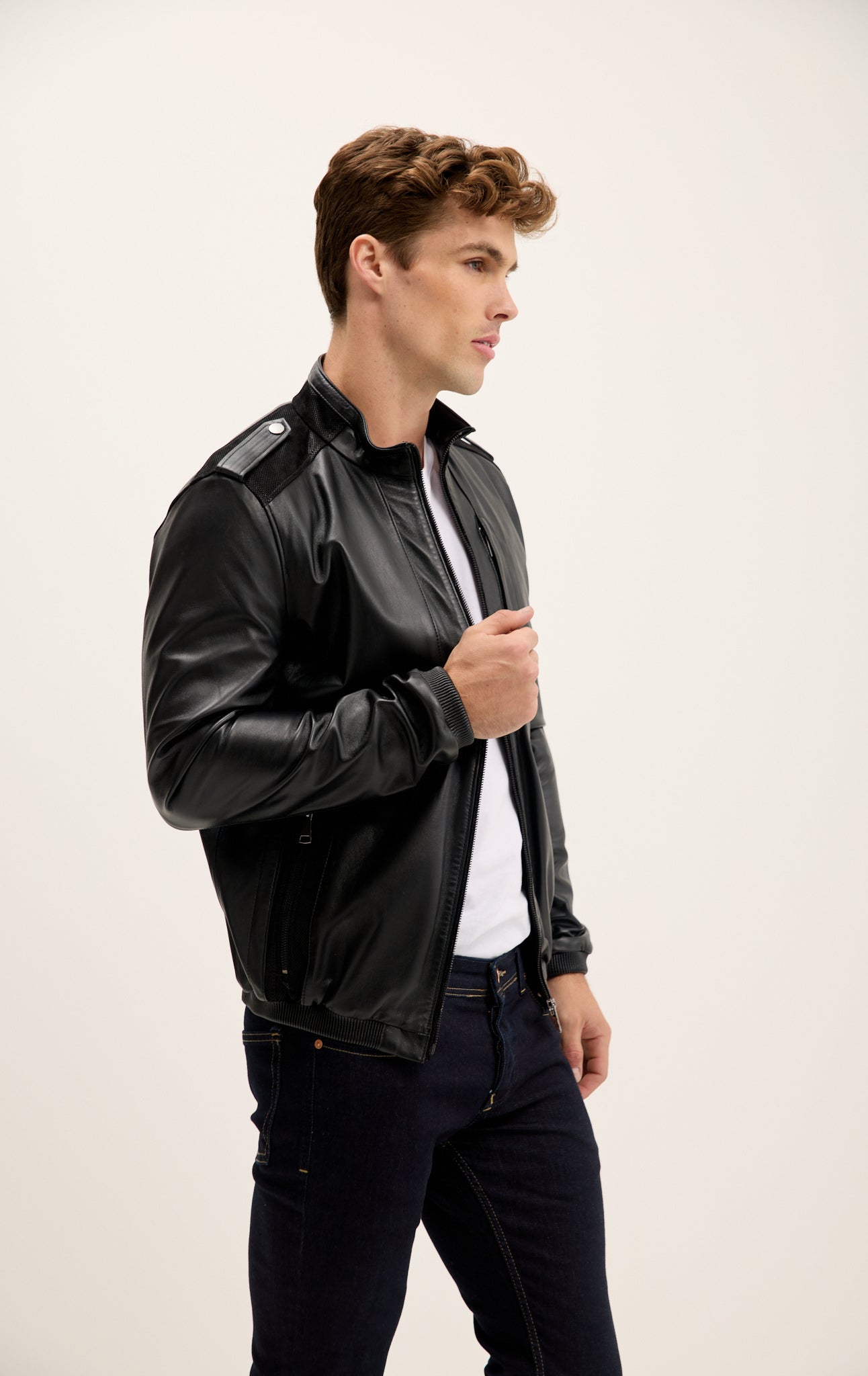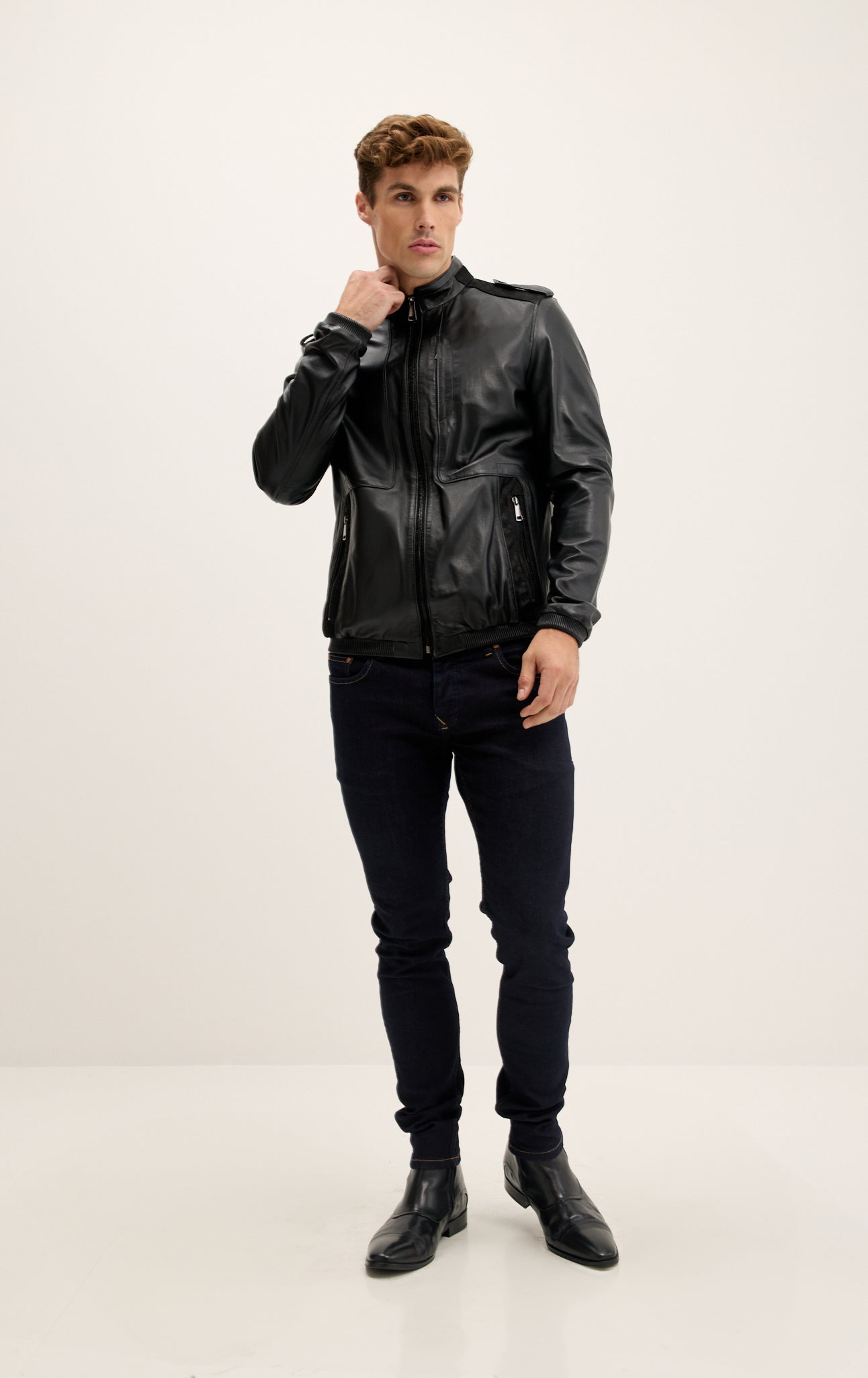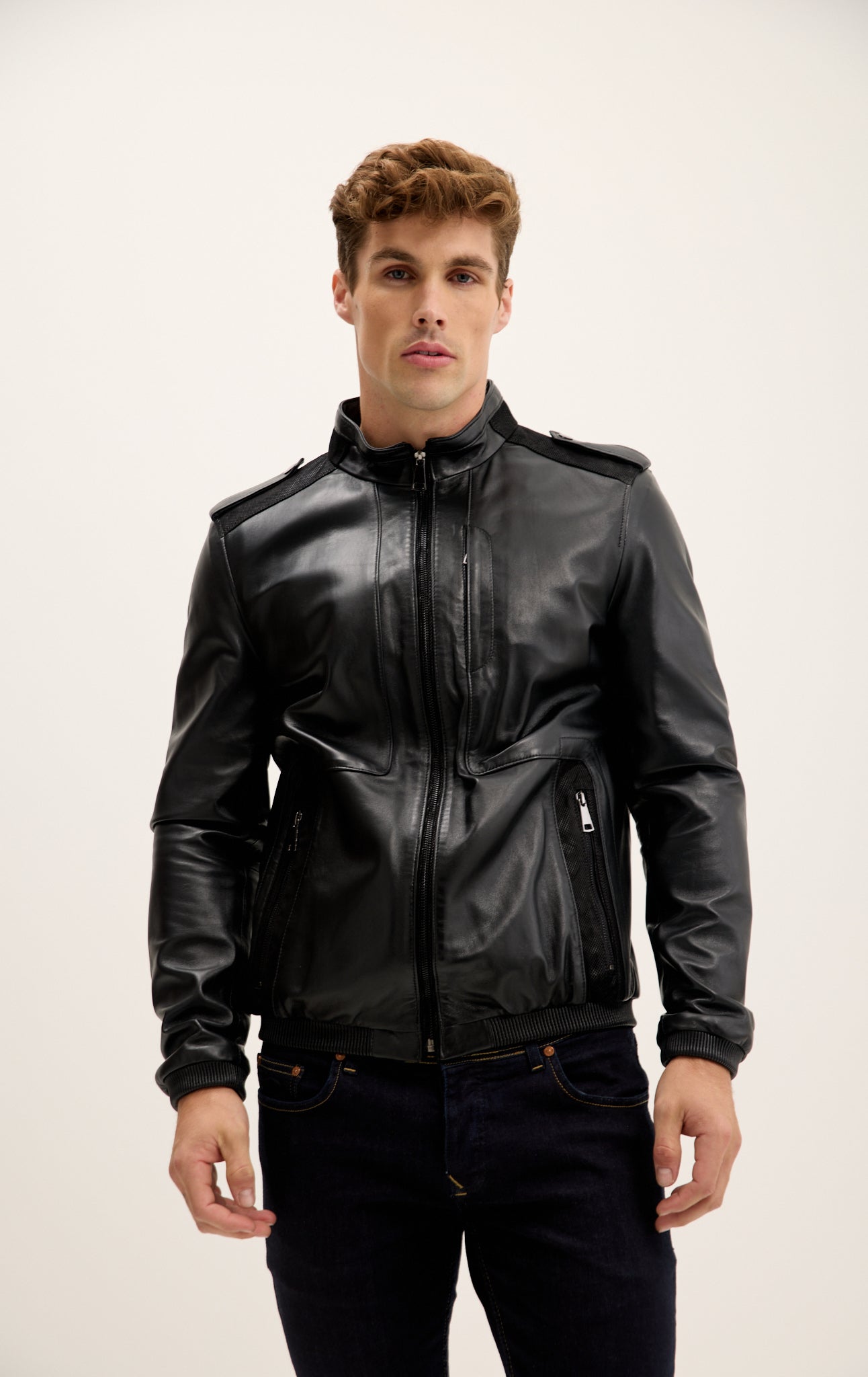 Jacke mit Schulterklappen aus echtem Leder – Schwarz