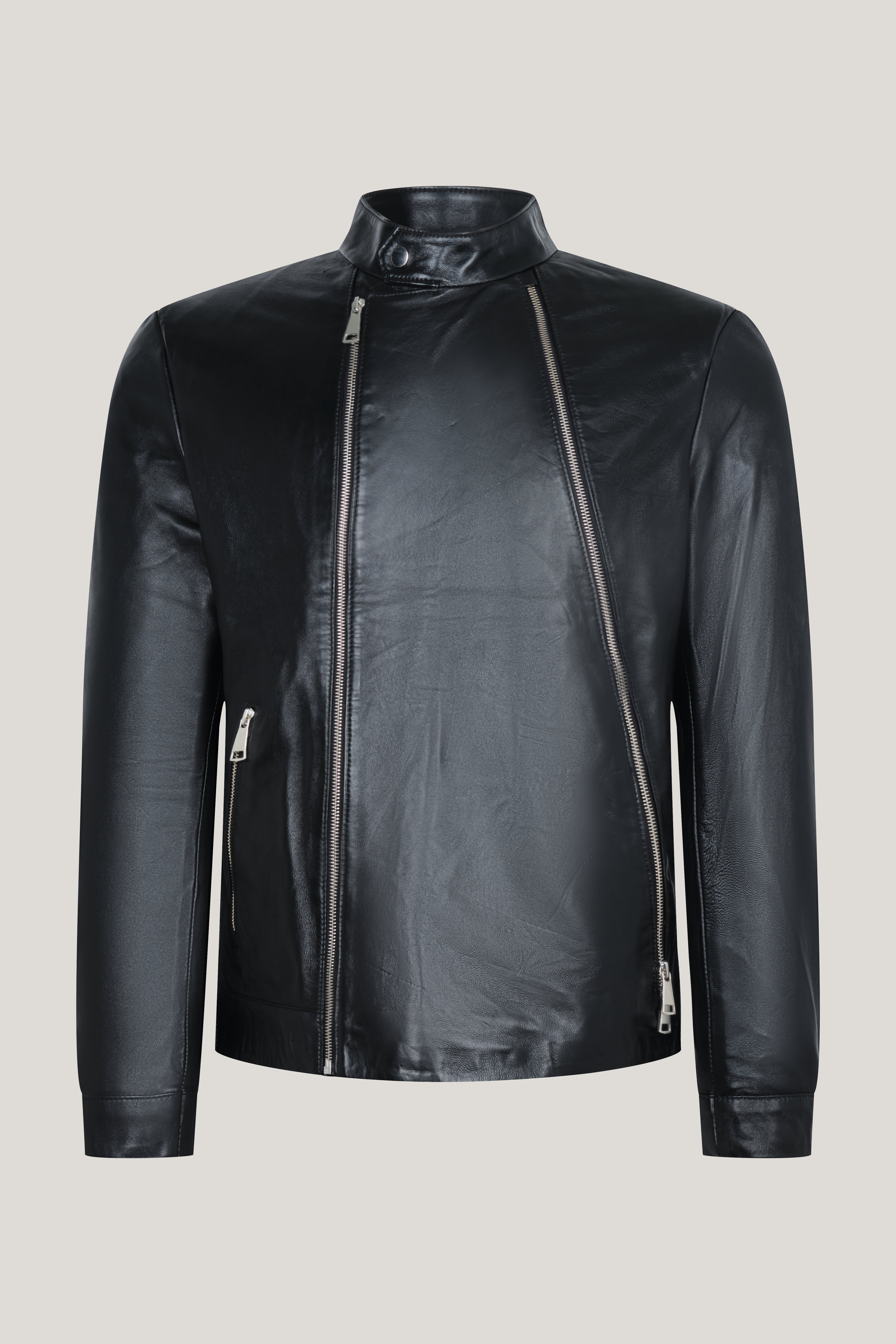 Verleihen Sie Ihrem Stil mit der Ron Tomson Asymmetrical Zipper Leather Moto Jacket ein zeitloses Stück, das aus hochwertigem, 100% echtem Lammleder gefertigt ist und für ein elegantes, strapazierfähiges Finish und ein luxuriöses Tragegefühl sorgt.