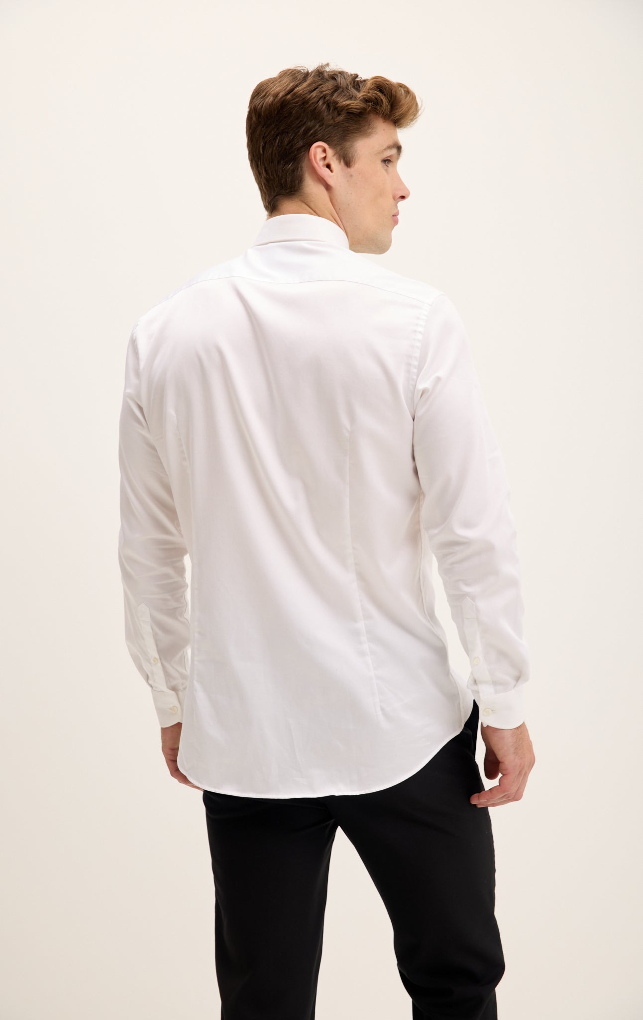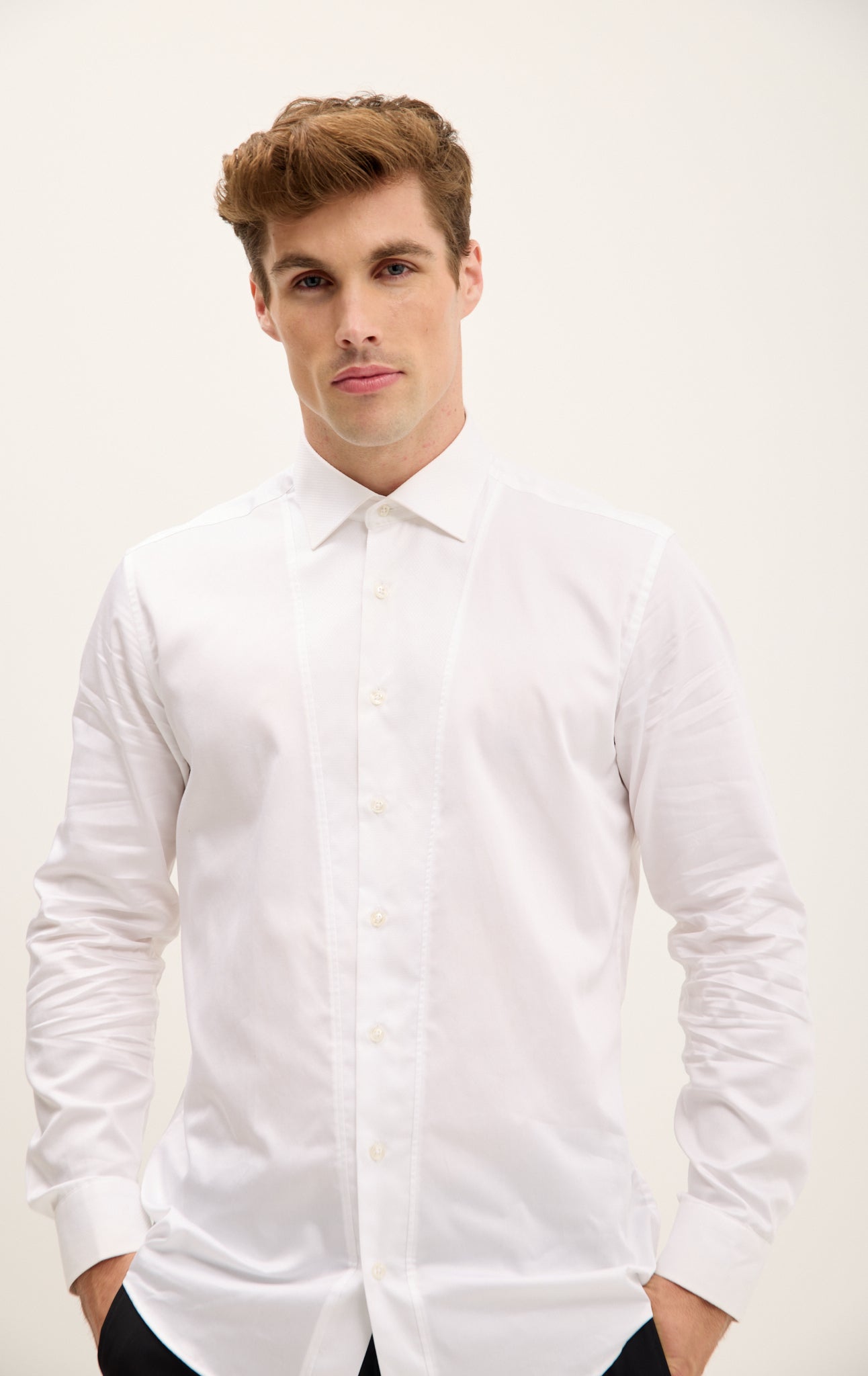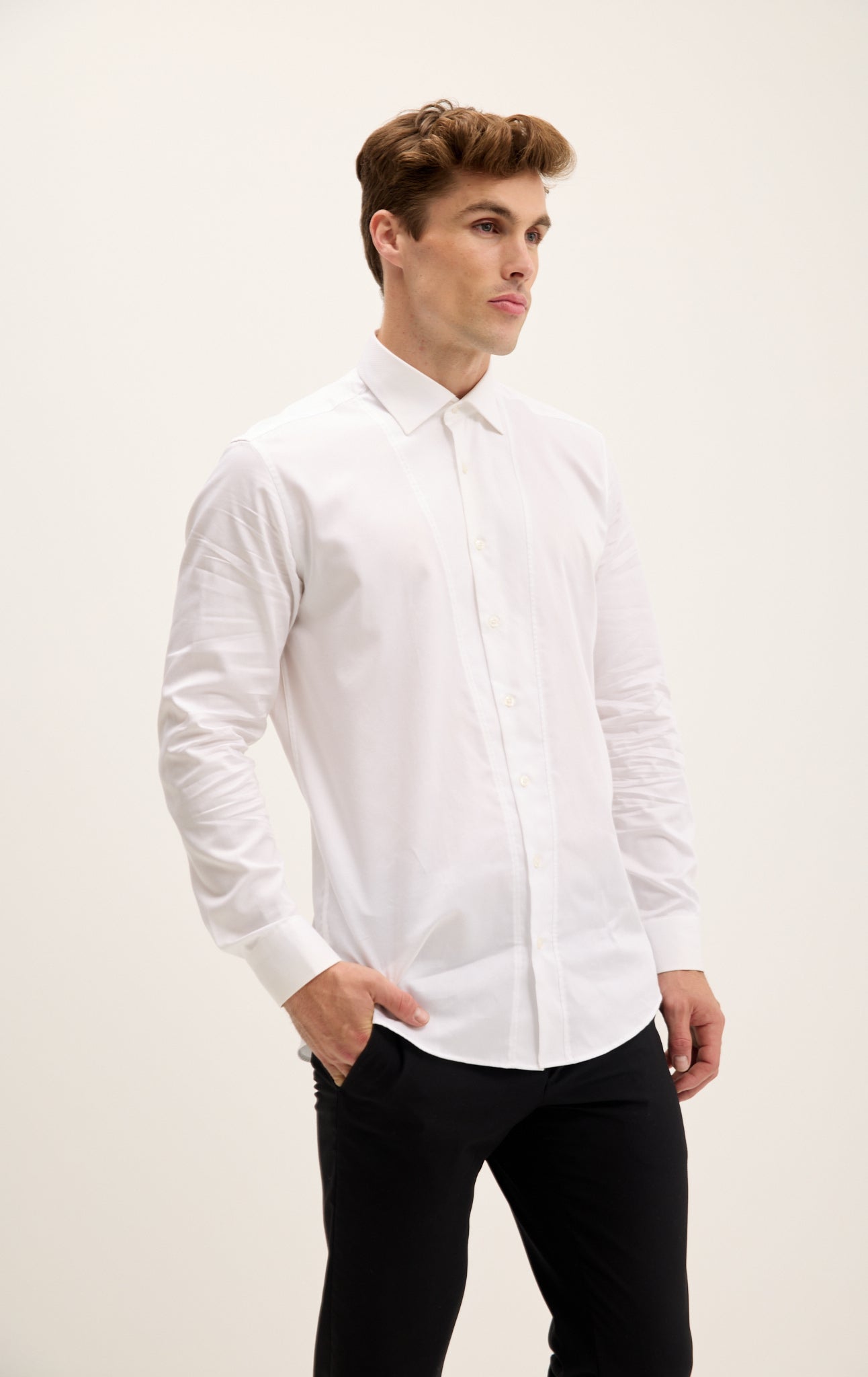 Slim Fit Pique Front Long Sleeve Dress Shirt - White