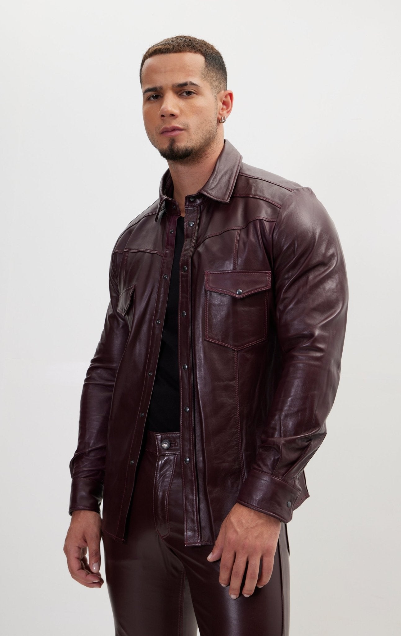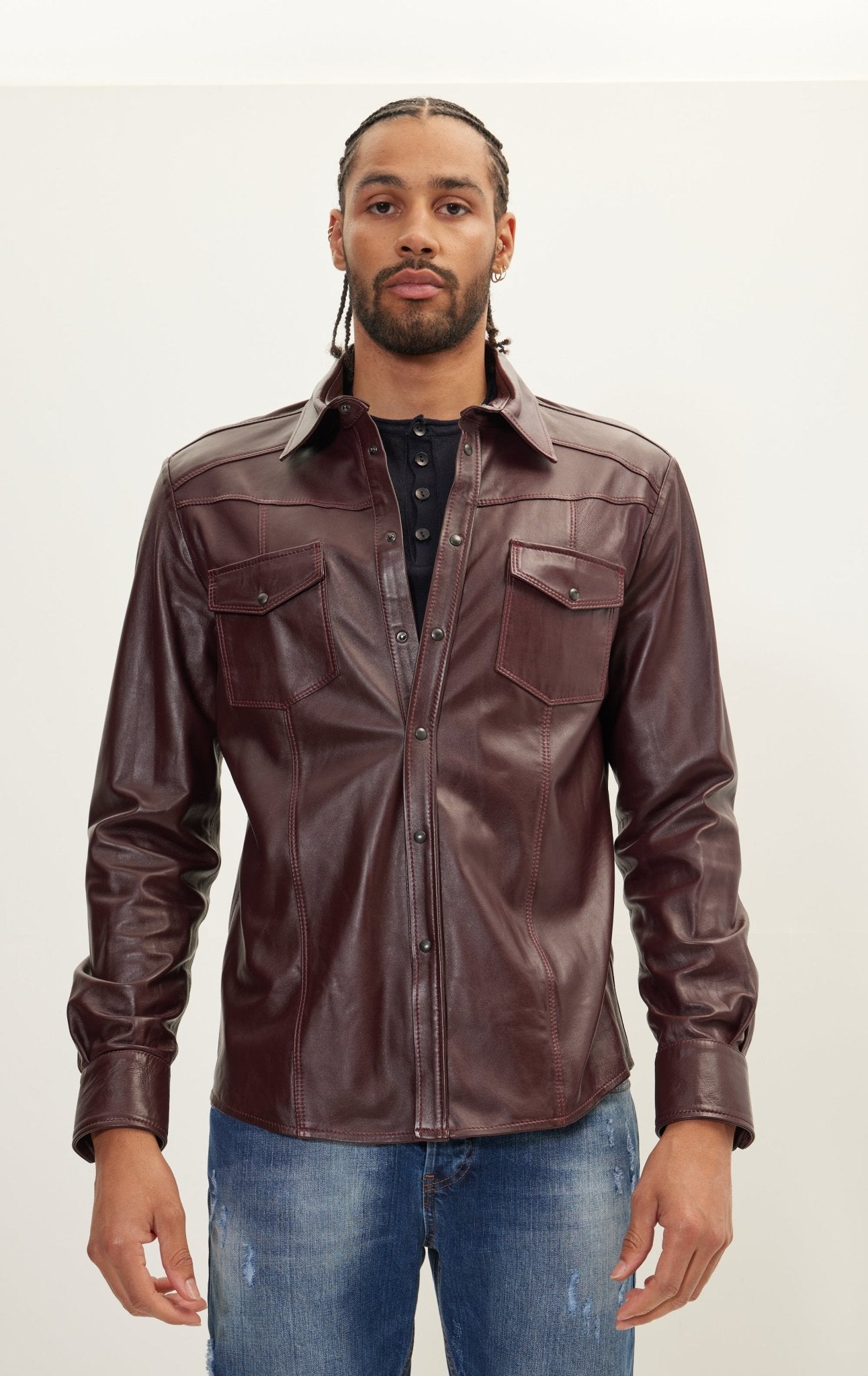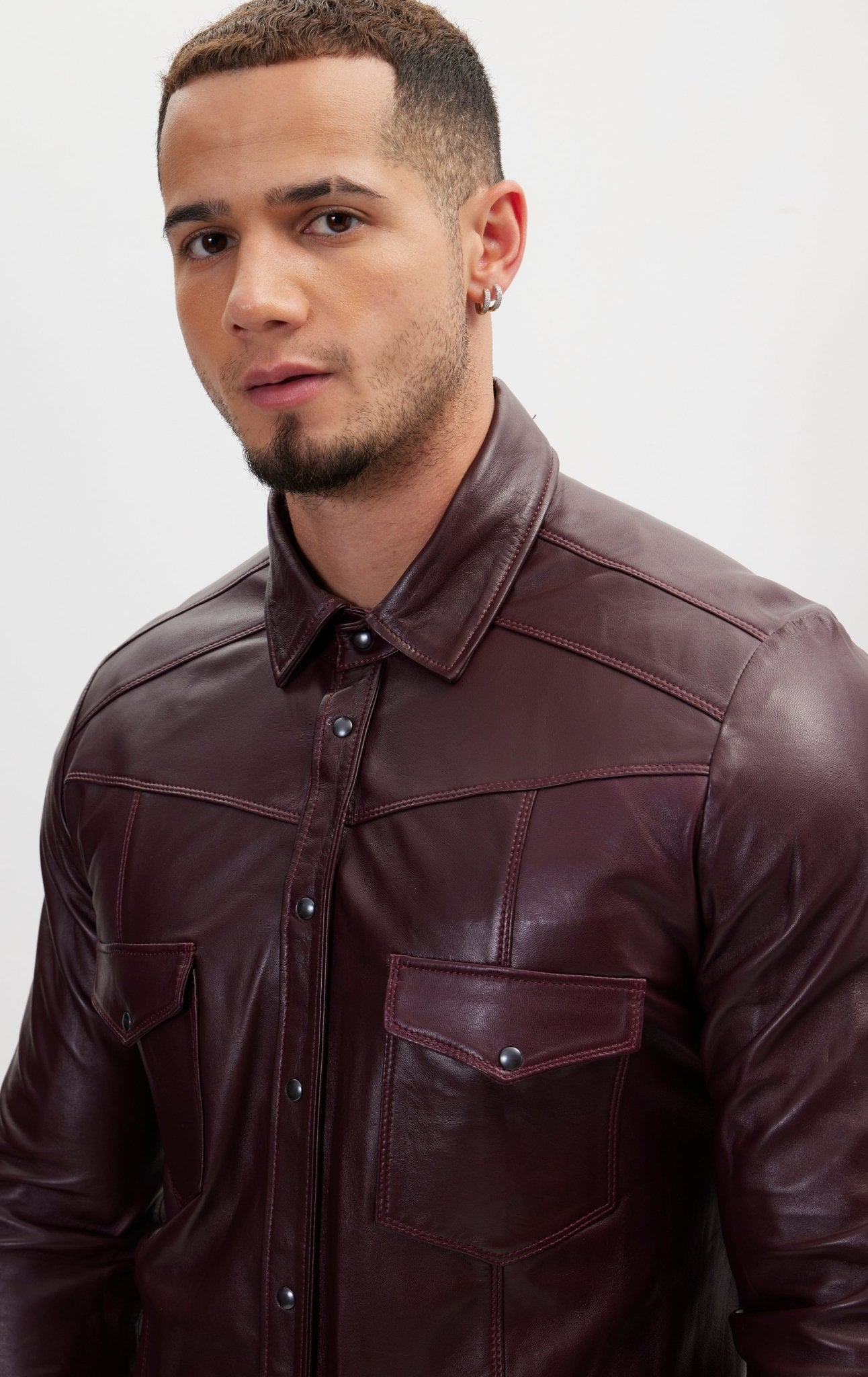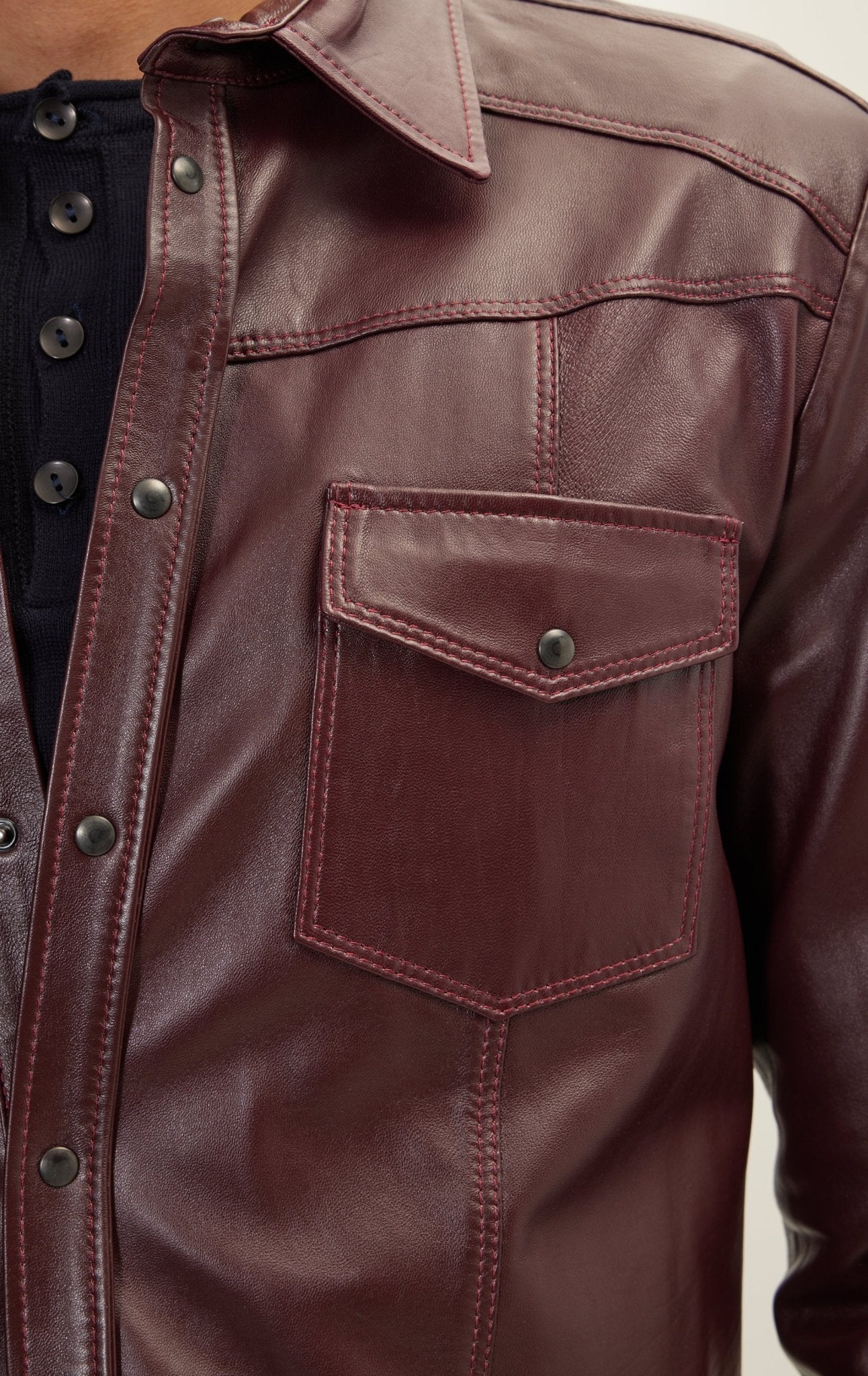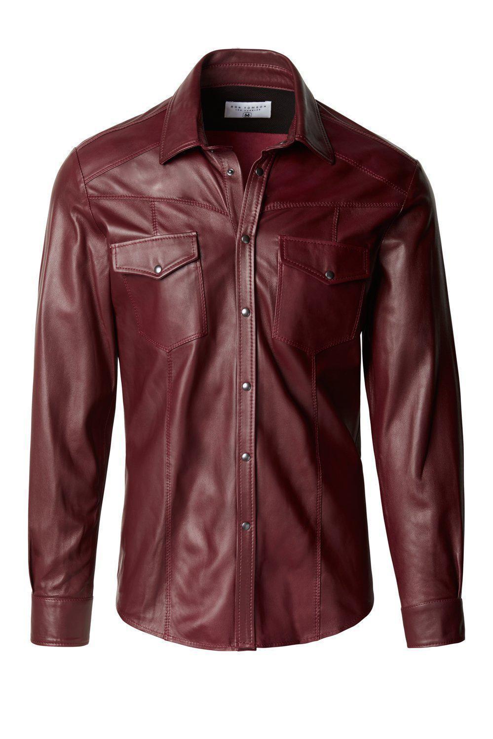 Introducing the Ron Tomson Genuine Leather Shirt with Two Flap Chest Pockets and Snap Buttons: