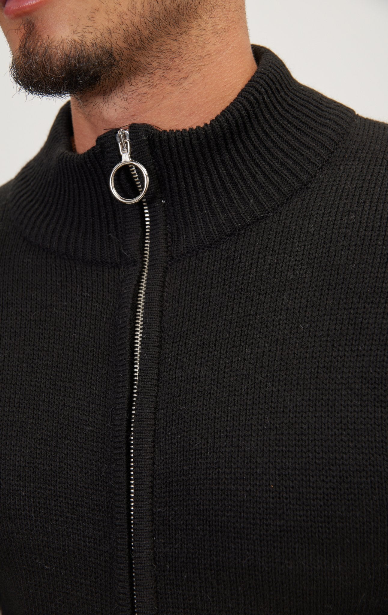 The zippered design adds a modern twist to the traditional cardigan, making it an easy choice for both quick outings and stylish layering.