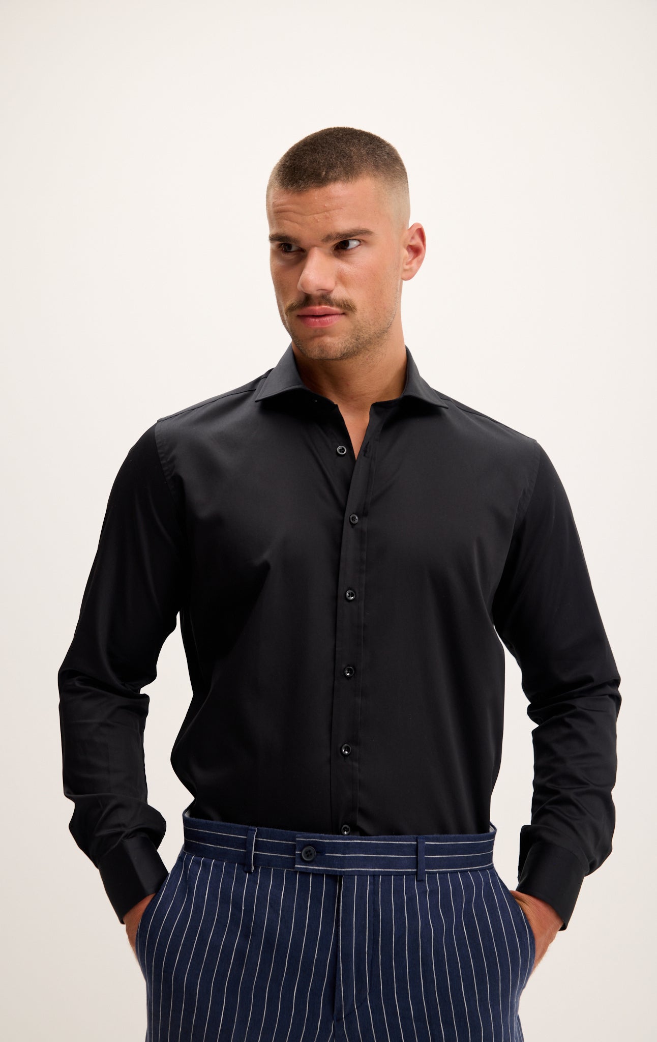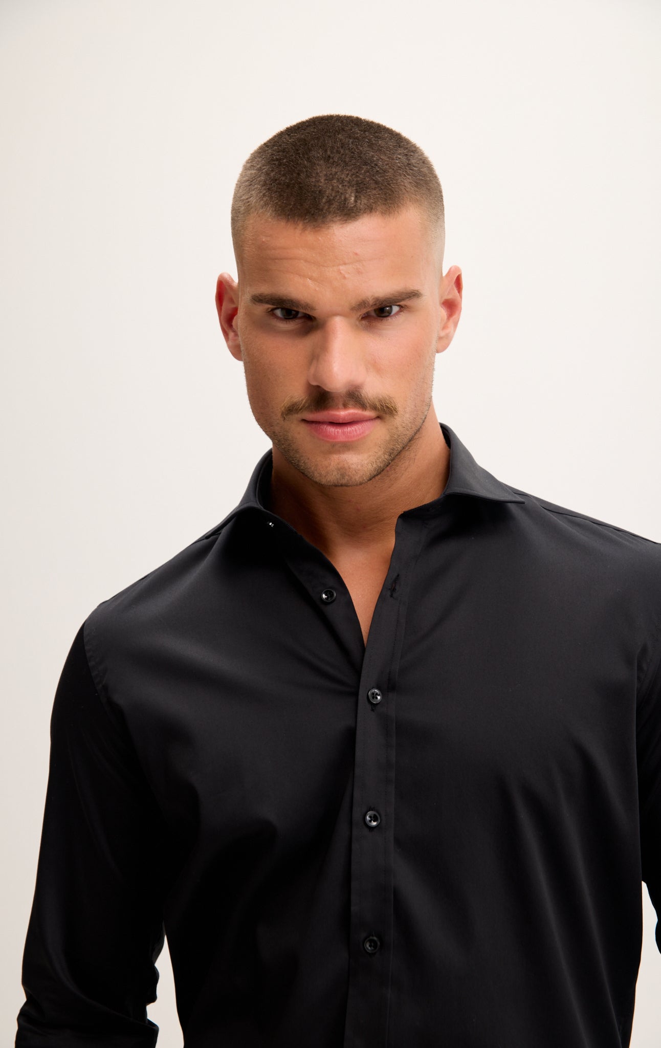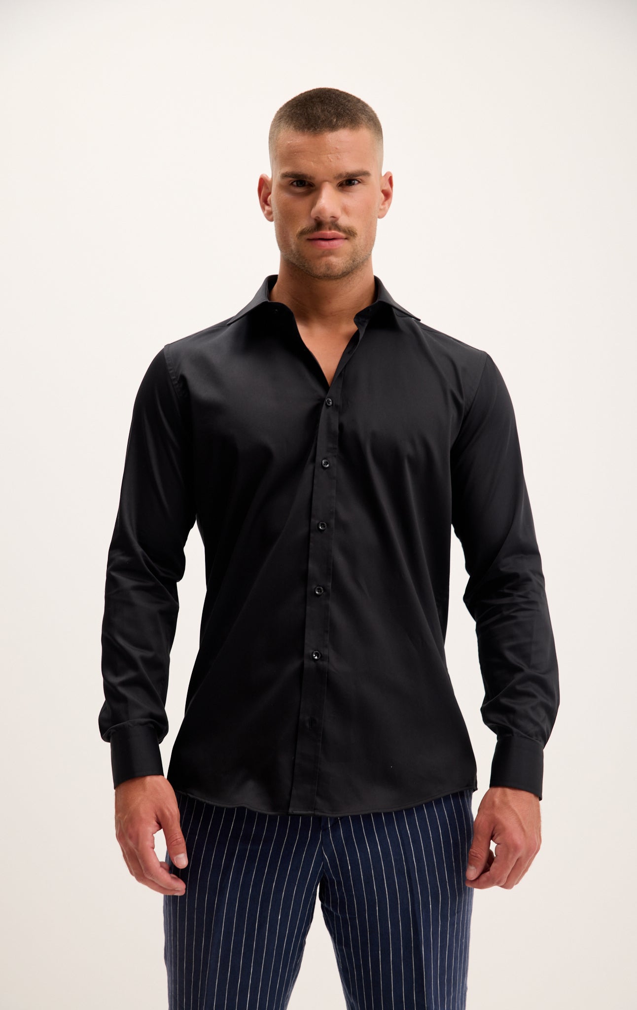 Pure Cotton Spread Collar Fitted Dress Shirt - Jet Black