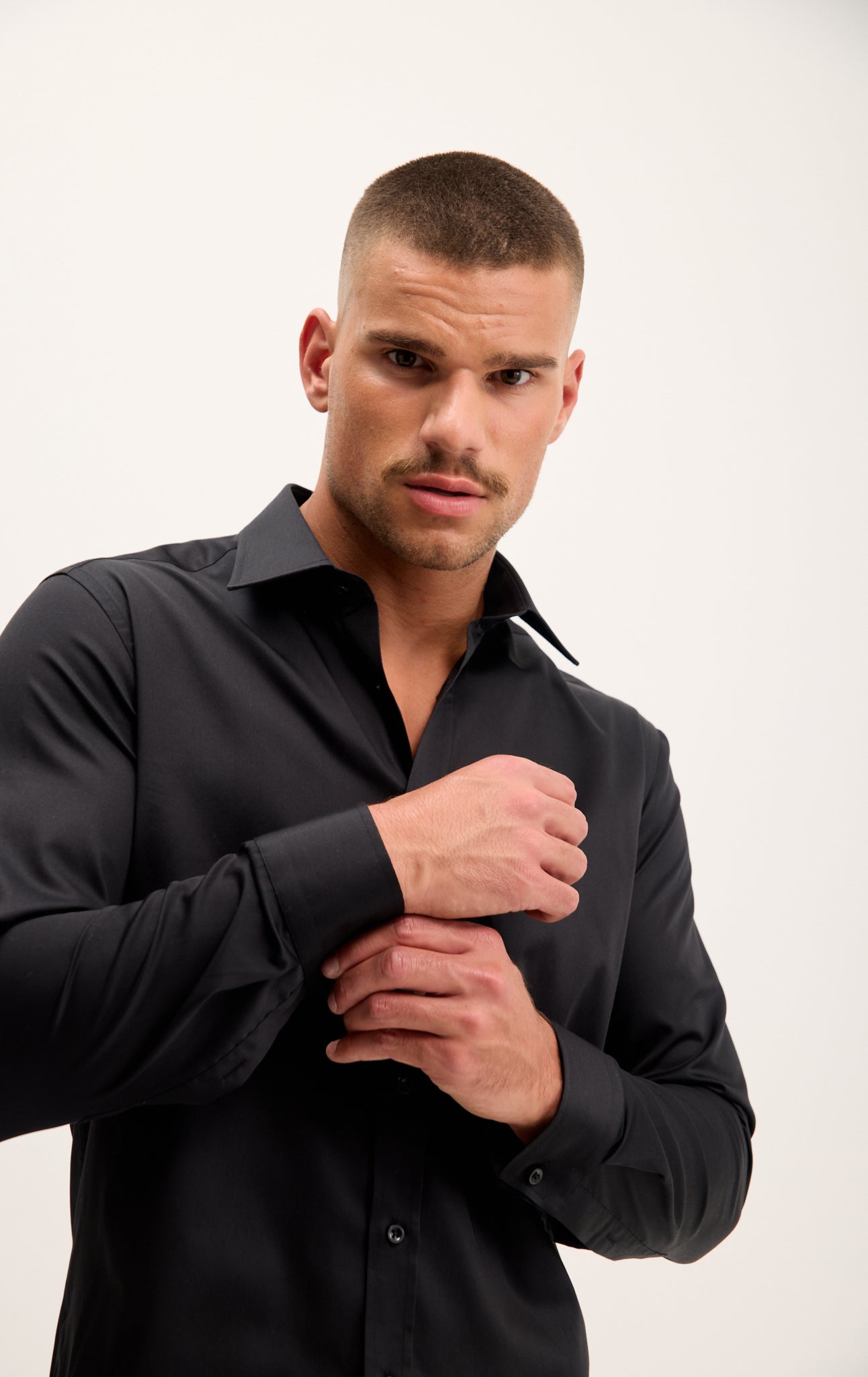 The cuffs are convertible to single-ply french cuffs, just push the button in.