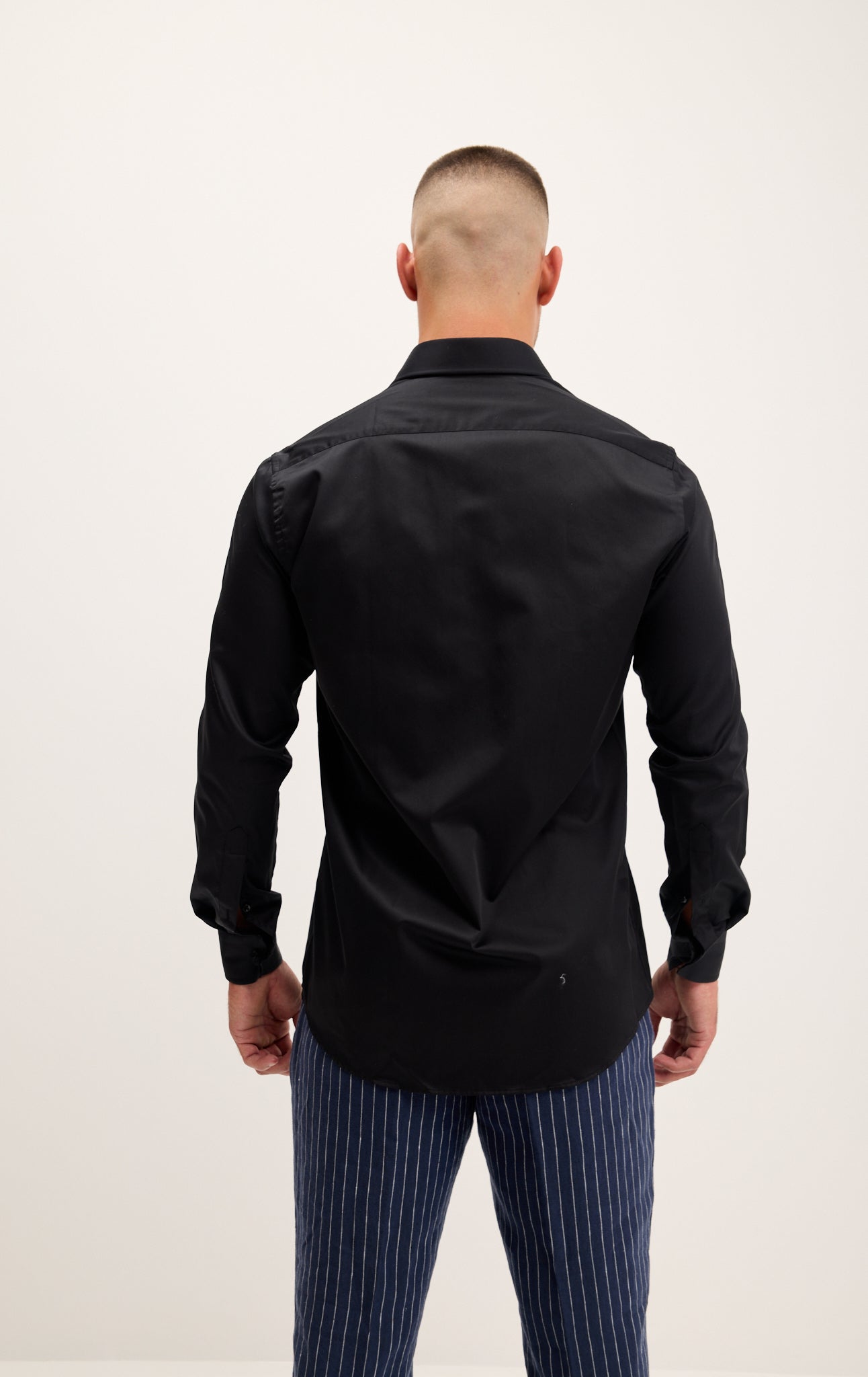 Made with European pure cotton premium 50s single-ply sateen fabric. It is silky and refined.  This high thread count makes a shirt that looks great with denim casually or a clean-suited look.