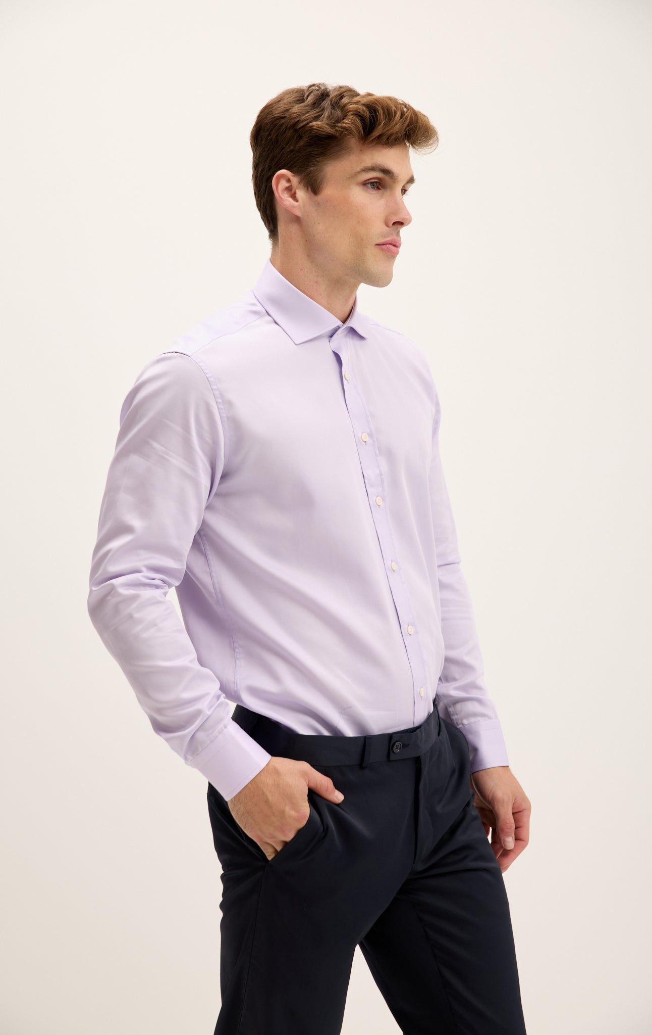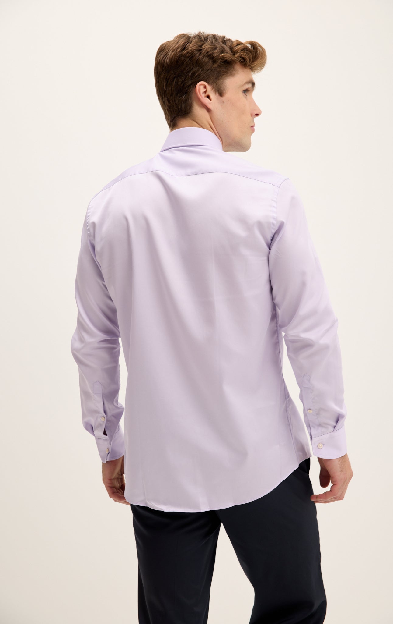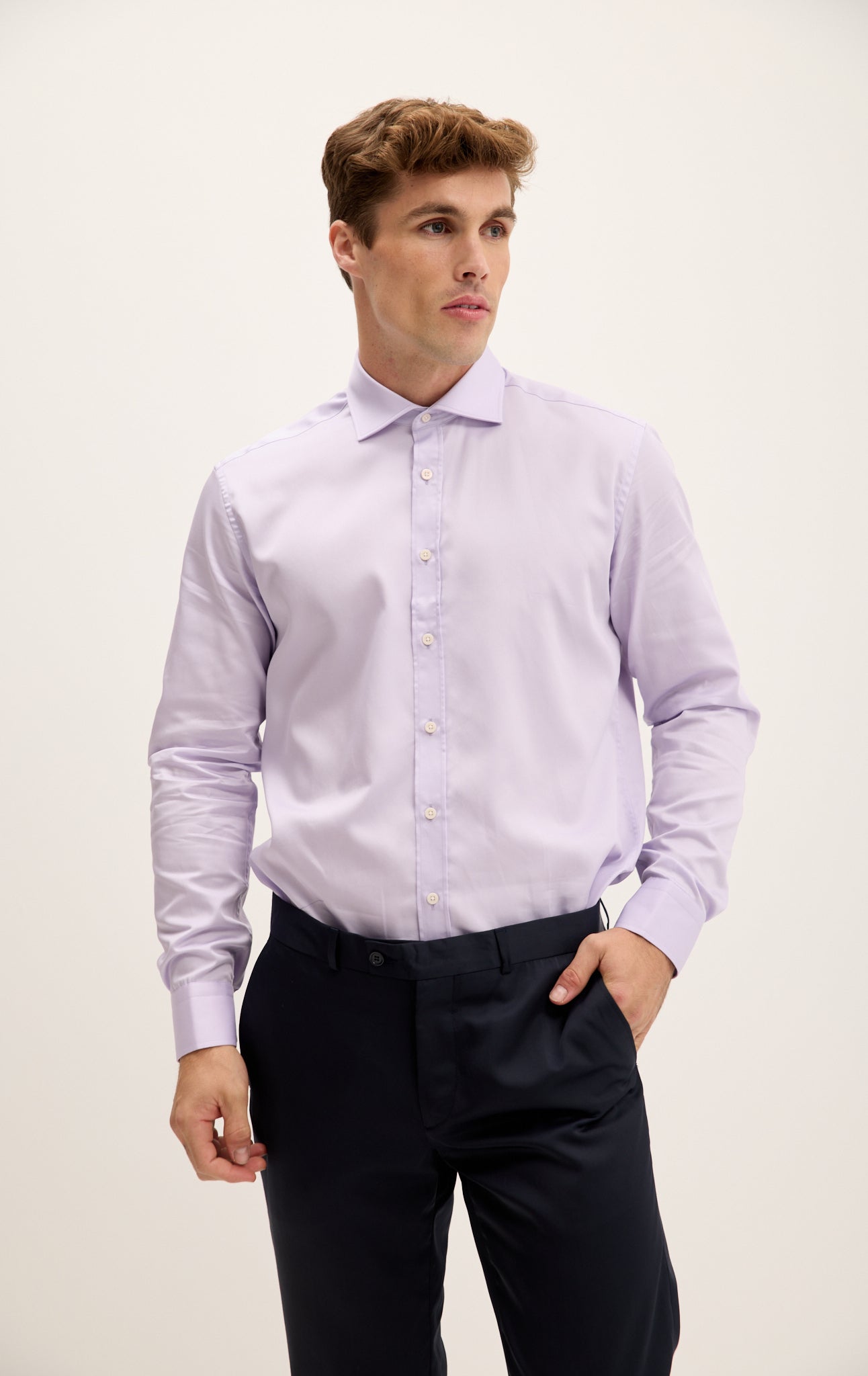 Pure Cotton Spread Collar Fitted Dress Shirt - Lavender