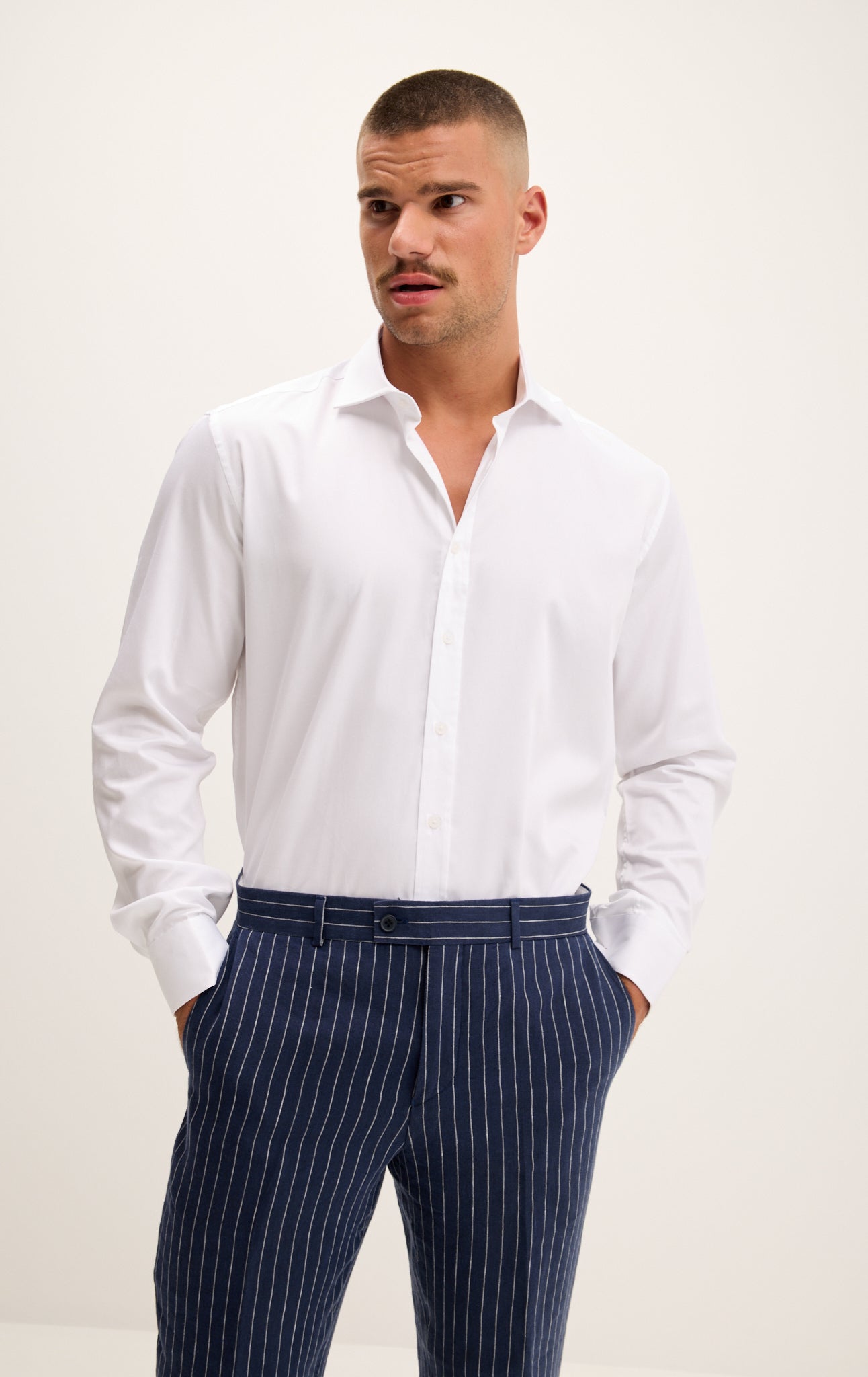 Pure Cotton Spread Collar Fitted Dress Shirt - Optic White