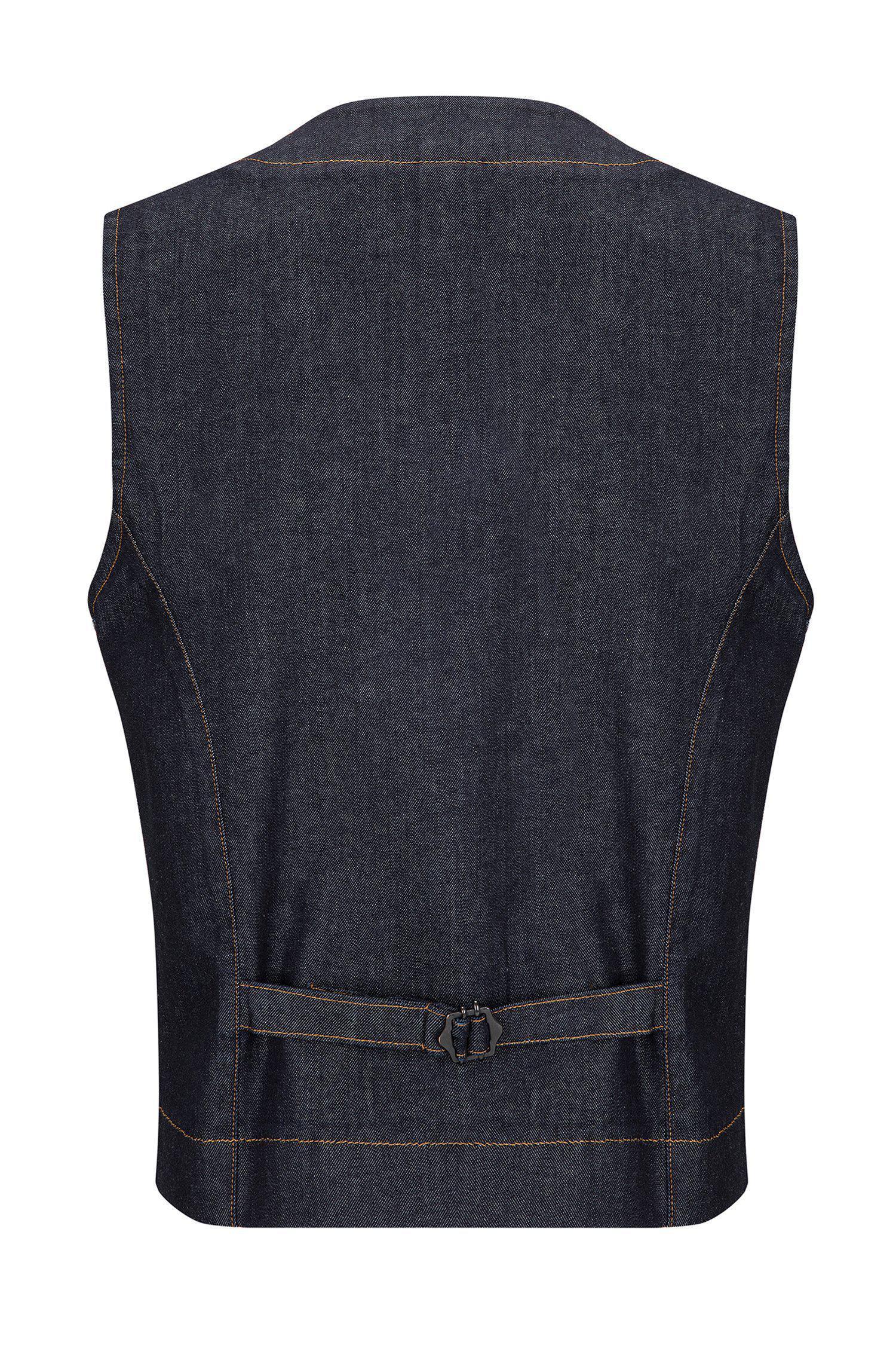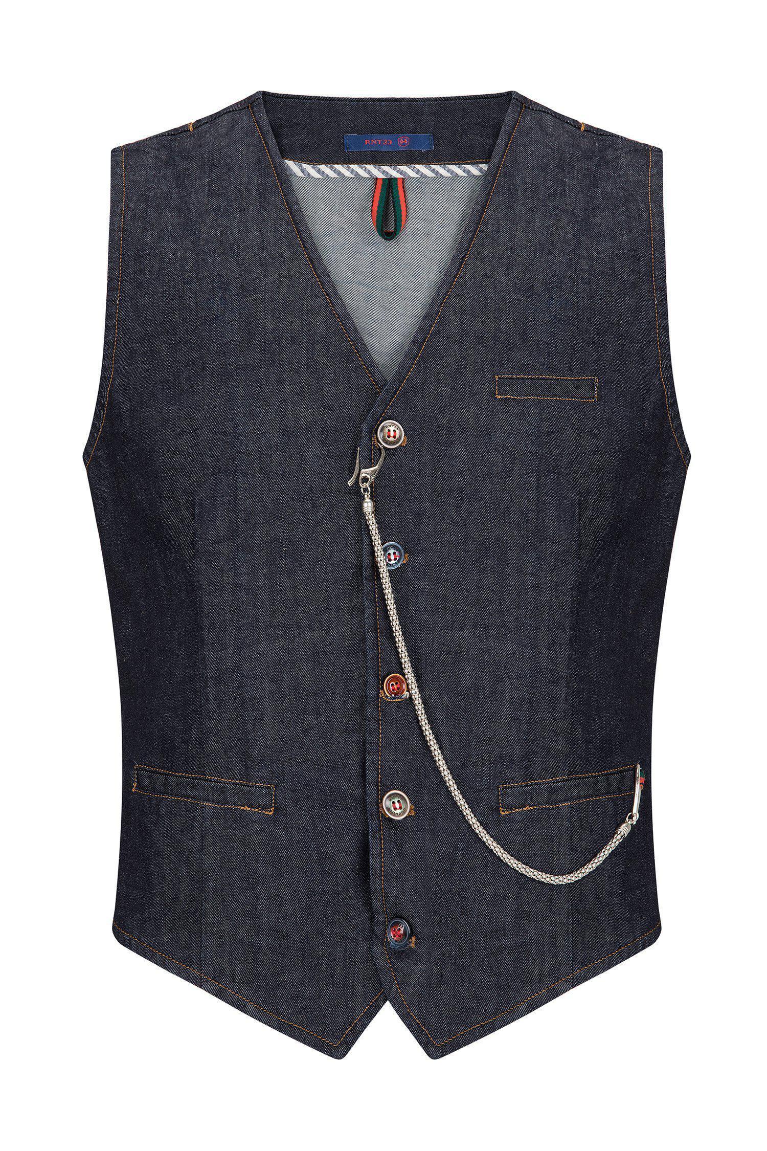 This dense cotton vest is a classic upgrade for any outfit. It makes a statement on its own, detailed with contrasting buttons. Chain is not included.
