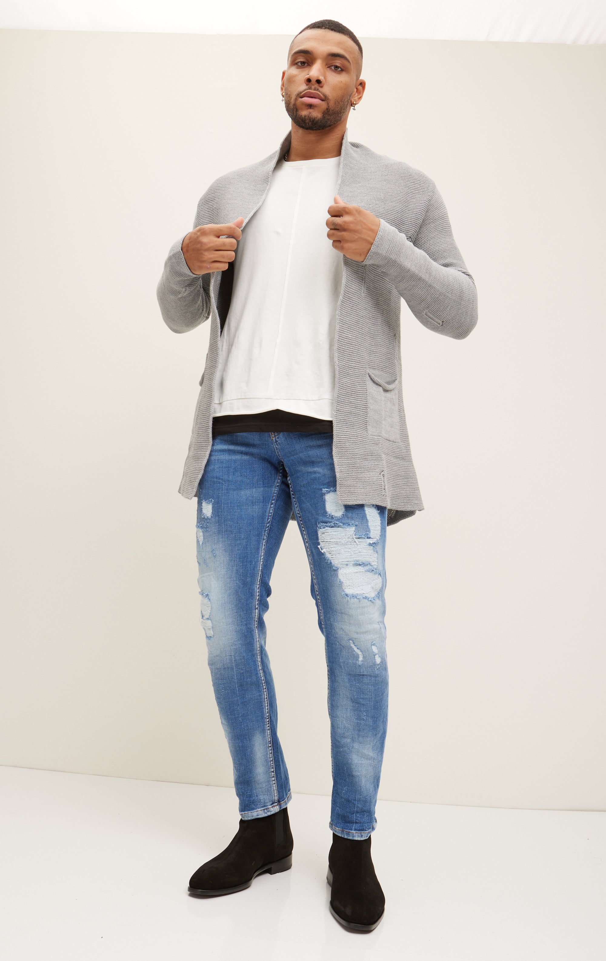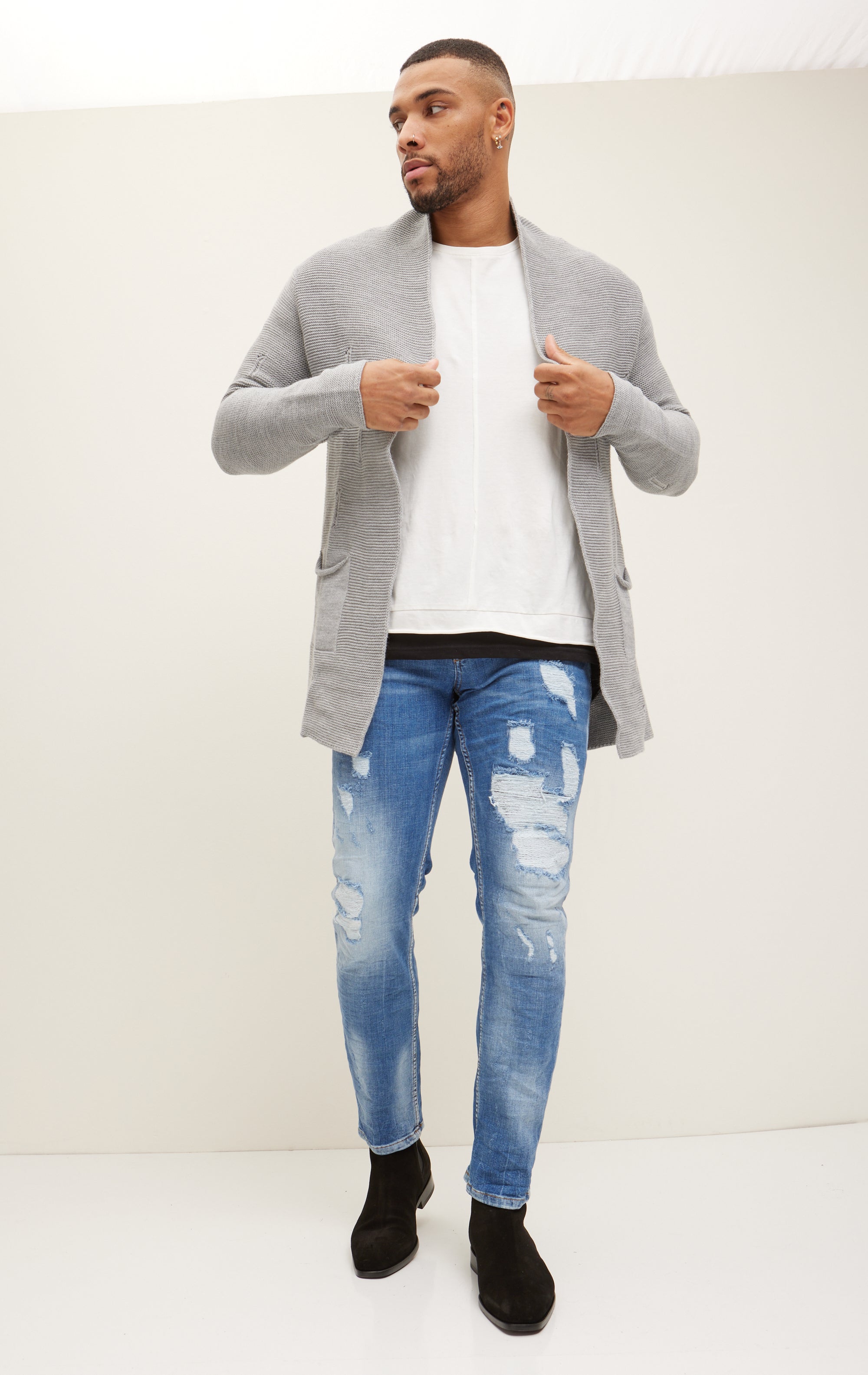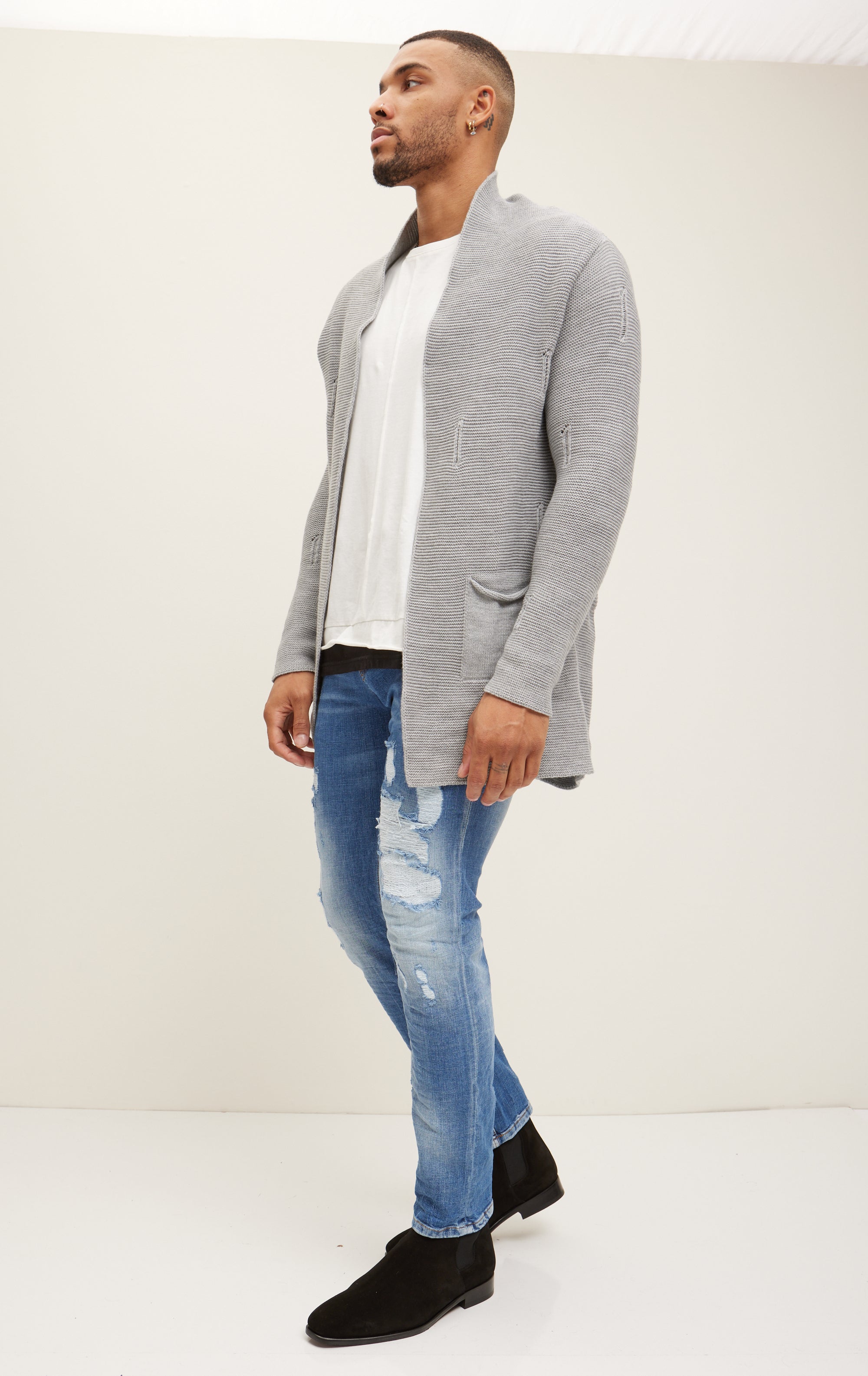 Trabajas duro para conseguir lo que quieres, tu ropa debería funcionar contigo. Siéntete cómodo en cualquier lugar con esta chaqueta de punto suave y acogedora. Usado aquí con botas y una camiseta blanca clásica, pero puedes combinarlo con cualquier cosa para salir o quedarse.