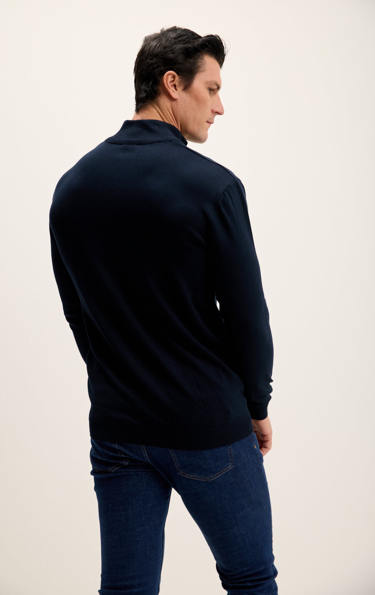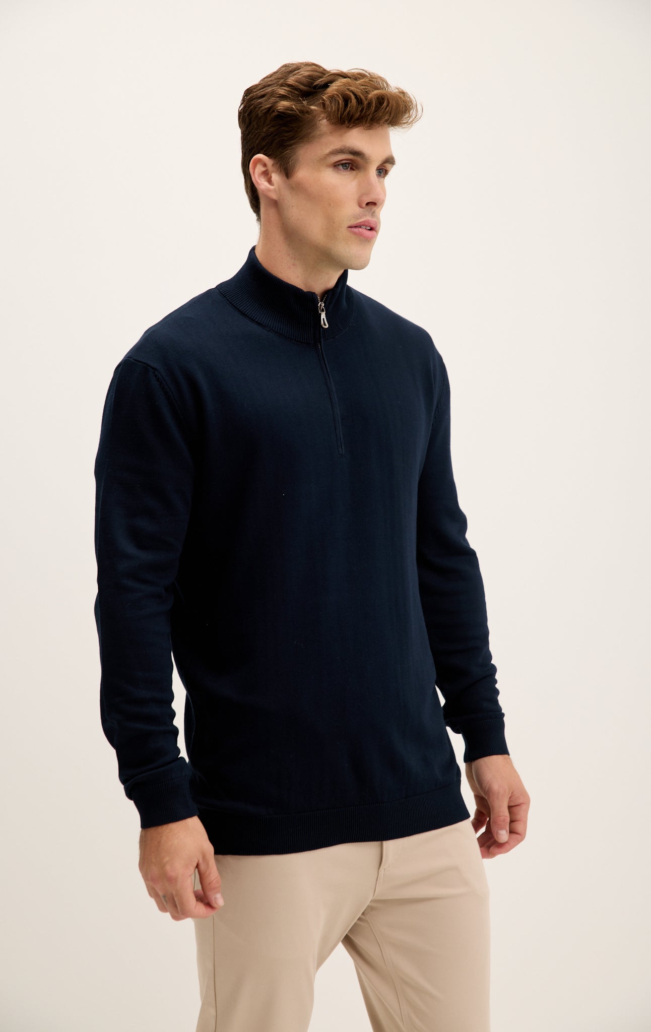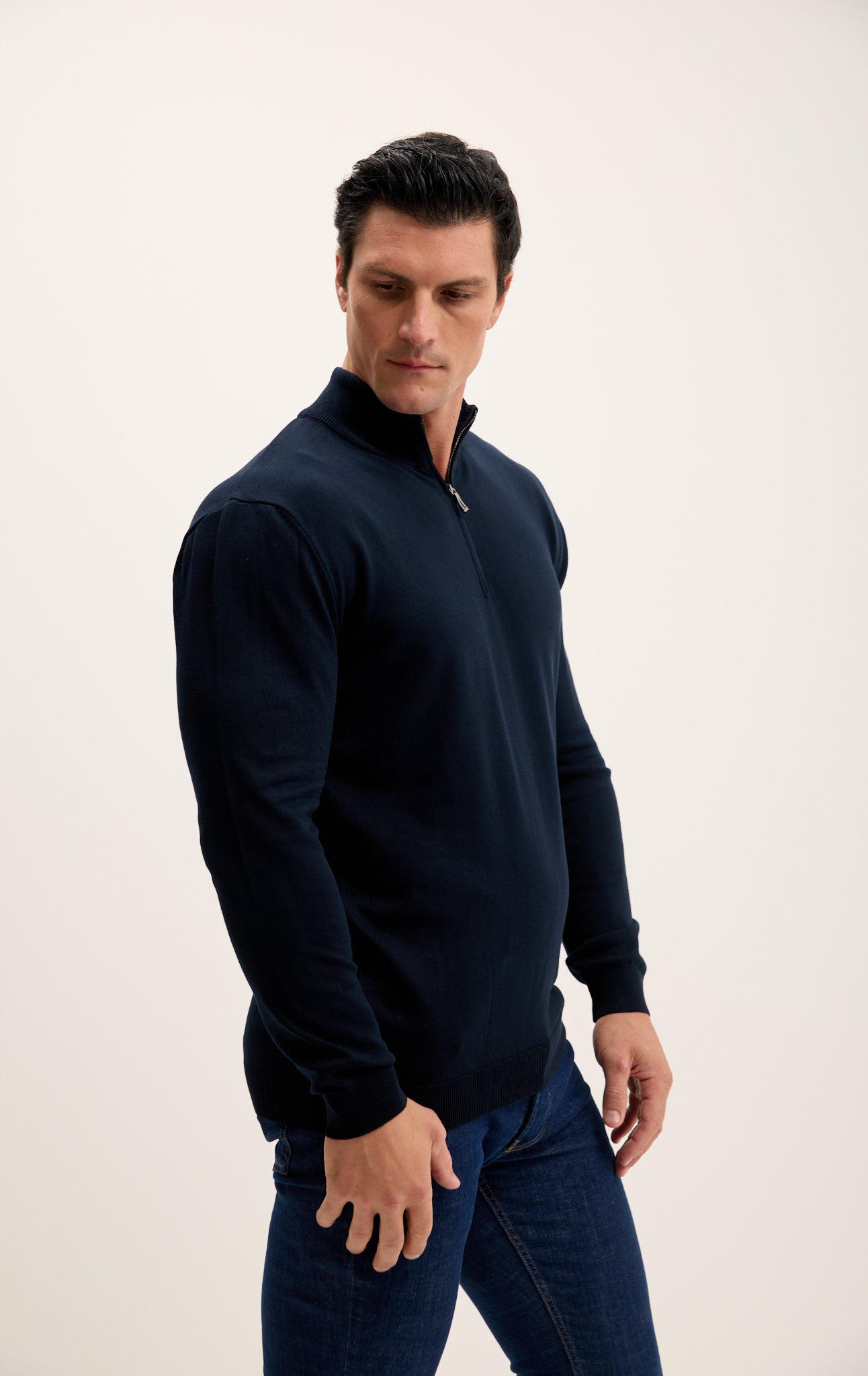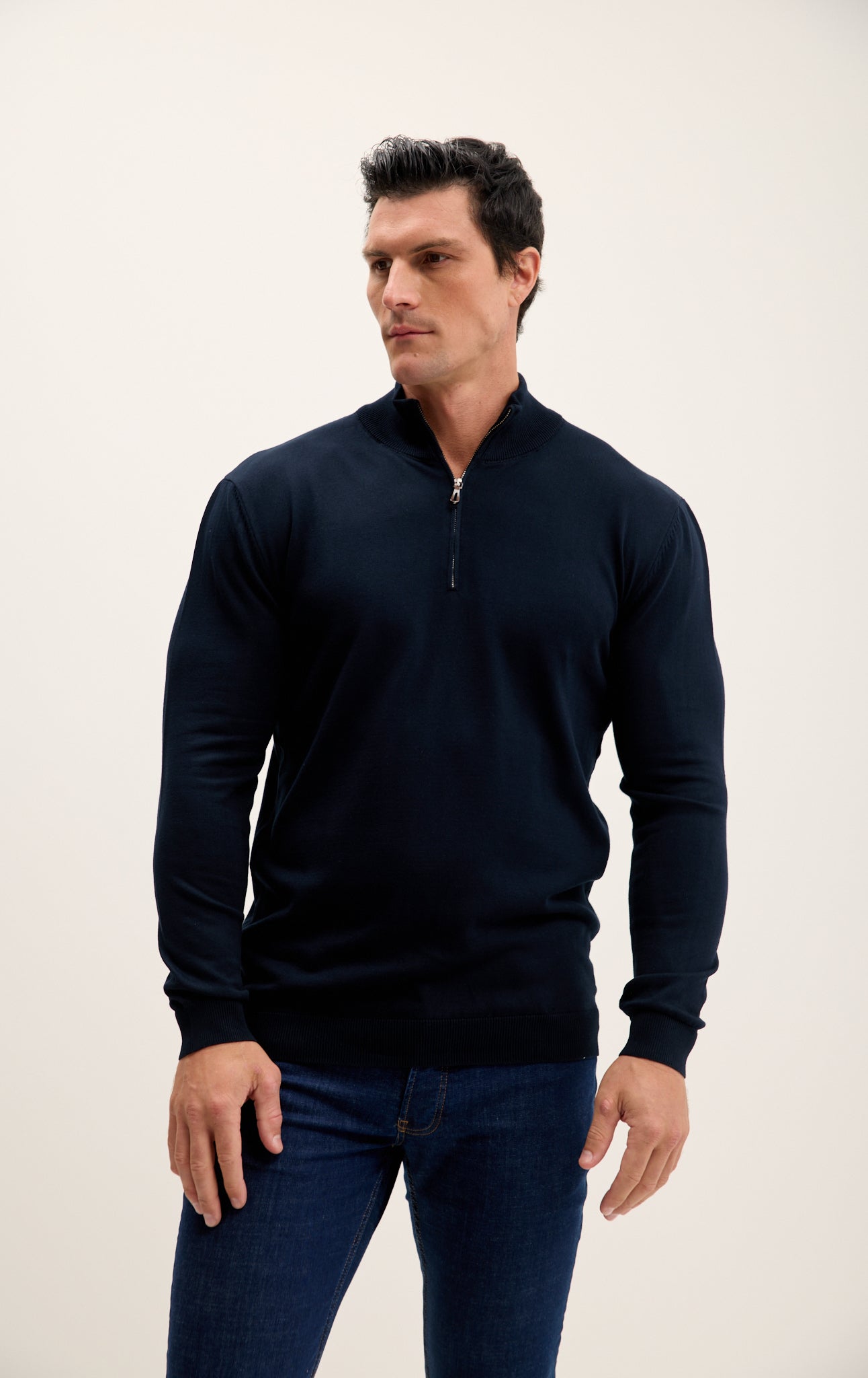 Zipper Closure Mock Neck Sweater - Navy