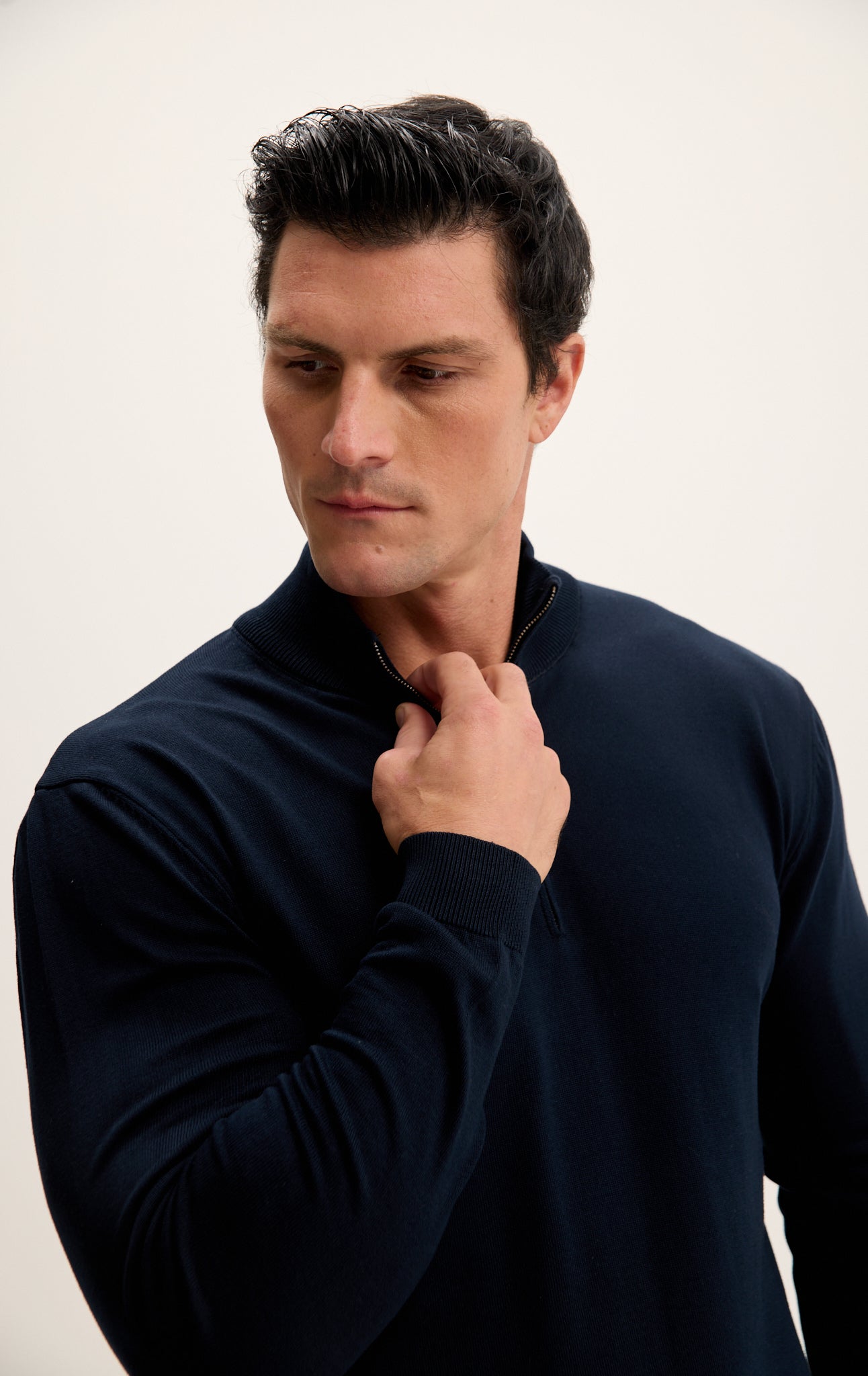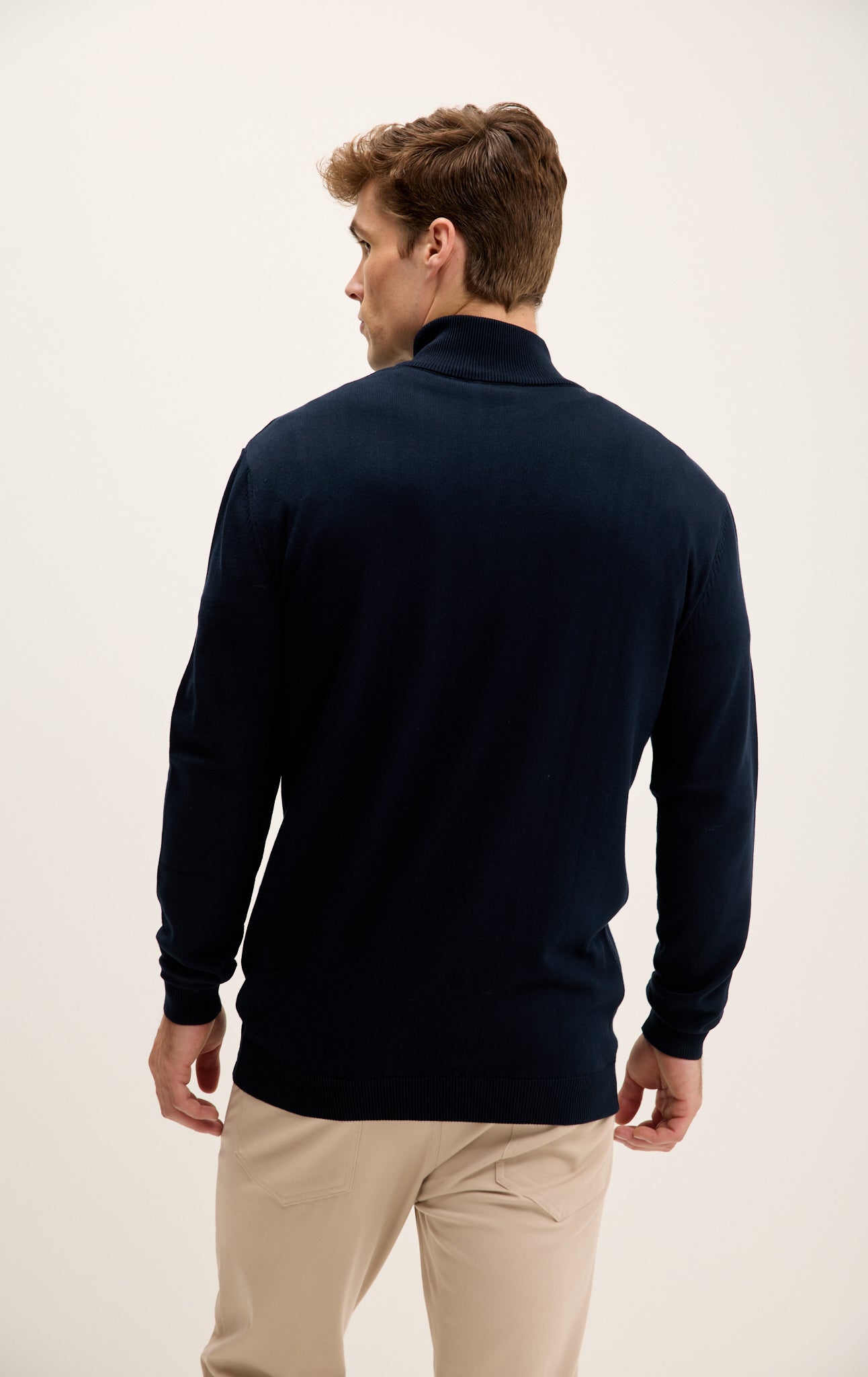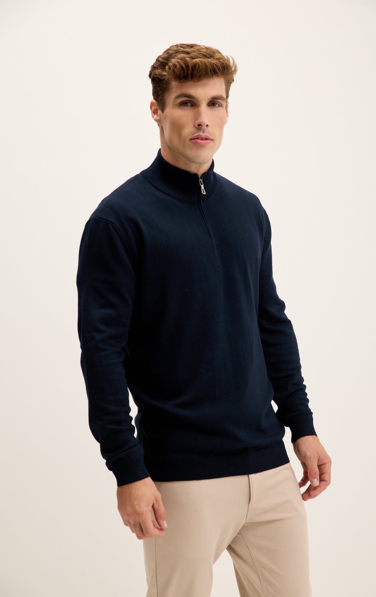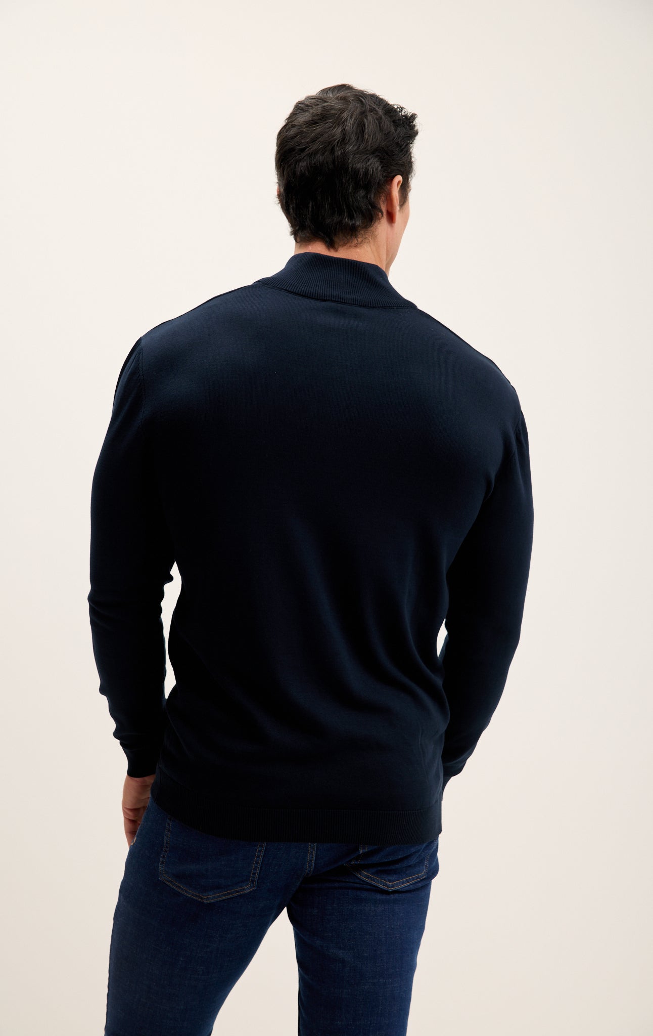 Zipper Closure Mock Neck Sweater - Navy