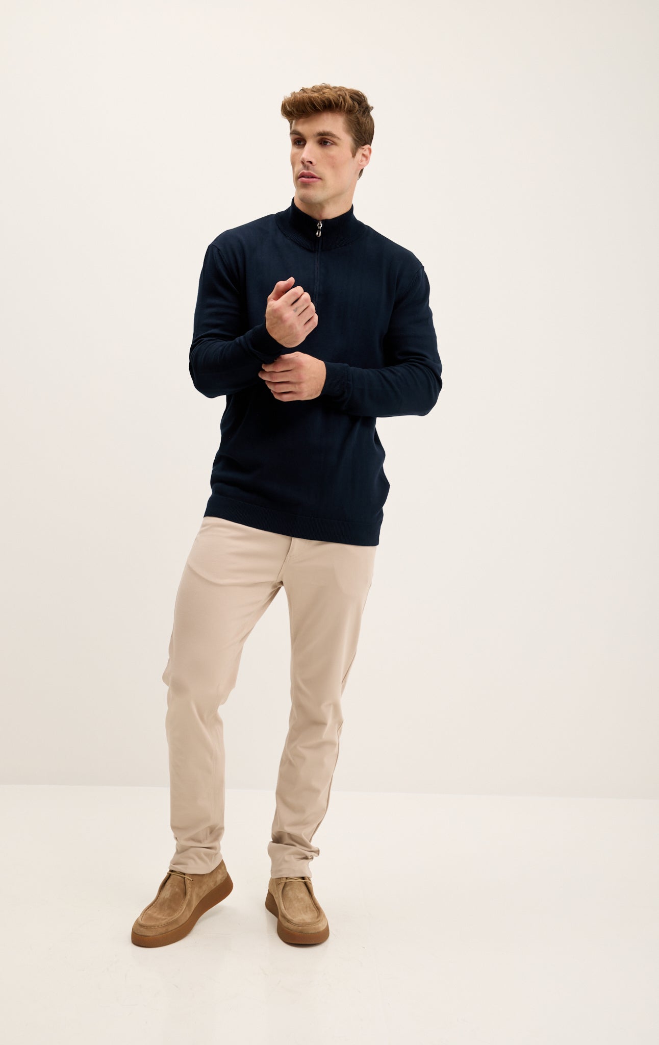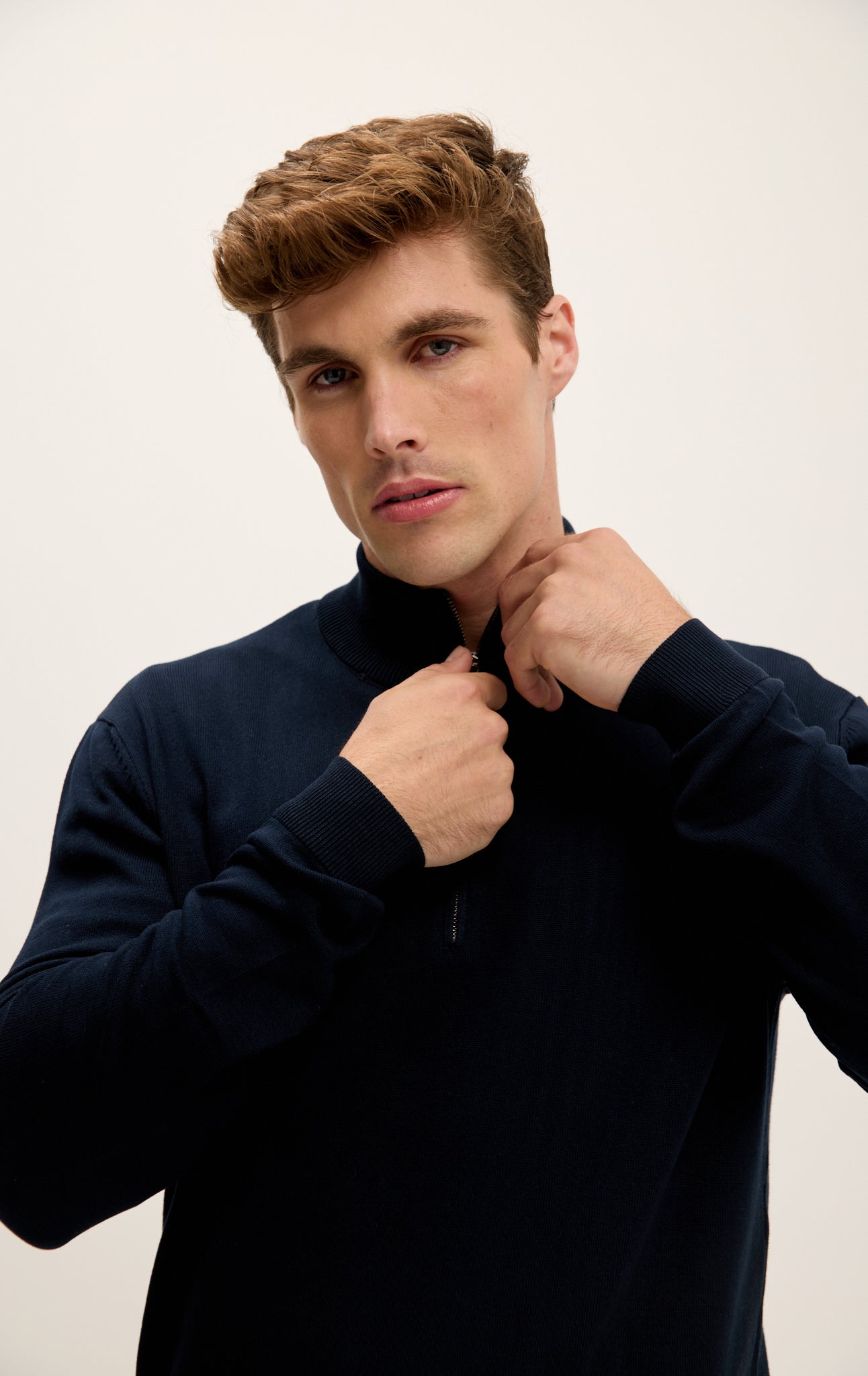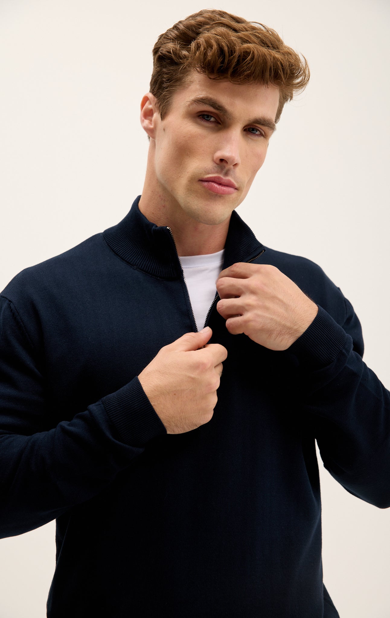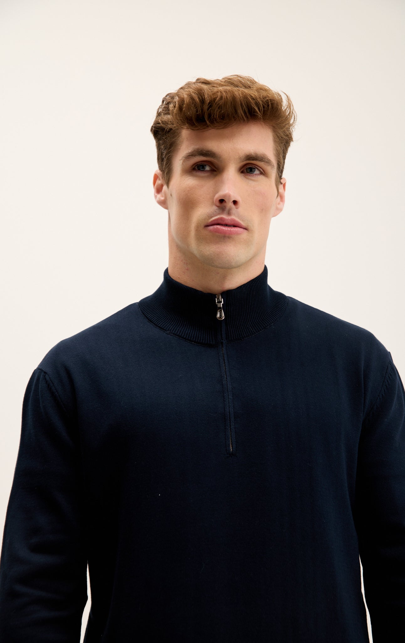 Zipper Closure Mock Neck Sweater - Navy