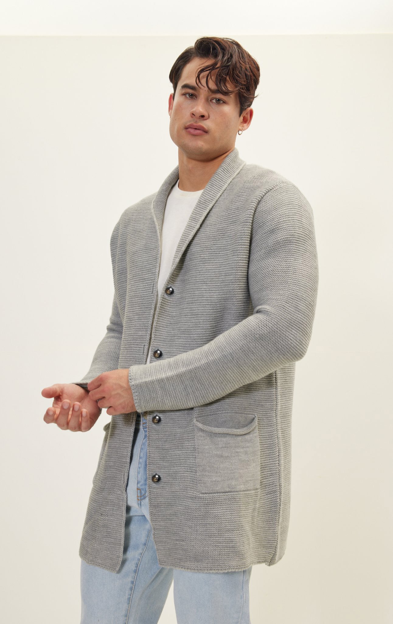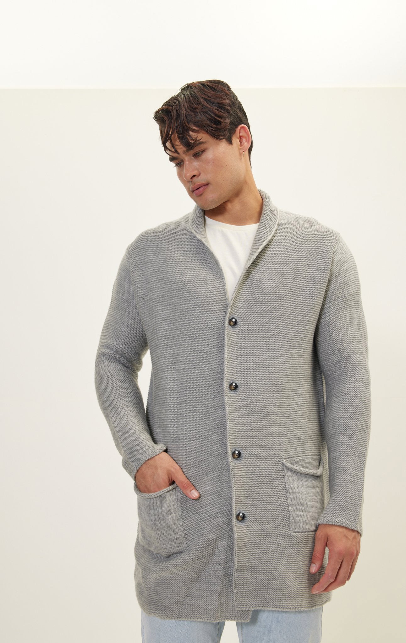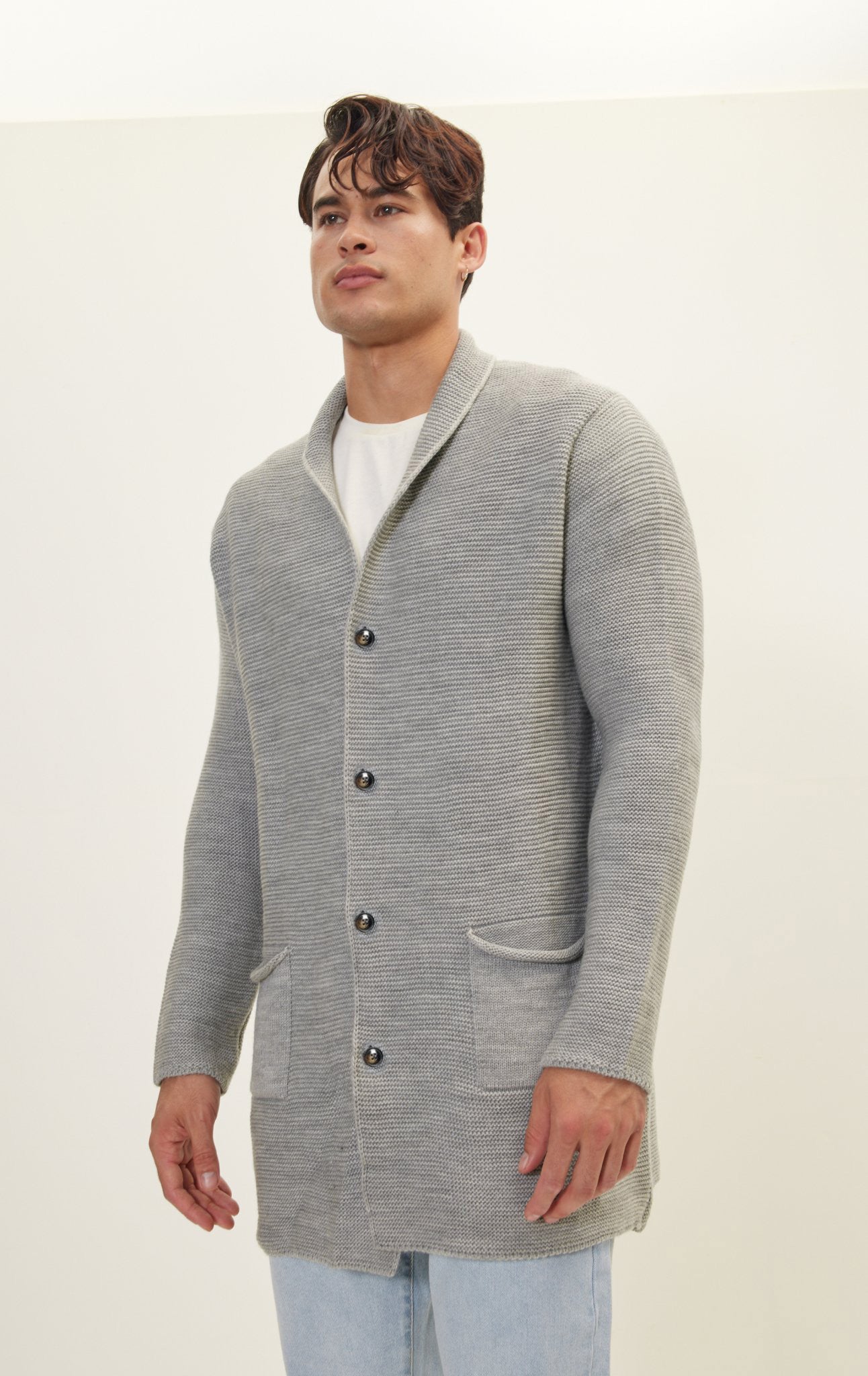 Shawl Lapel Long Cardigan - Gray