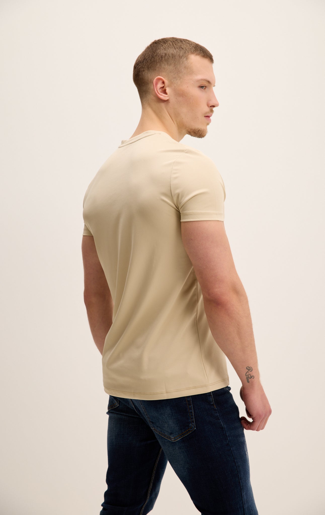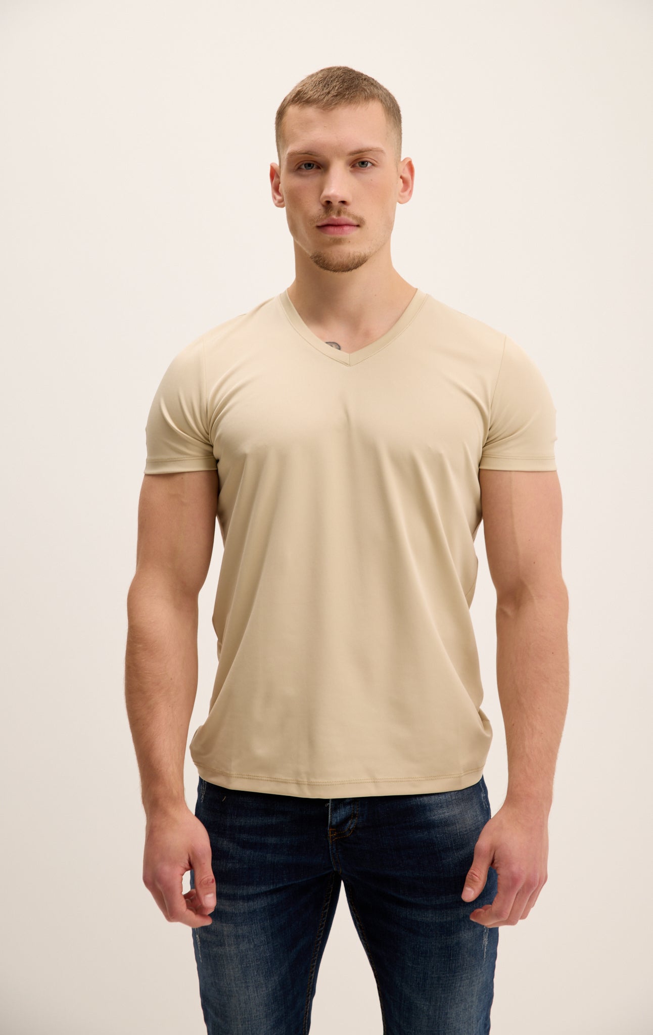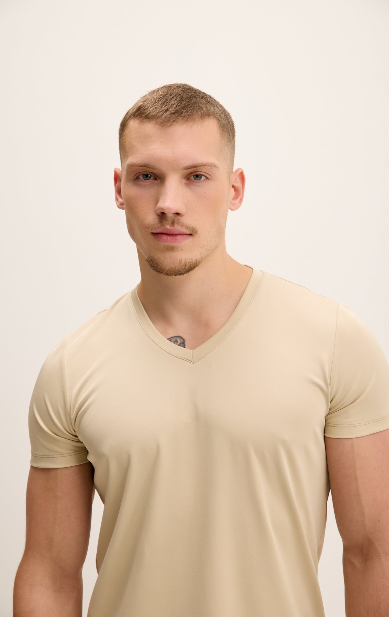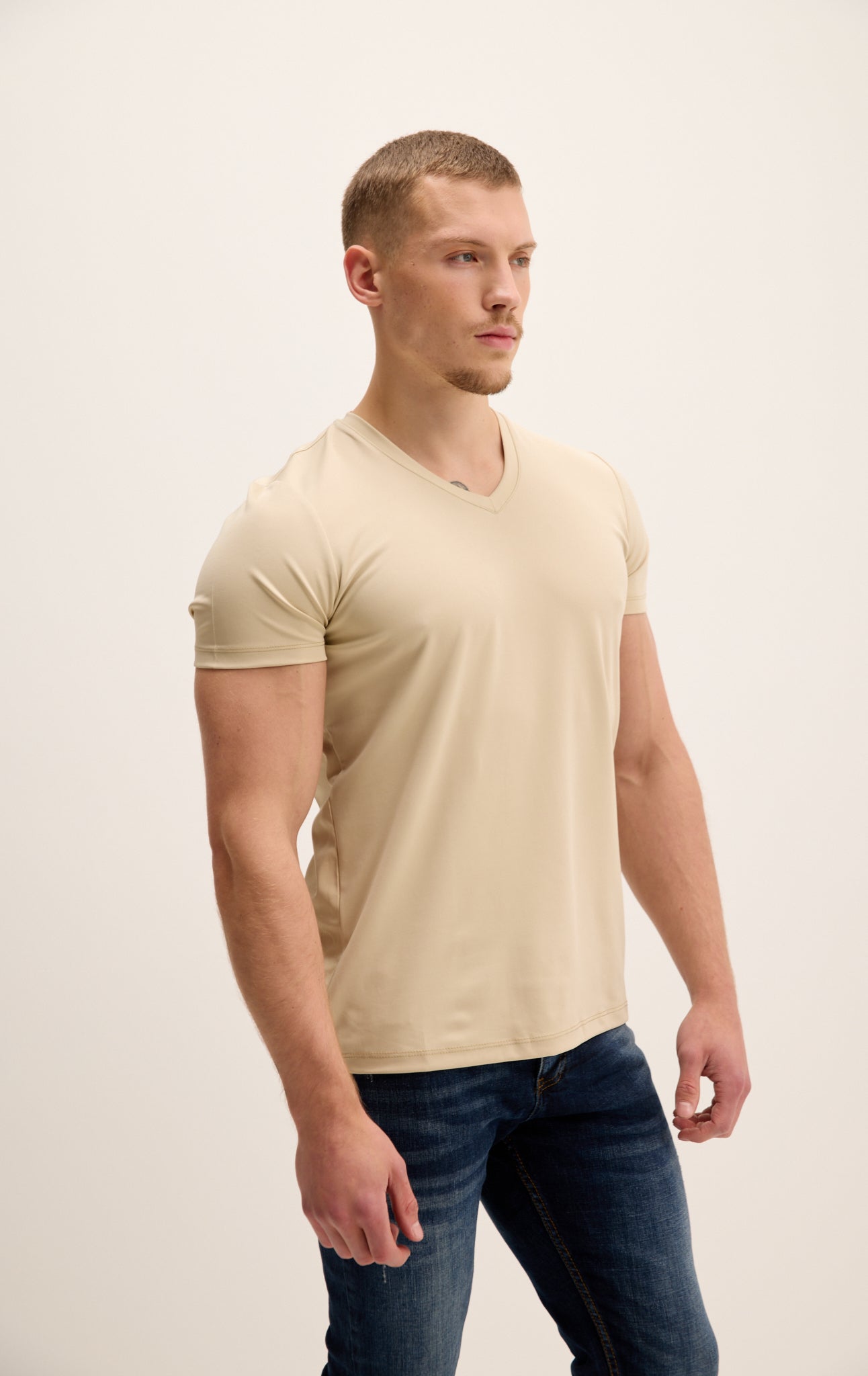 Introducing our V-neck Fitted Sleeves T-shirt, the perfect blend of style and comfort! Crafted with a flattering V-neckline and fitted sleeves, this shirt offers a sleek and modern silhouette that complements your physique. Made from high-quality materials, it provides a comfortable fit and feels luxurious against your skin. Whether you're dressing up or keeping it casual, our V-neck Fitted Sleeves T-shirt is a versatile wardrobe essential that will keep you looking and feeling great all day long.