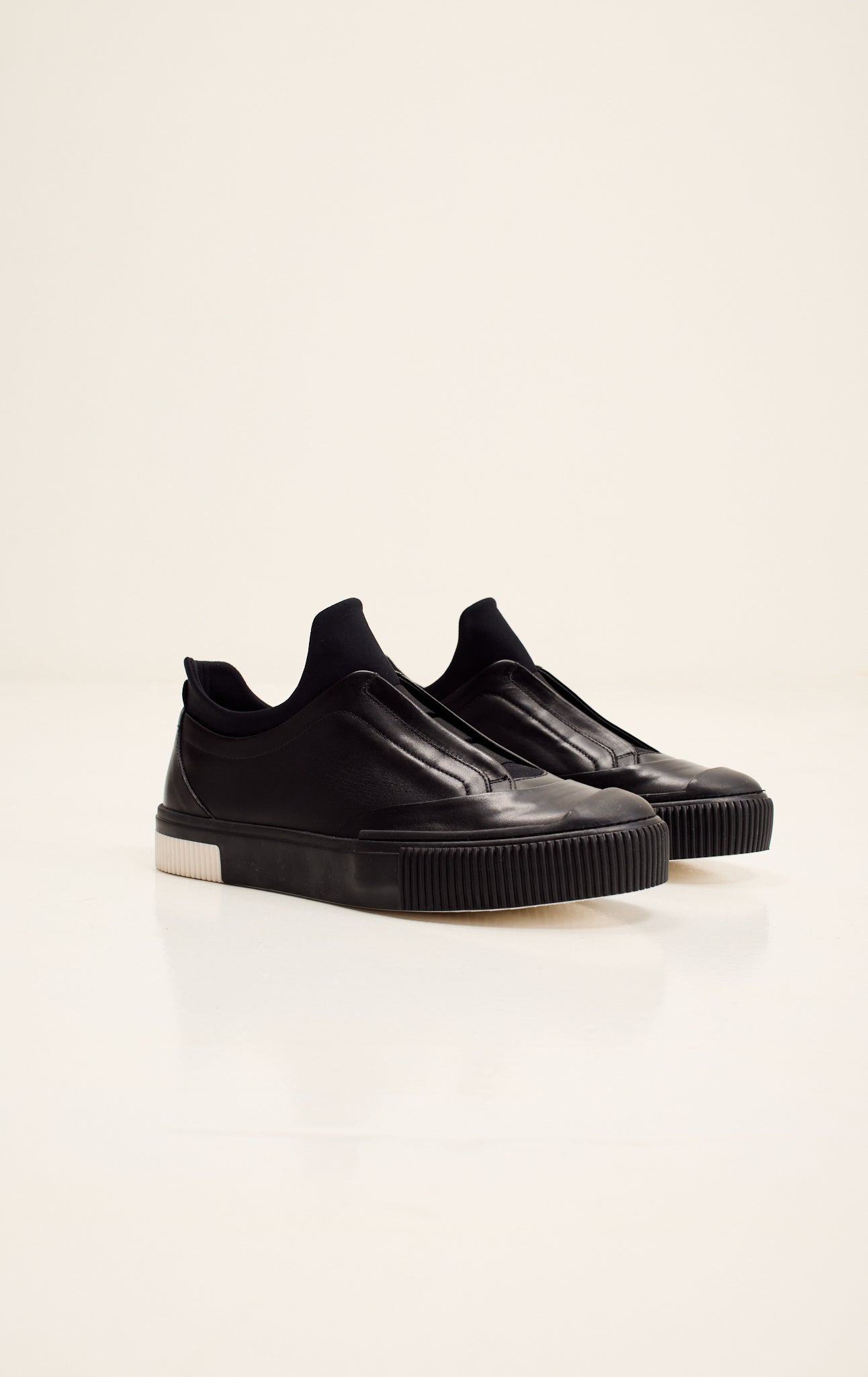 Neoprene Neck Leather Shoe with Italian Gommus Rubber Sole - Black