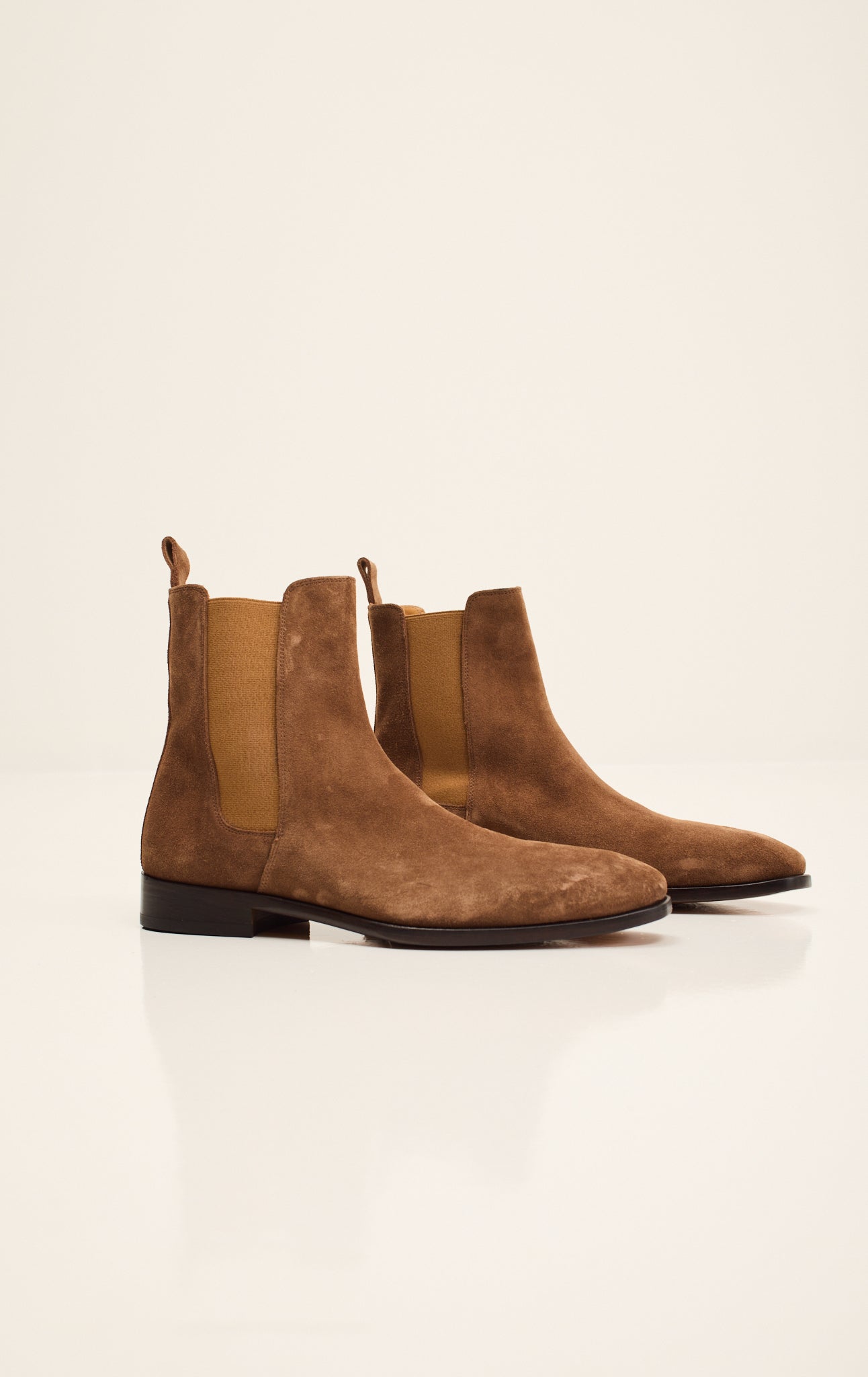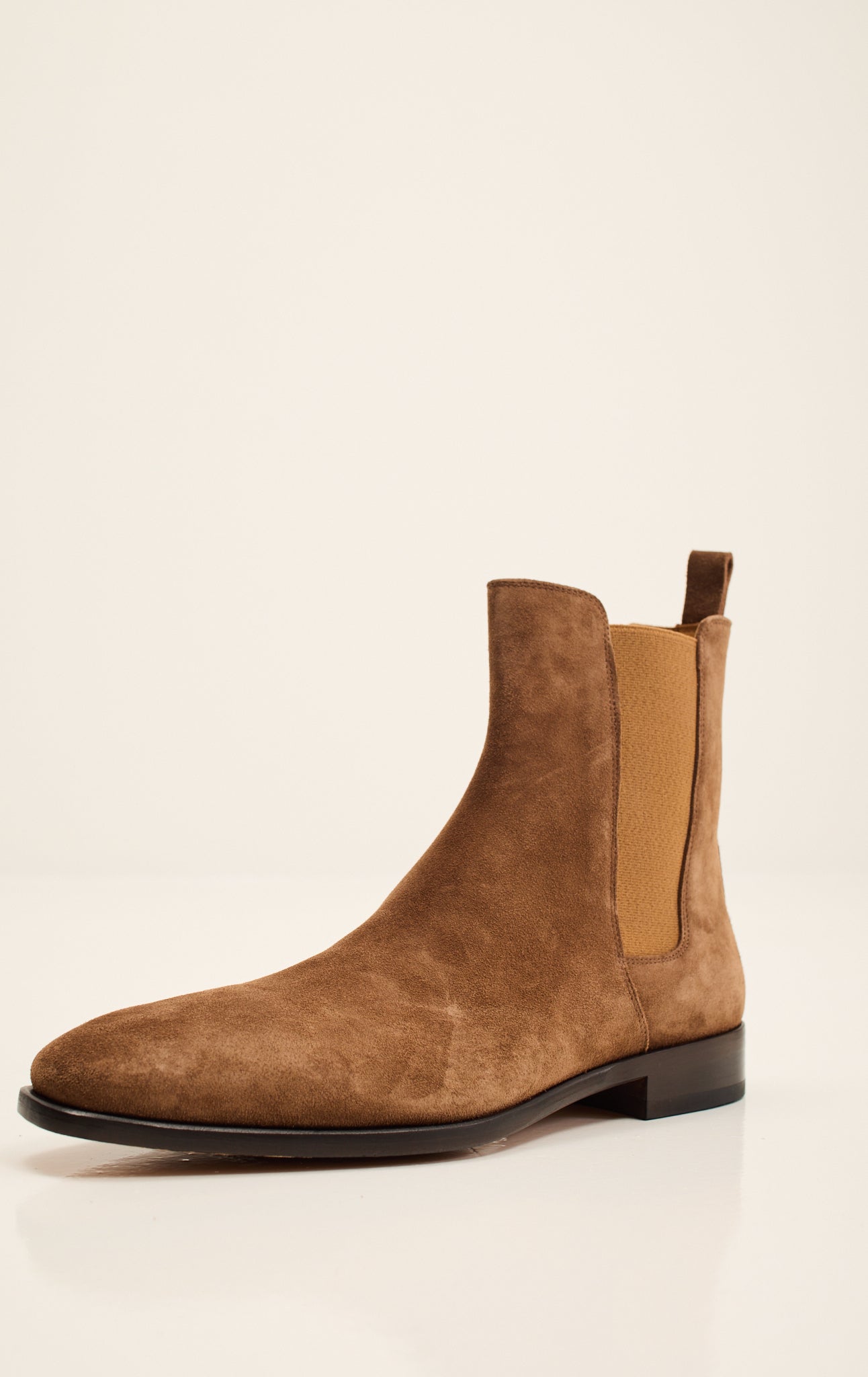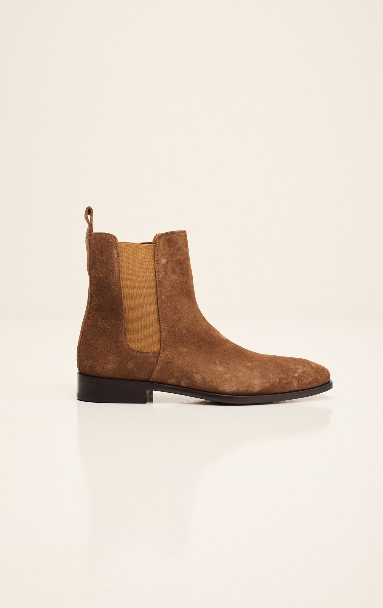 Las botas Chelsea son tan atemporales como una zapatilla icónica o un traje perfectamente adaptado. Hecho en Italia a partir de tabaco flexible. gamuza y cuero cómodo suelas Úselos con todo, desde jeans hasta pantalones a medida y pantalones chinos.