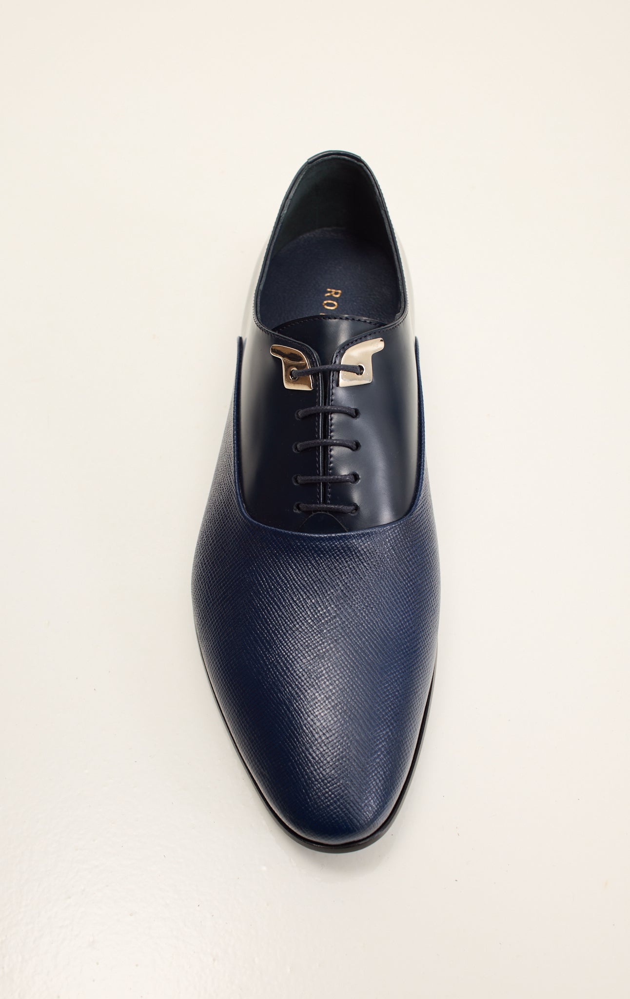 Esta versión azul en dos tonos de los atemporales 'Oxfords' ha sido confeccionada a mano con cuero impecablemente suave, adornada con una plantilla de cuero que hace un guiño a la herencia de la marca. Perfectamente combinado con trajes a medida, chaquetas de cuero o un esmoquin en una alfombra roja.