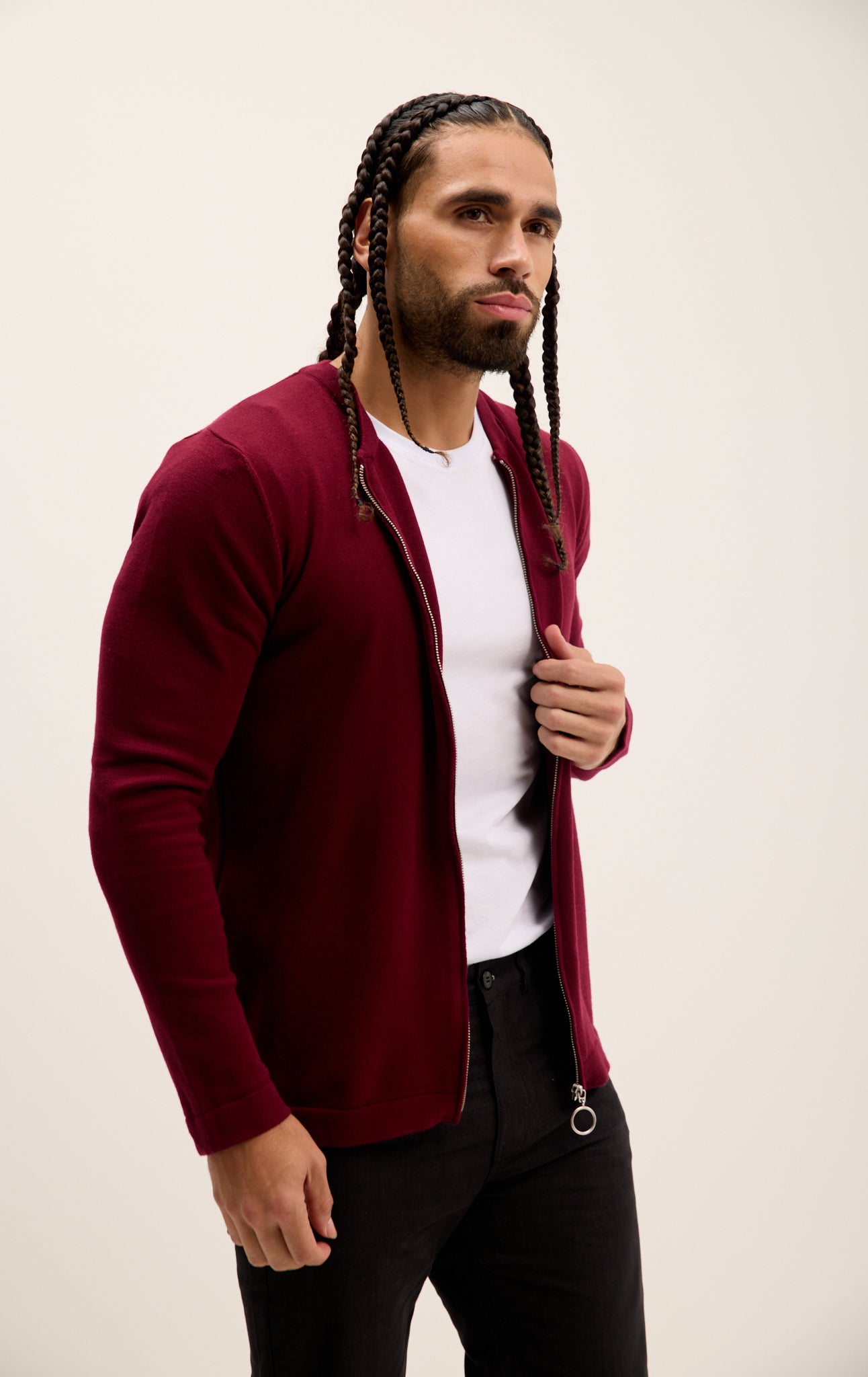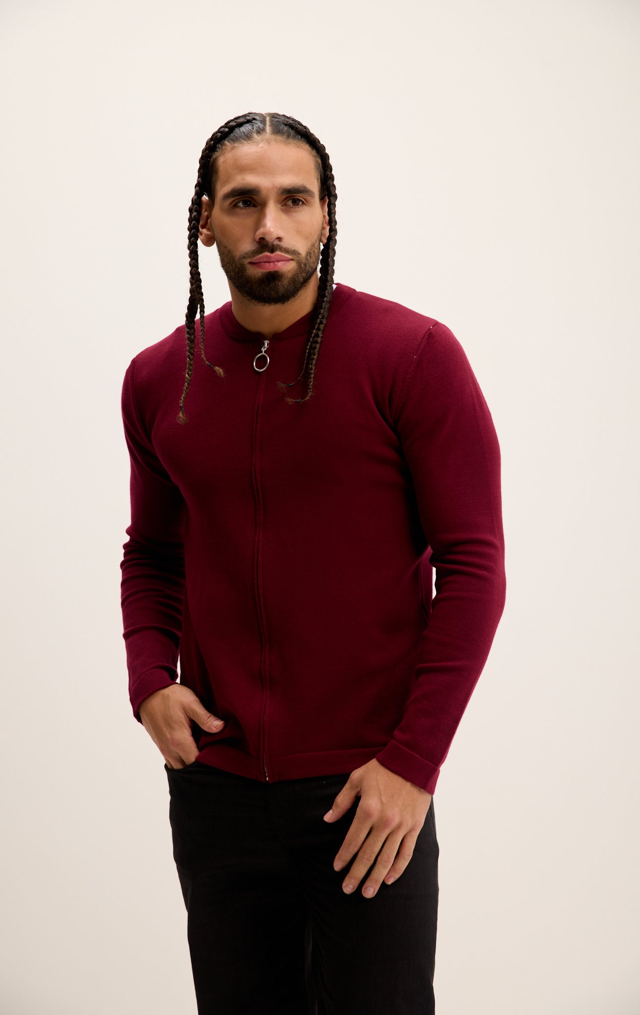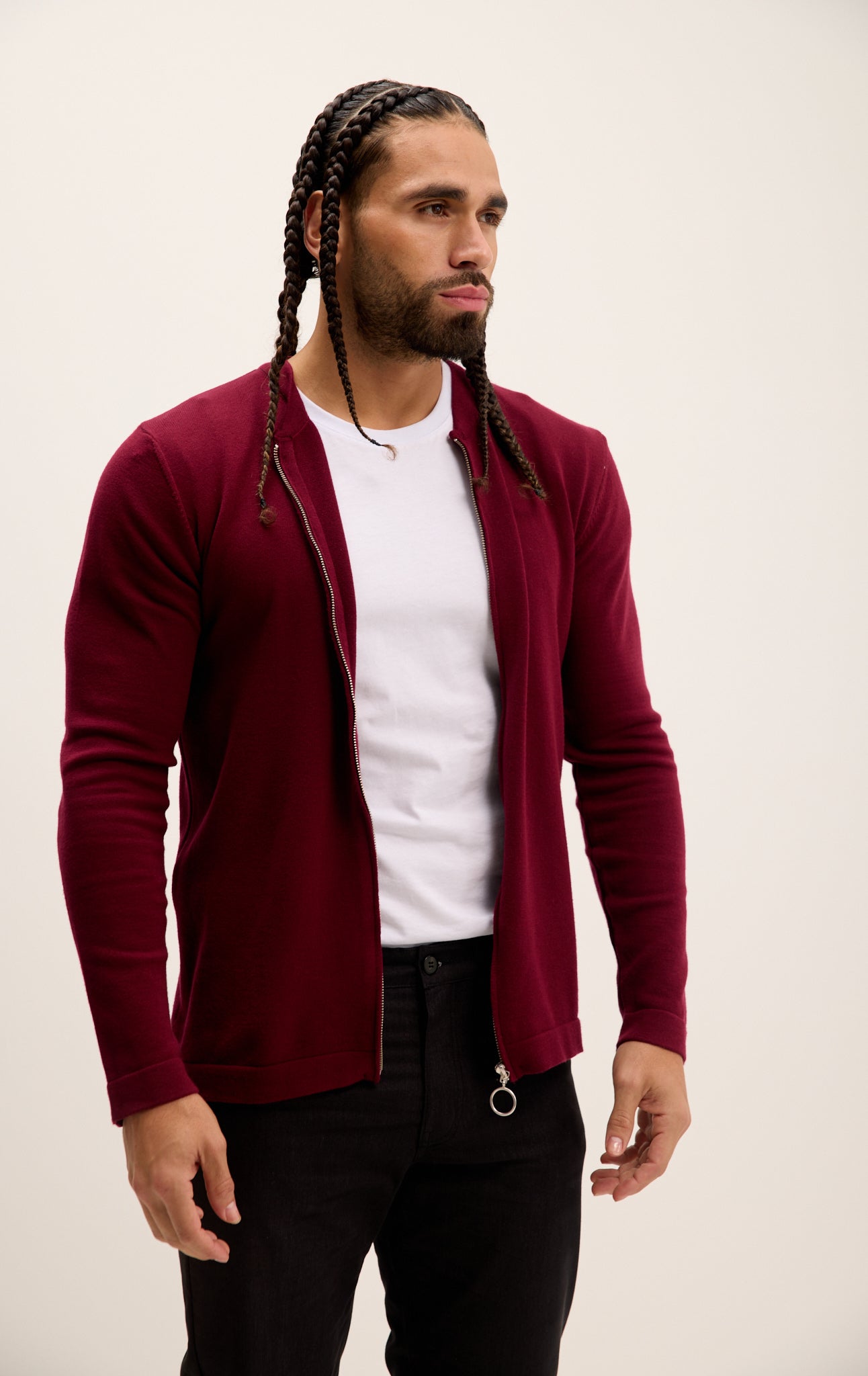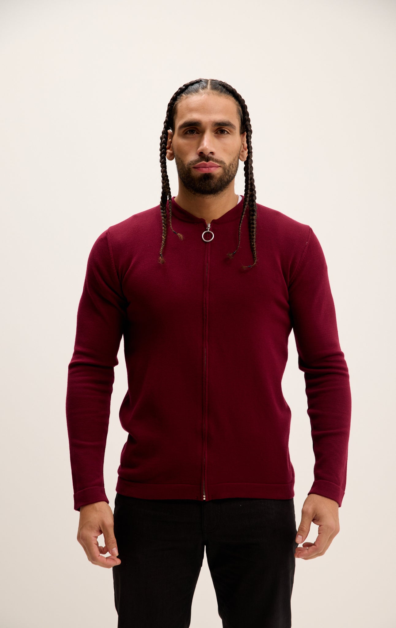 Full Zip Closure Cardigan - Burgundy