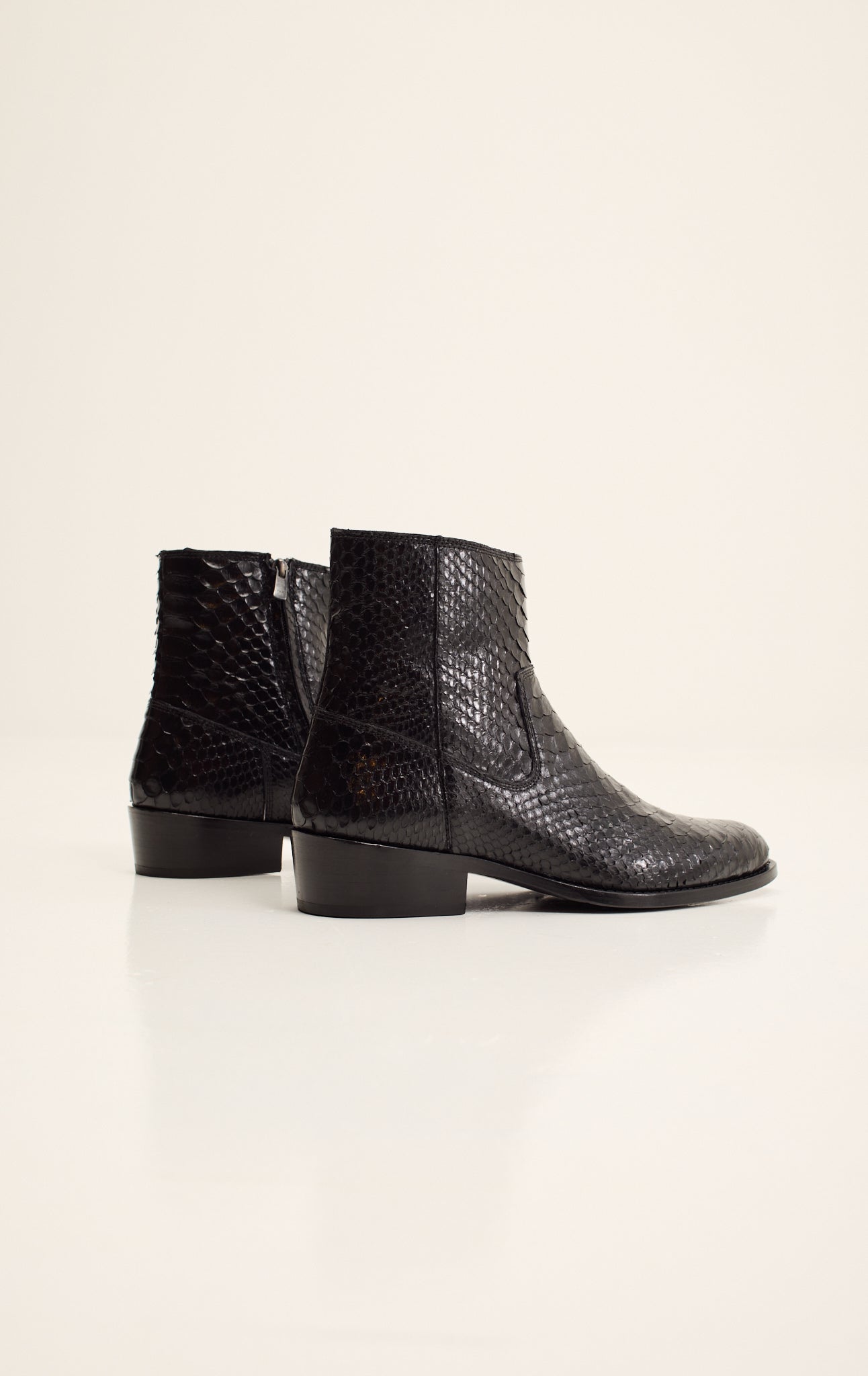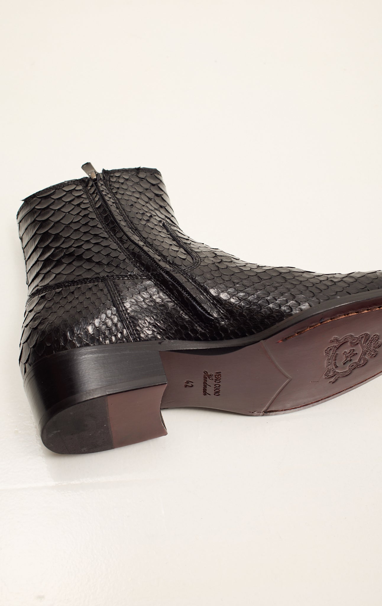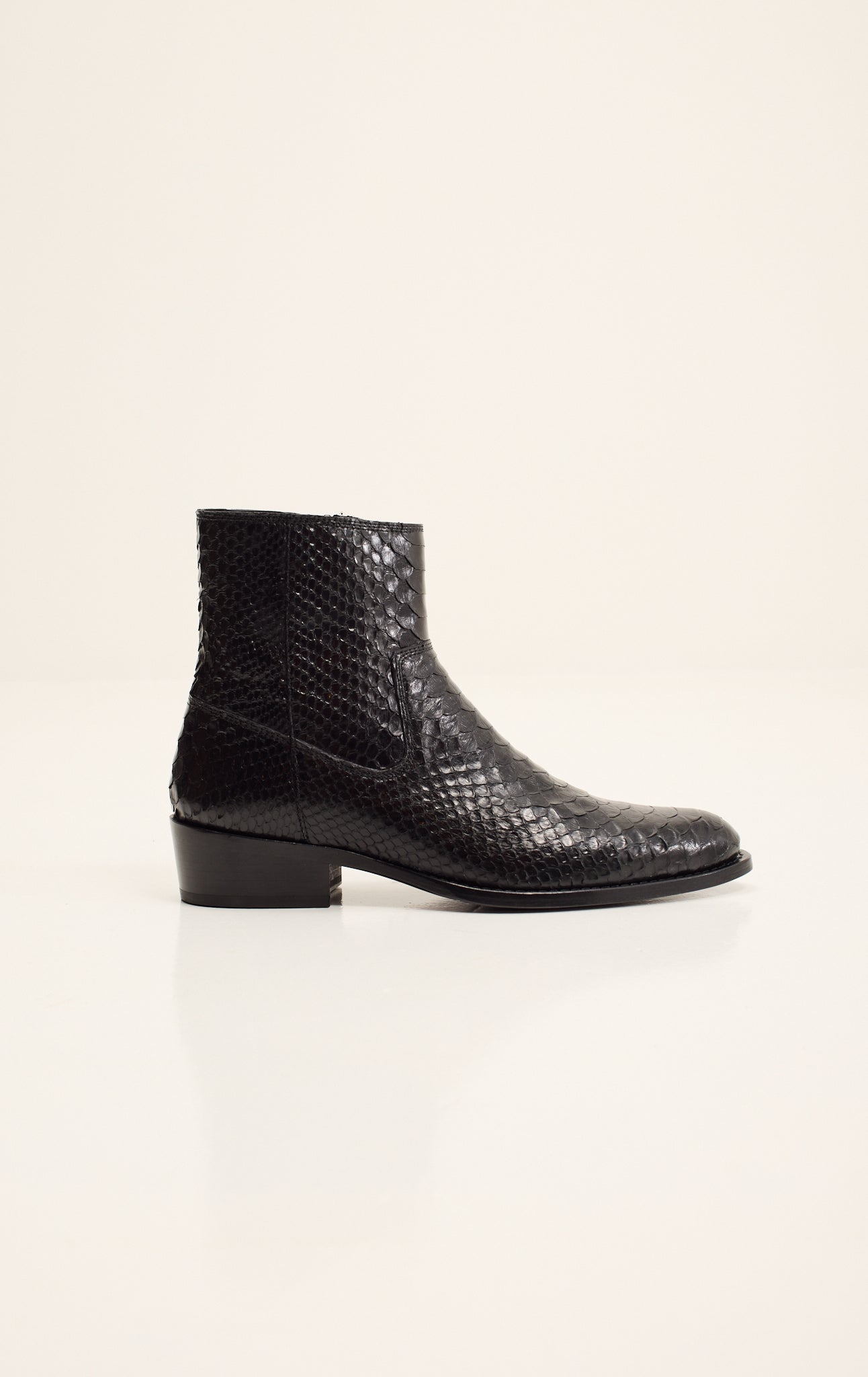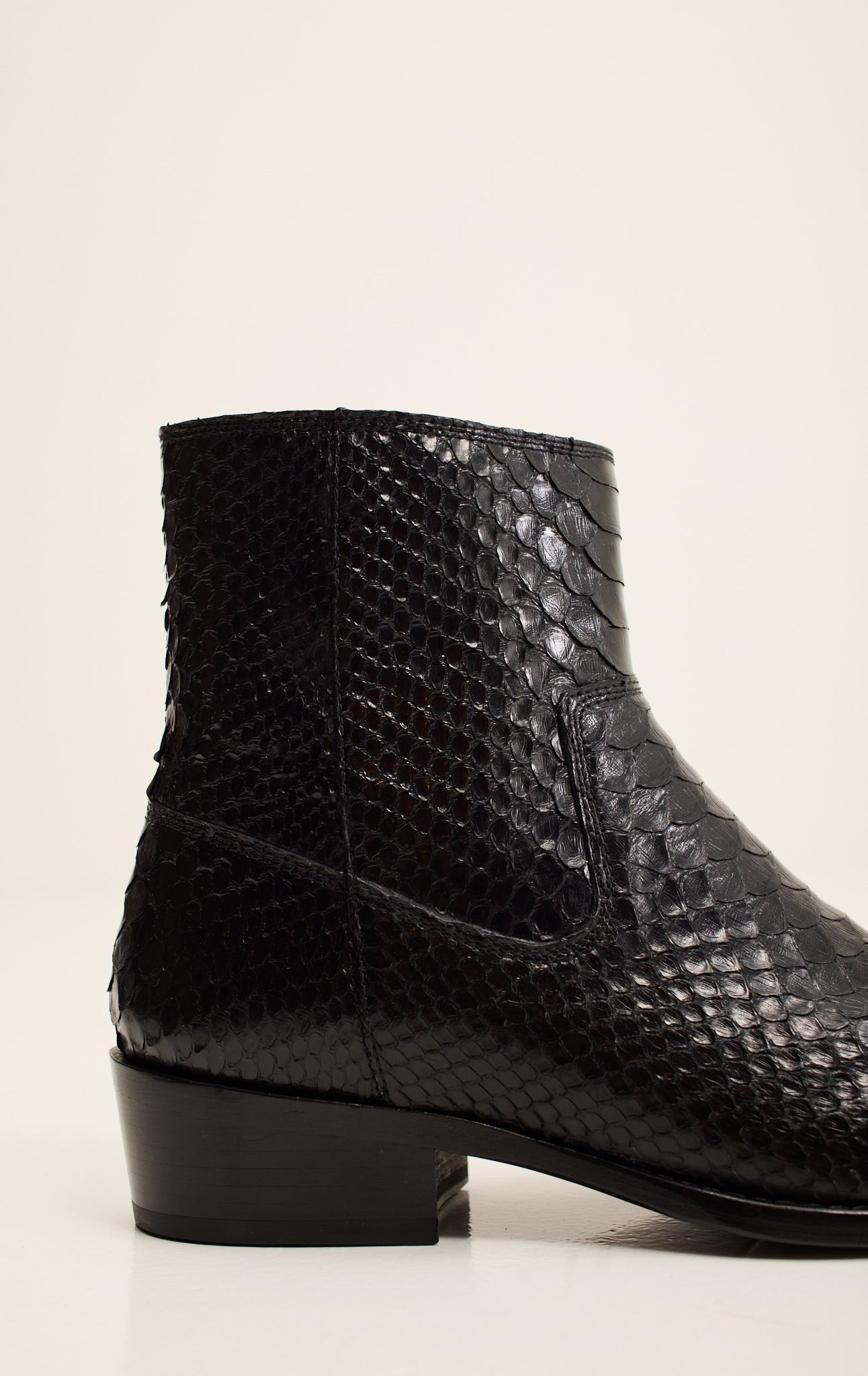 Genuine Snake Skin Side-Zip Chelsea Boots - Black