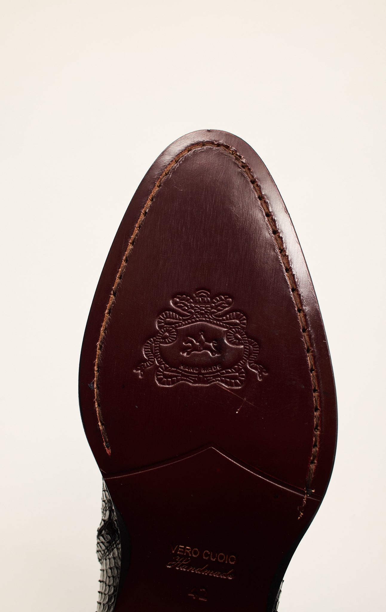 The interior boasts a soft leather insole for superior comfort and moisture control, while the durable leather outsole provides excellent traction and longevity—complete with the authentic "Vero Cuoio" stamp signifying true Italian craftsmanship.