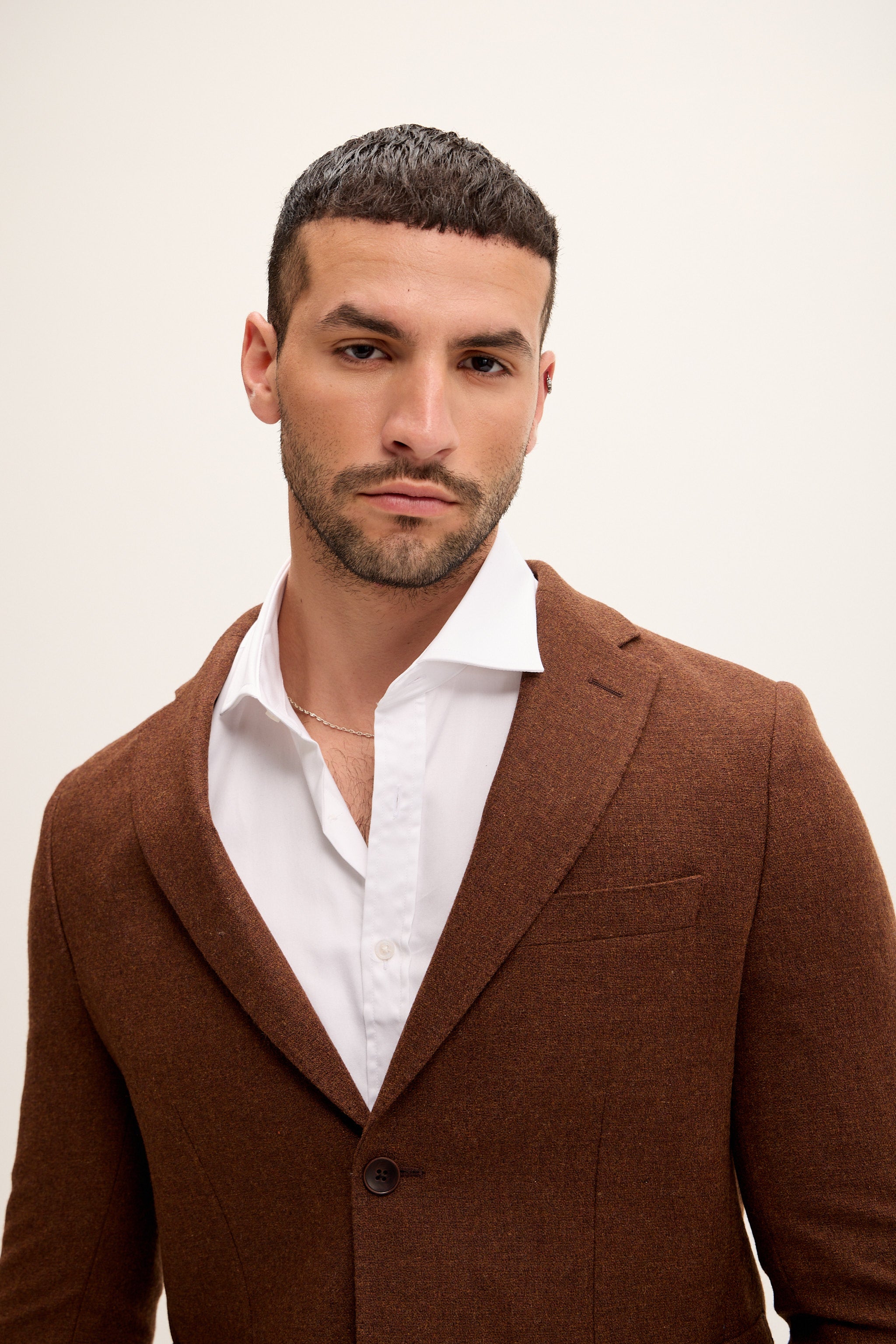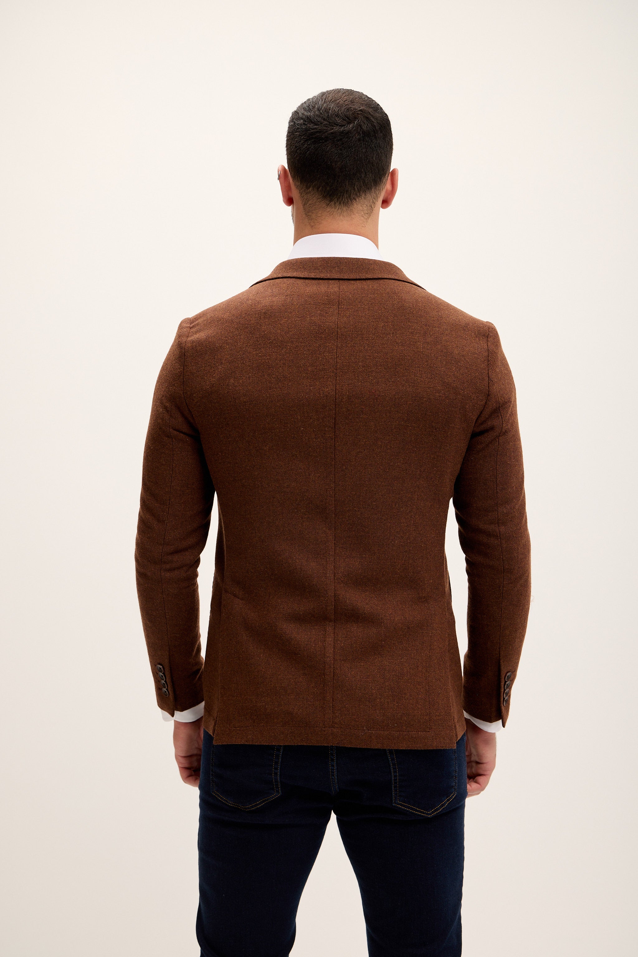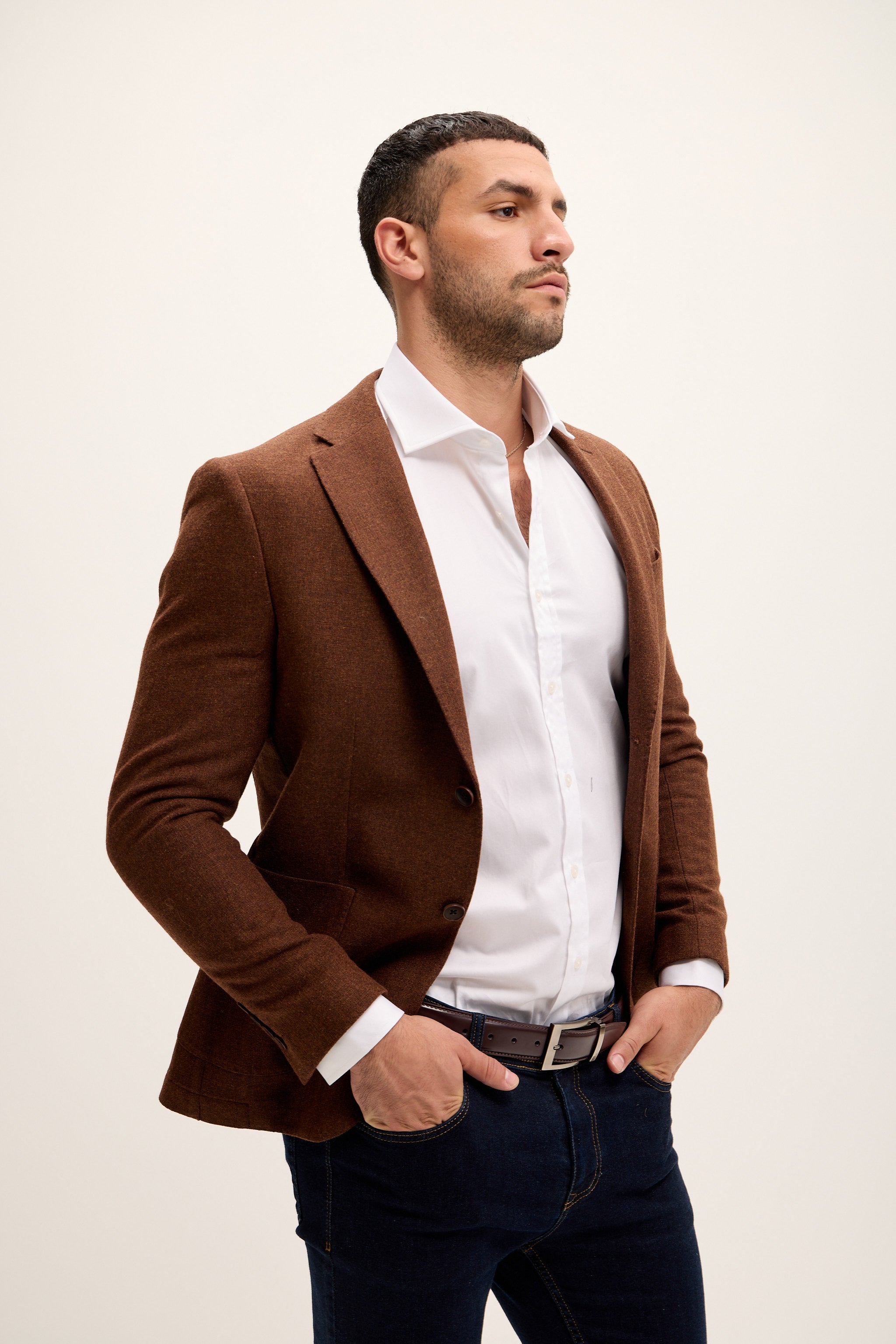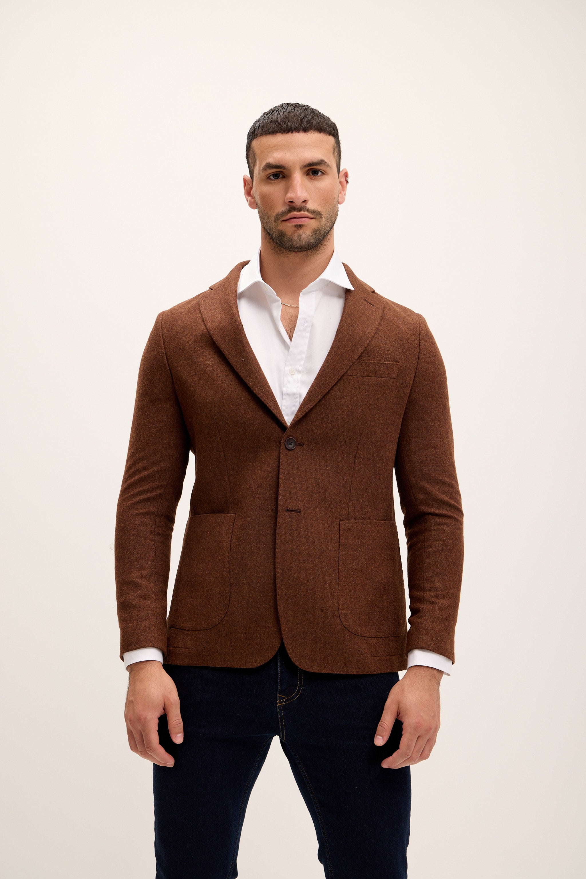 Tailored Fit Patch Pocket Jacket in Wool - Brick