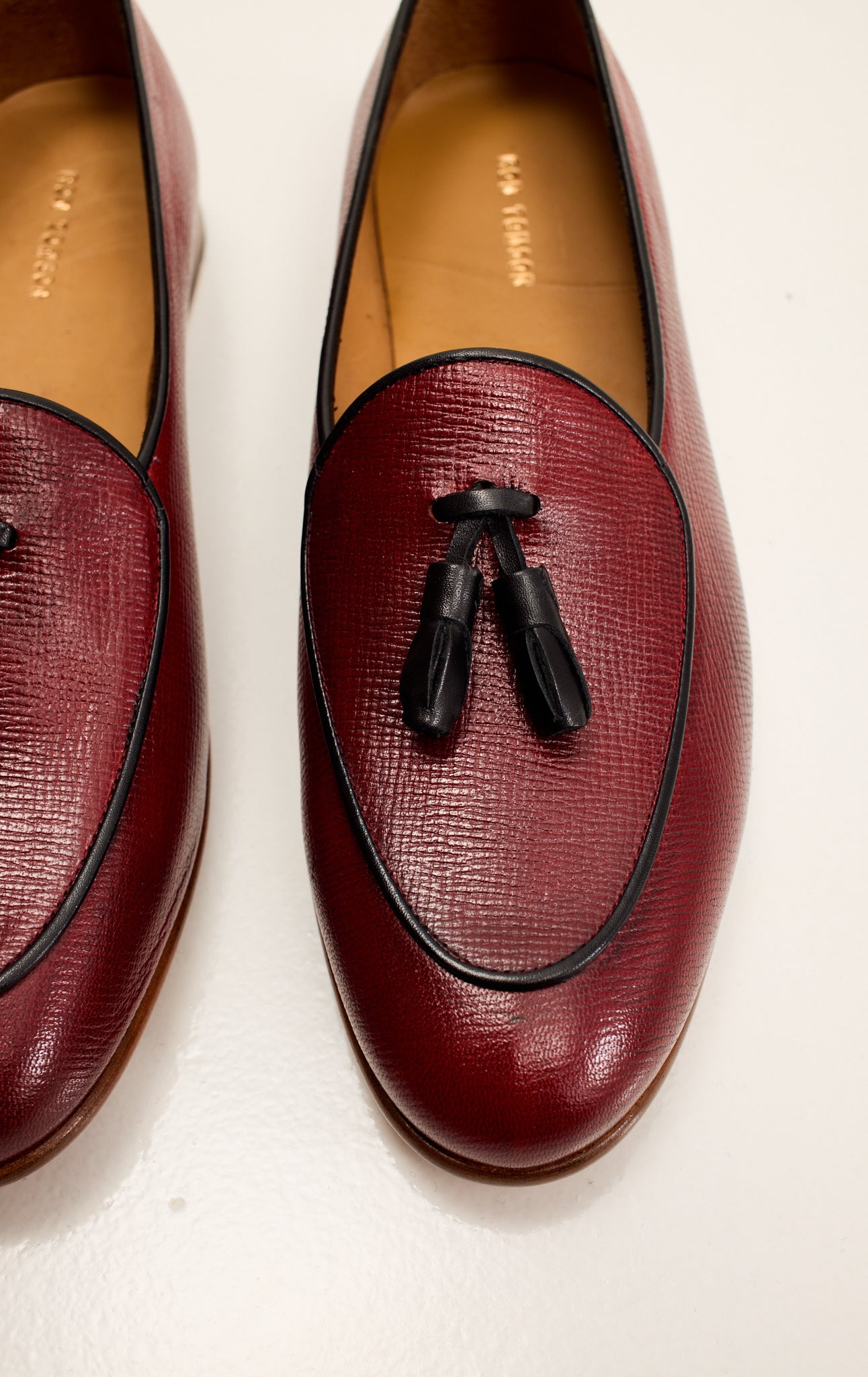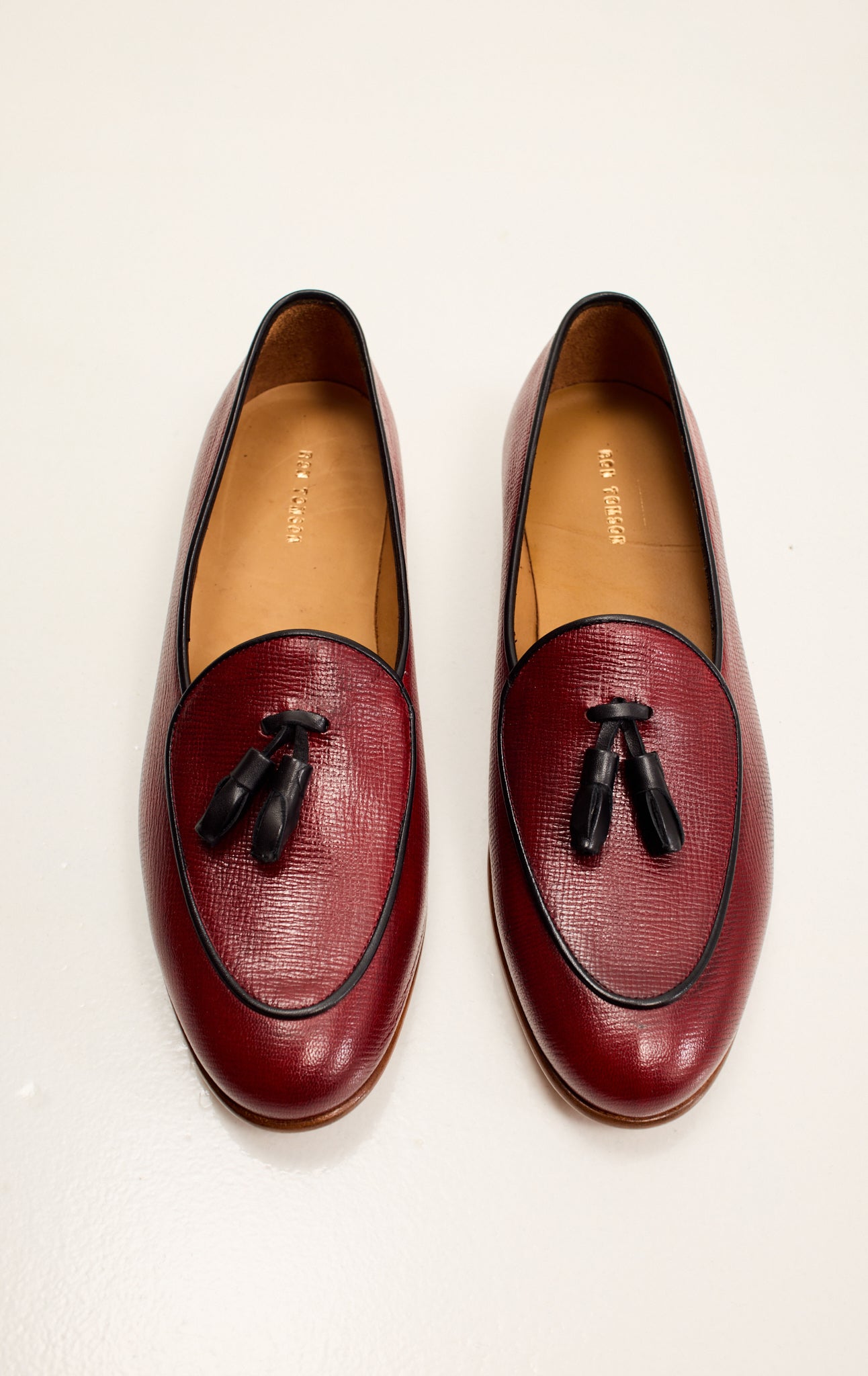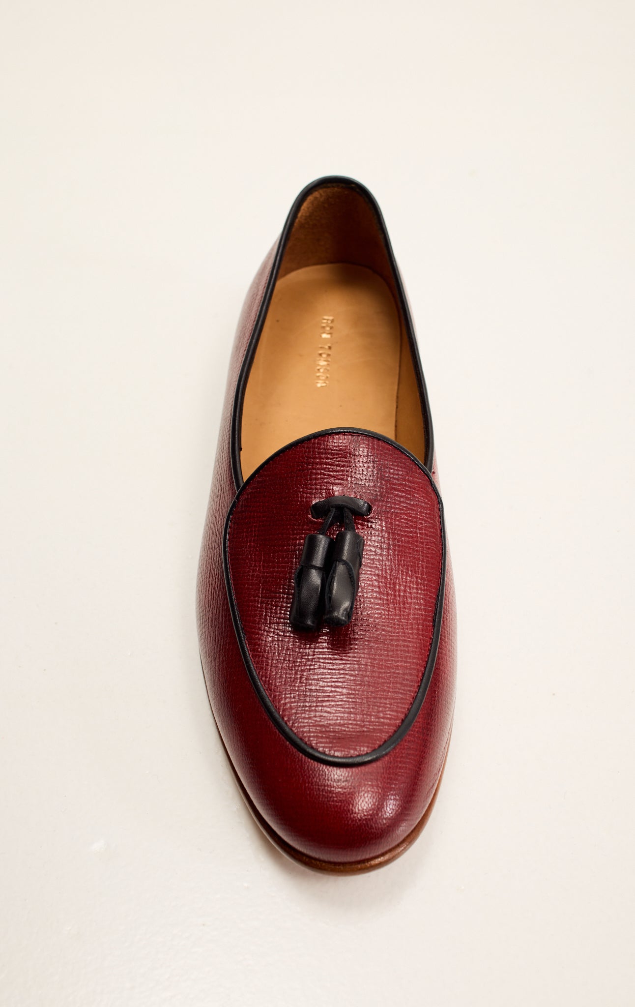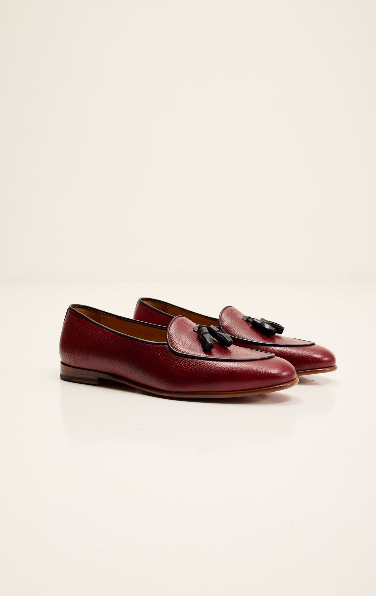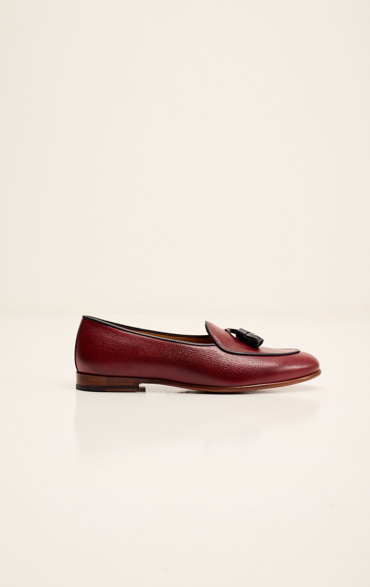 Elevate your style with the Tassel Loafer, a masterpiece handcrafted from premium leather with an Italian leather sole. Featuring a rounded fit over the forefoot and a slightly sculpted waist and heel, this shoe offers a sleek silhouette and exceptional comfort. Finished with twin tassels that add movement and distinctive character, it’s perfect for both formal occasions and sophisticated casual wear.