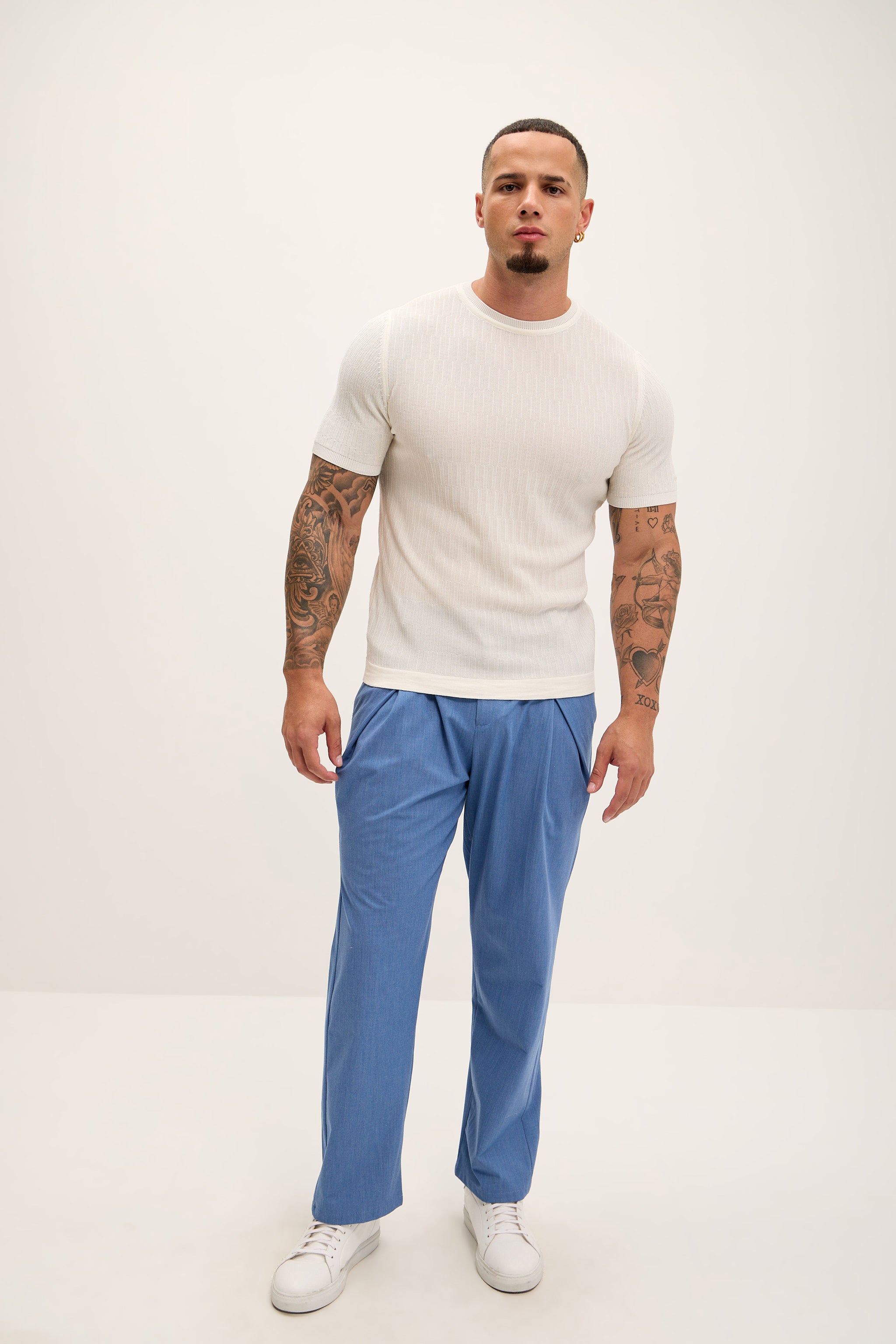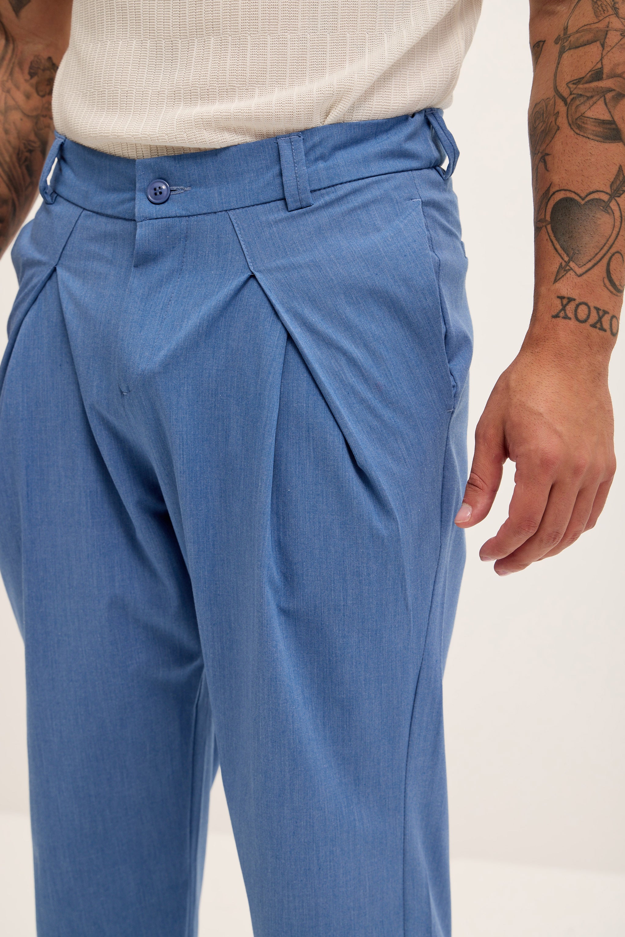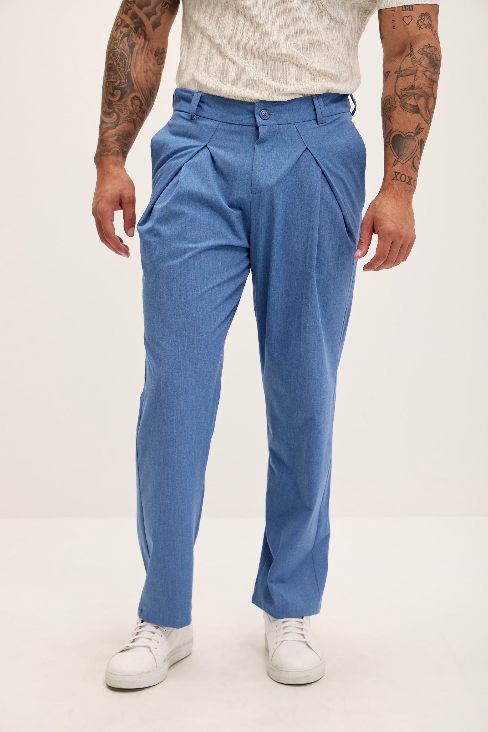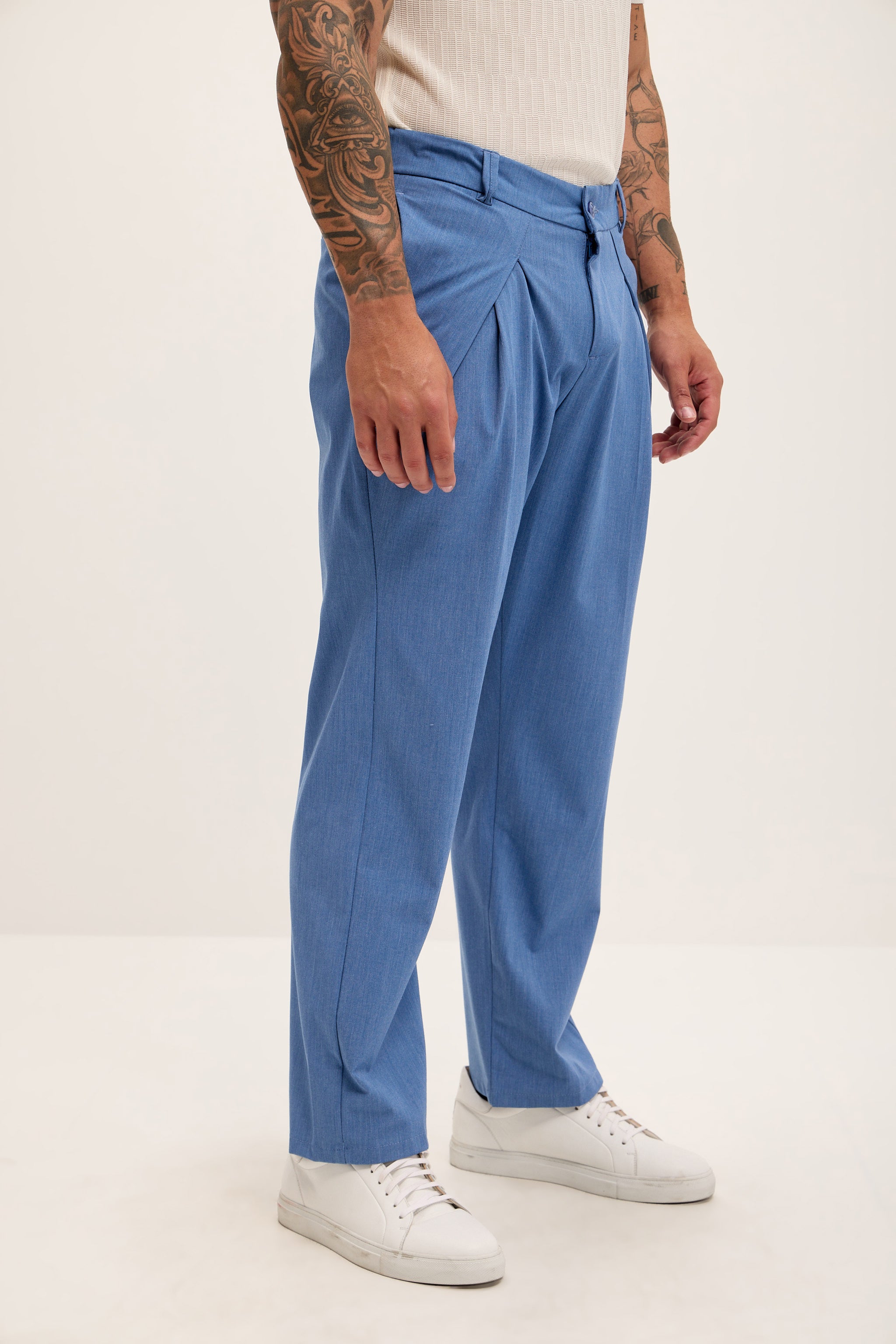 Pantalon décontracté à plis et rabat sur le devant - Bleu