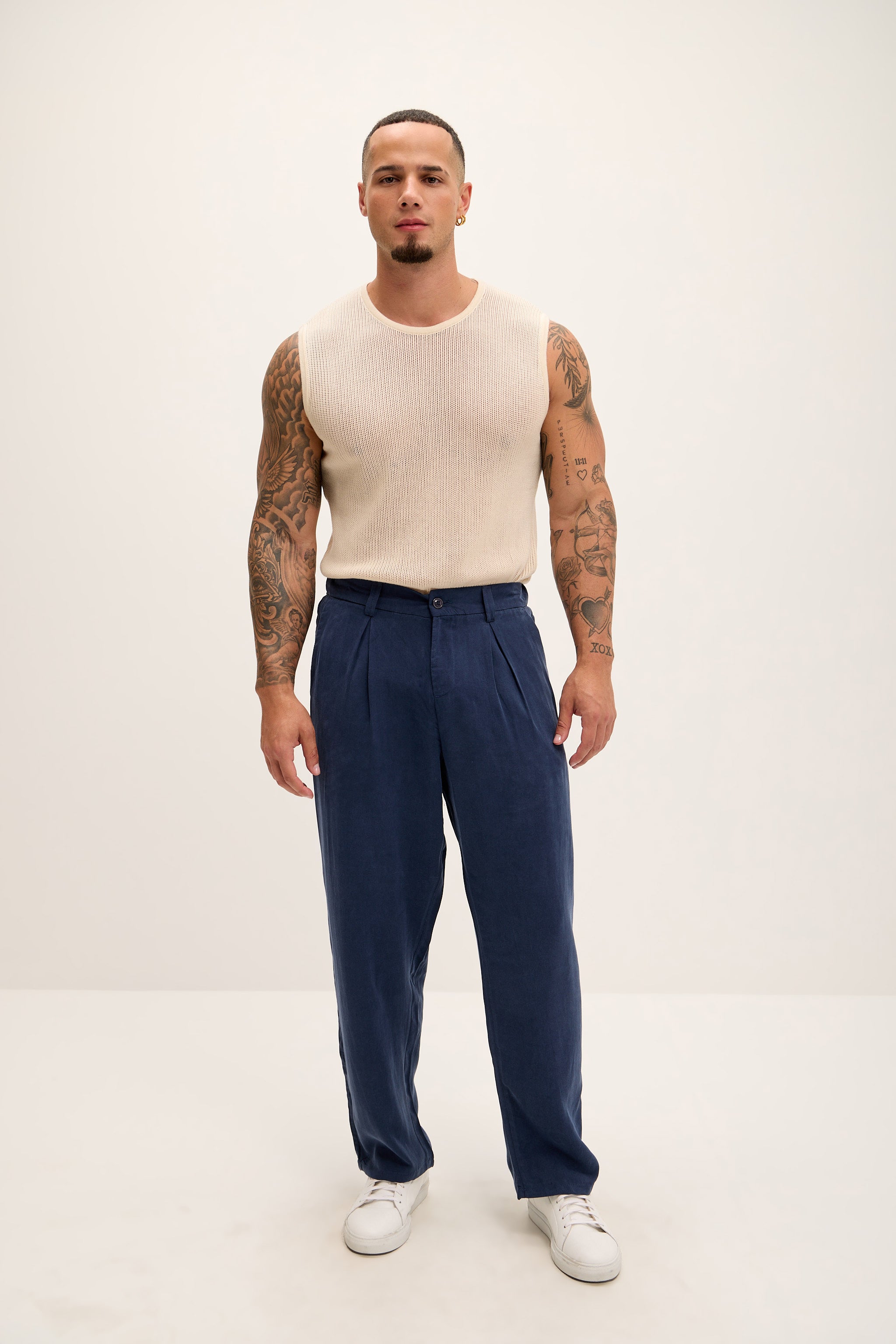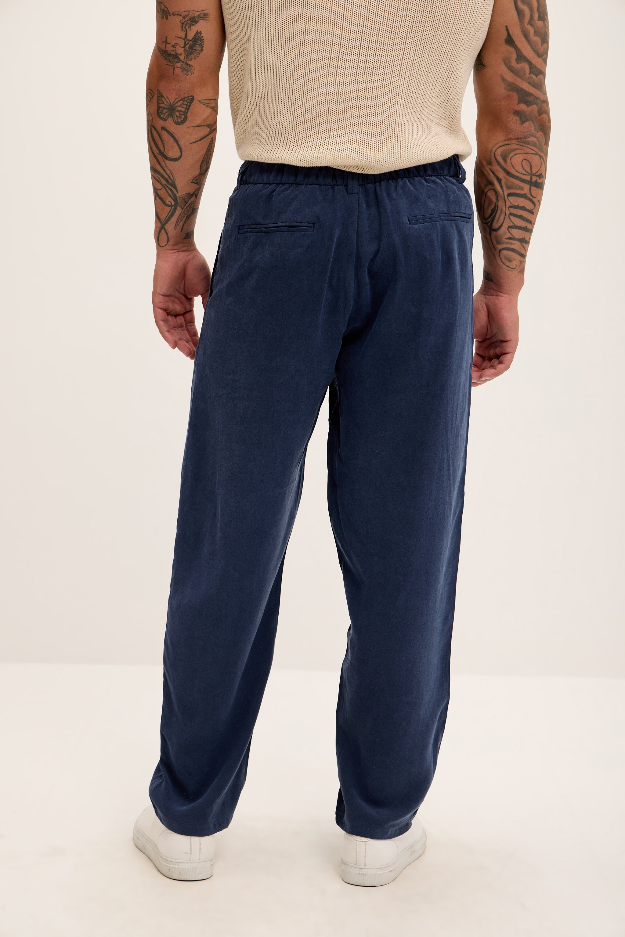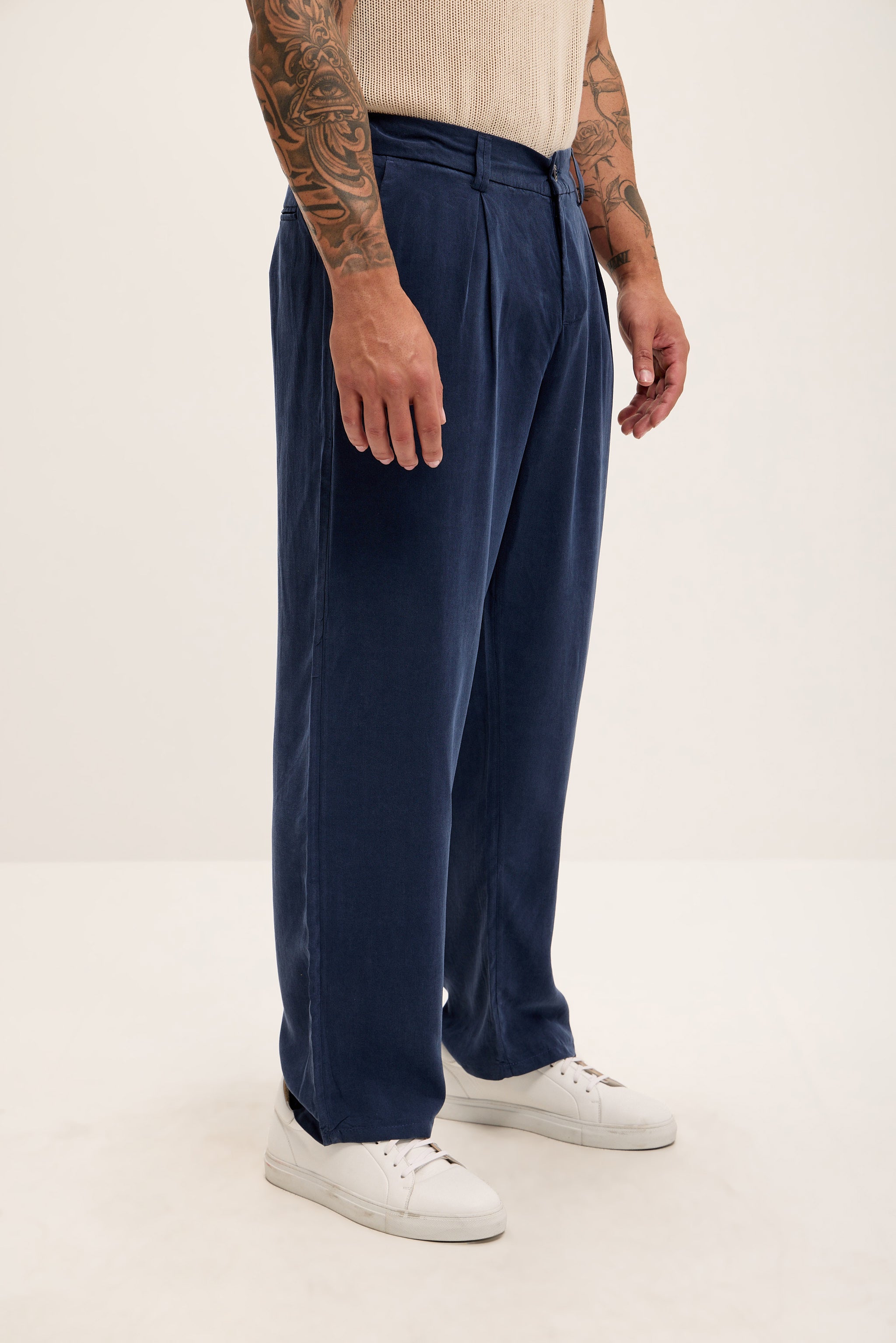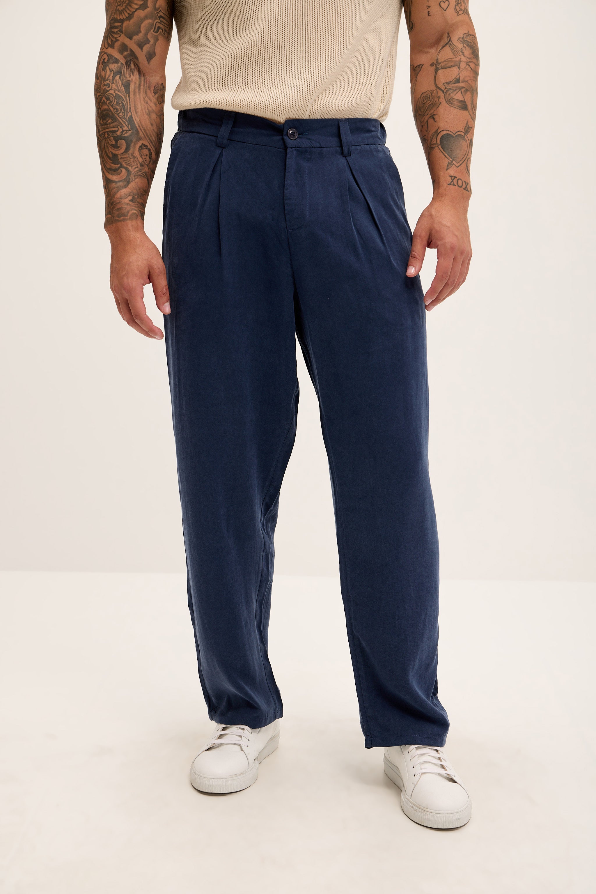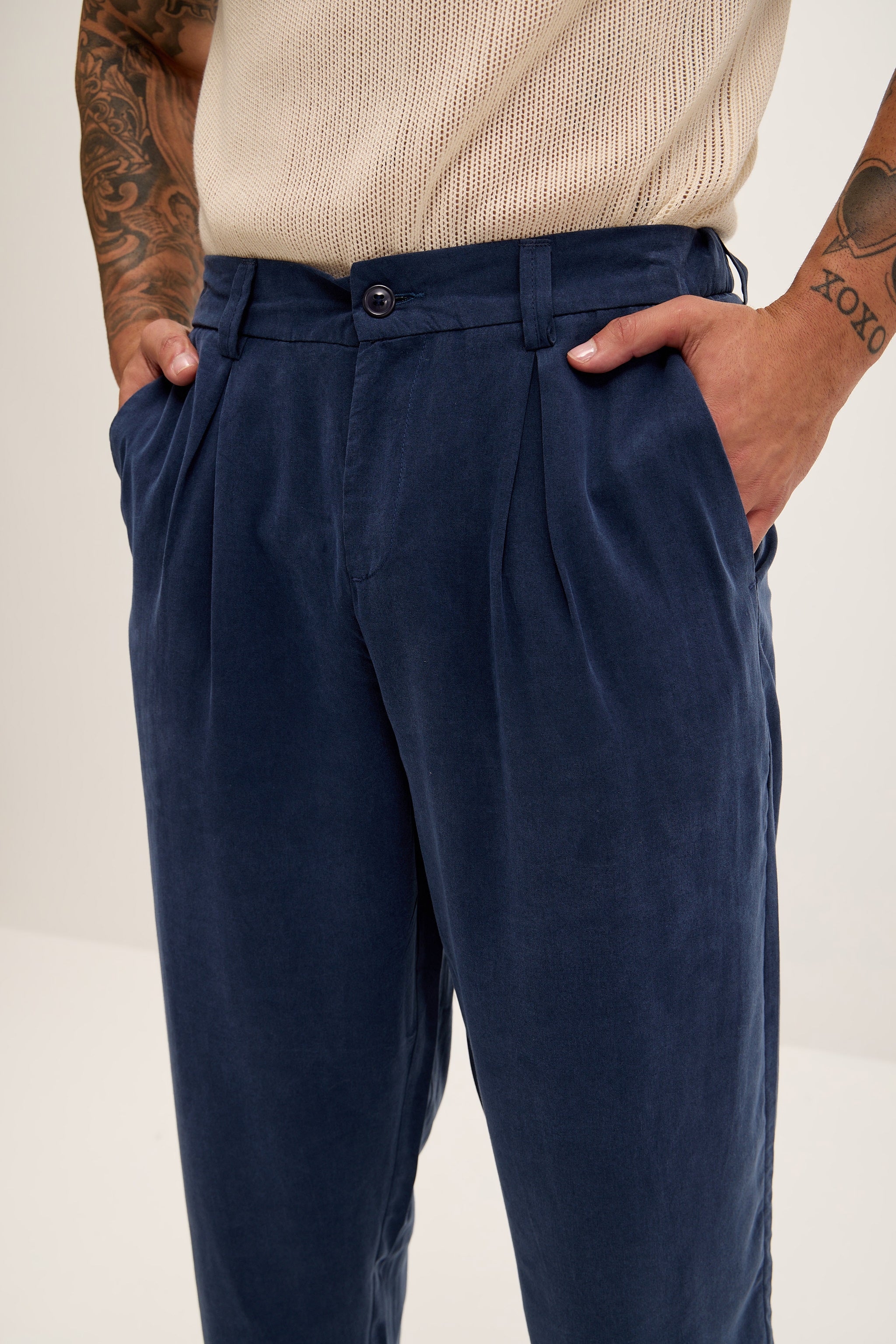 Pantalon plissé décontracté et léger - Bleu marine