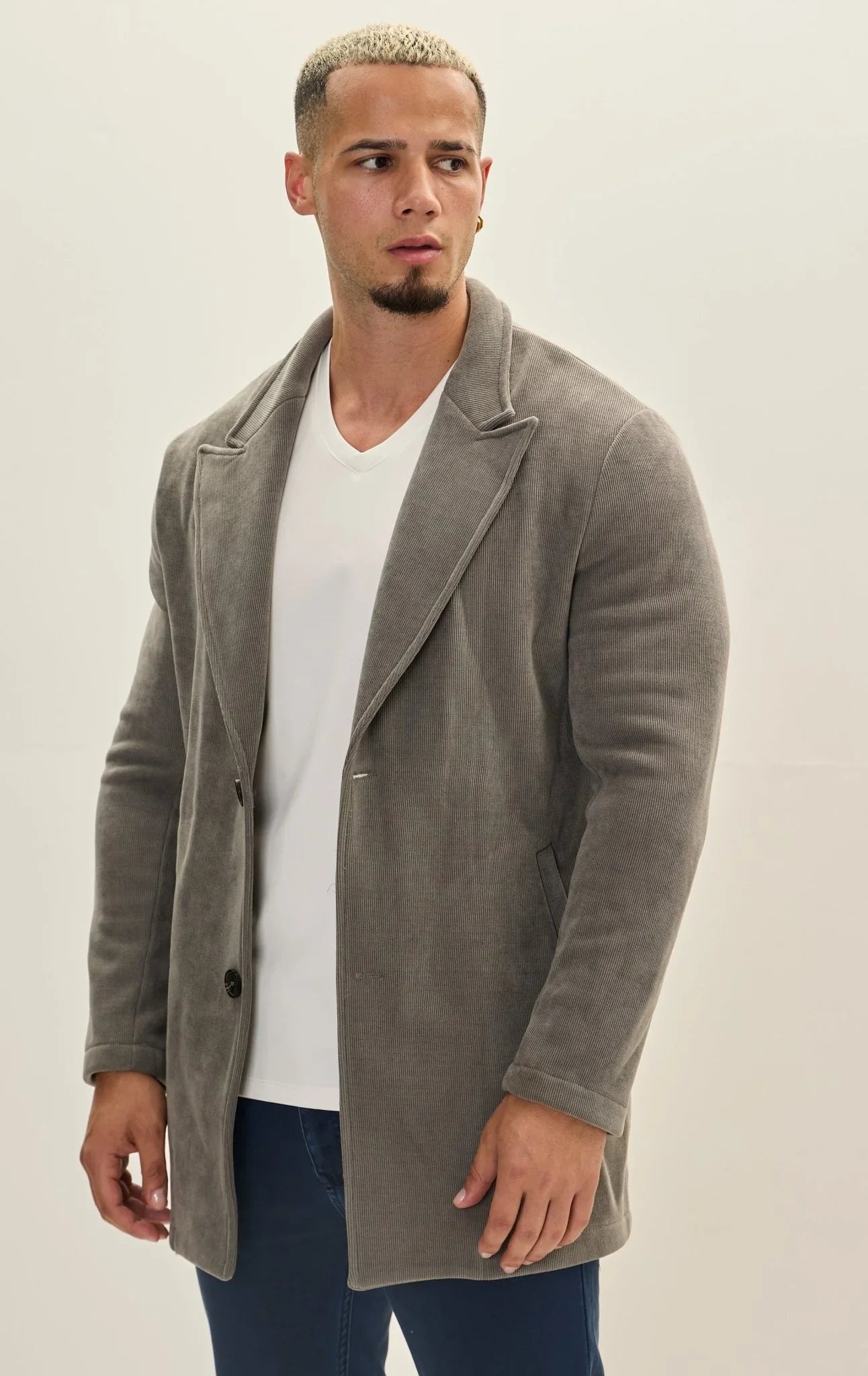 Veste en velours côtelé gris à boutons, coupe décontractée