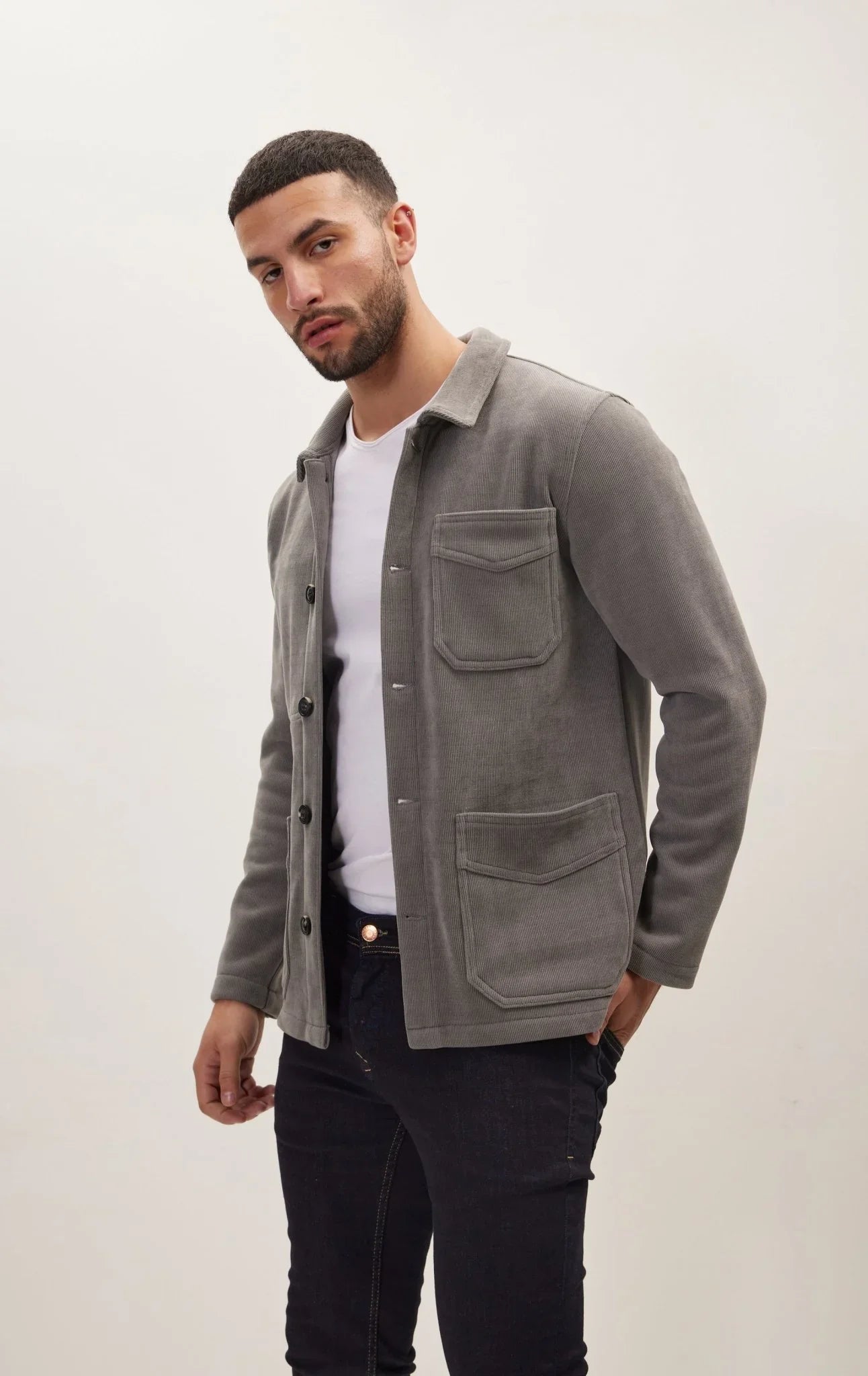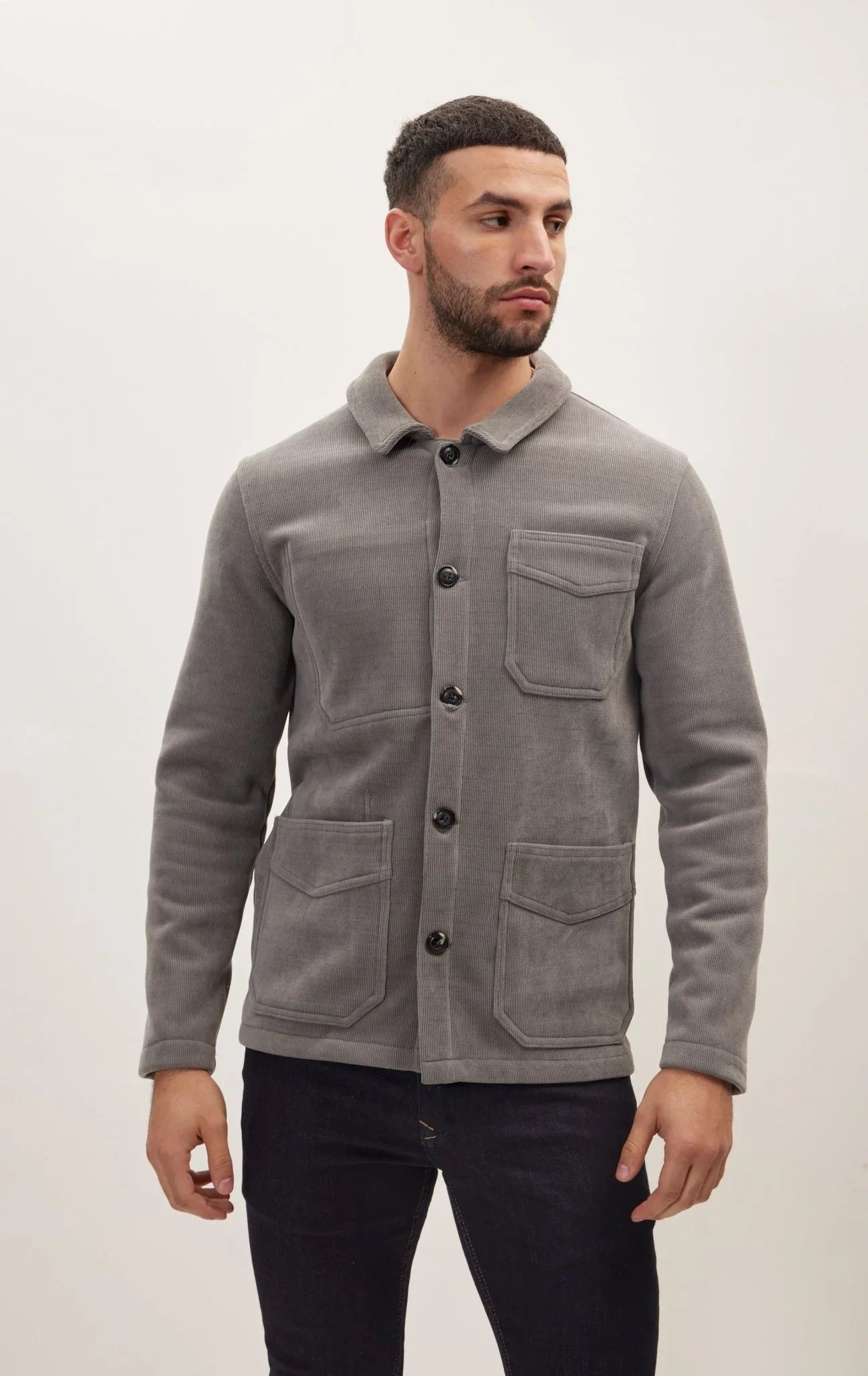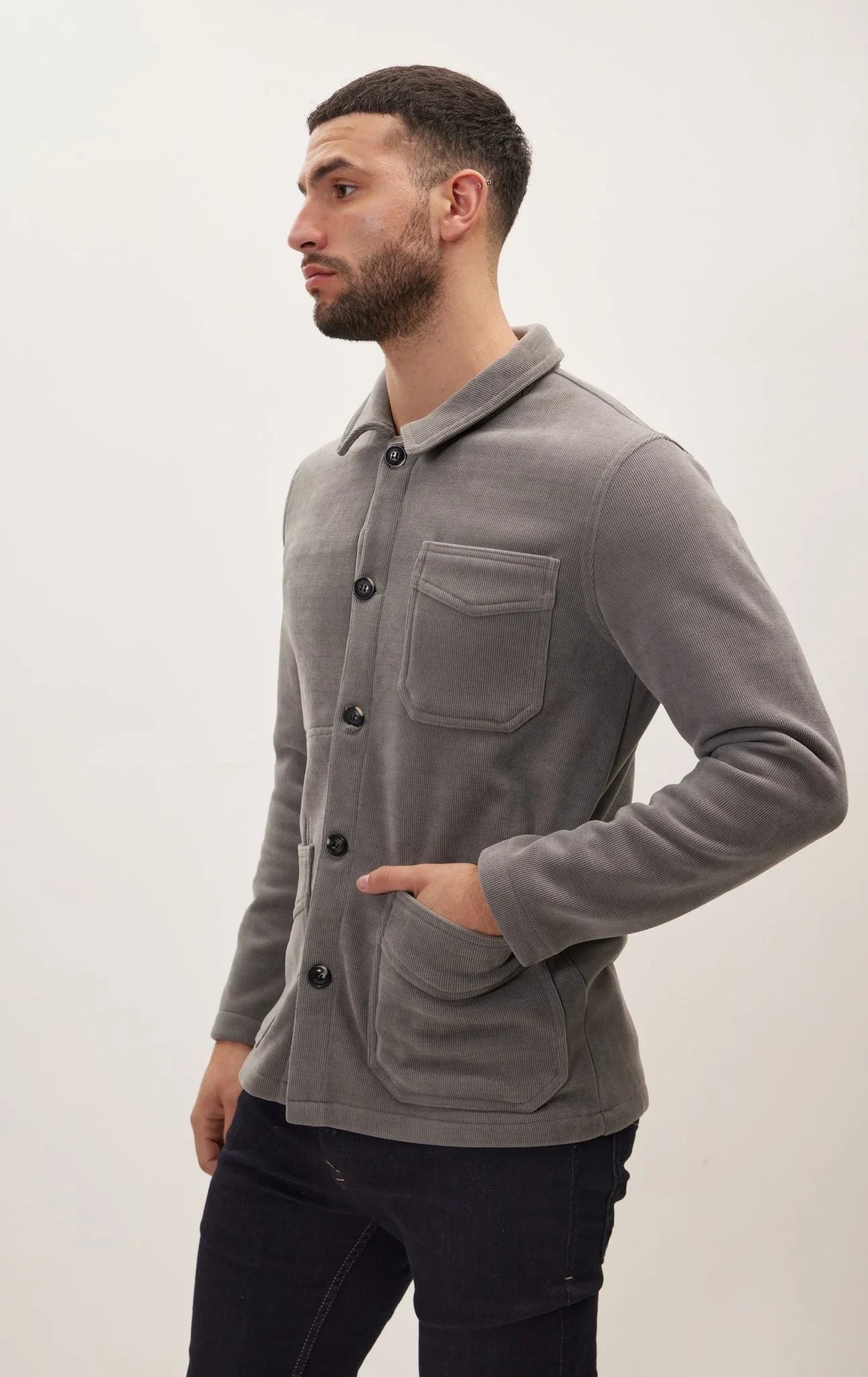 Veste en velours côtelé gris à boutons, coupe décontractée