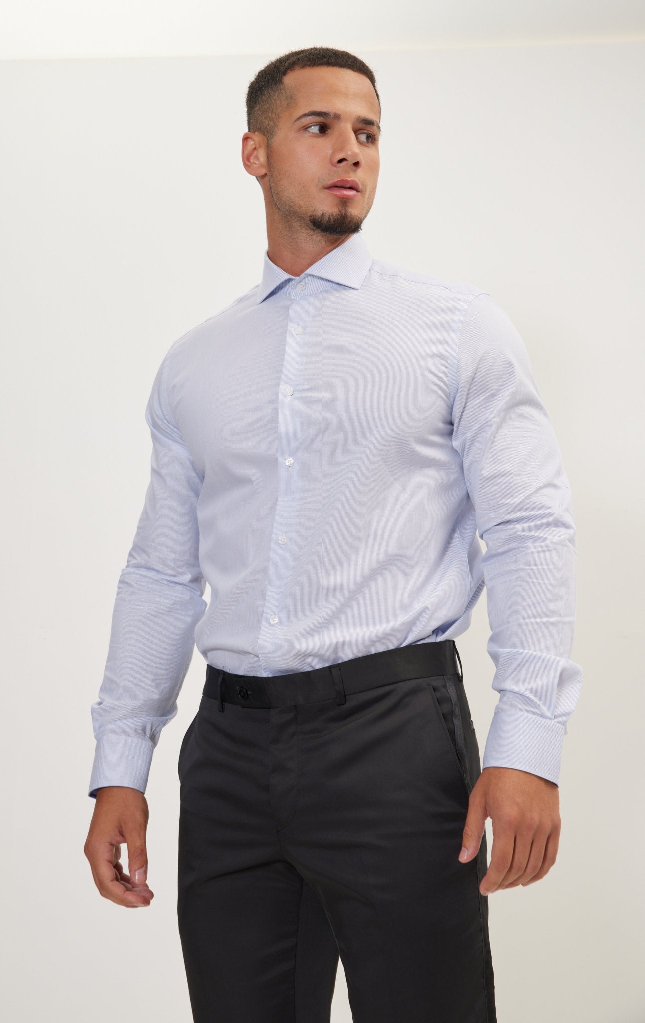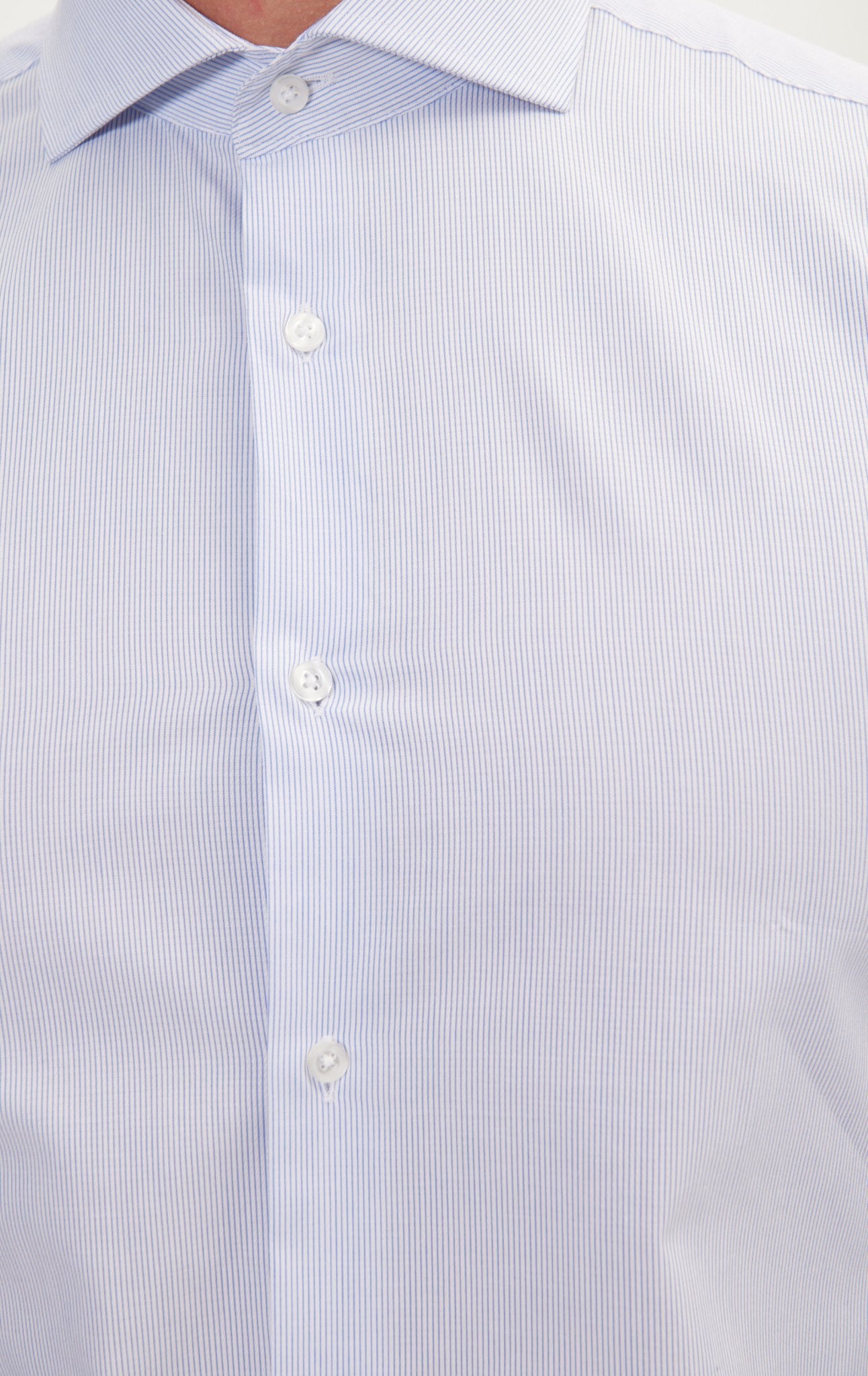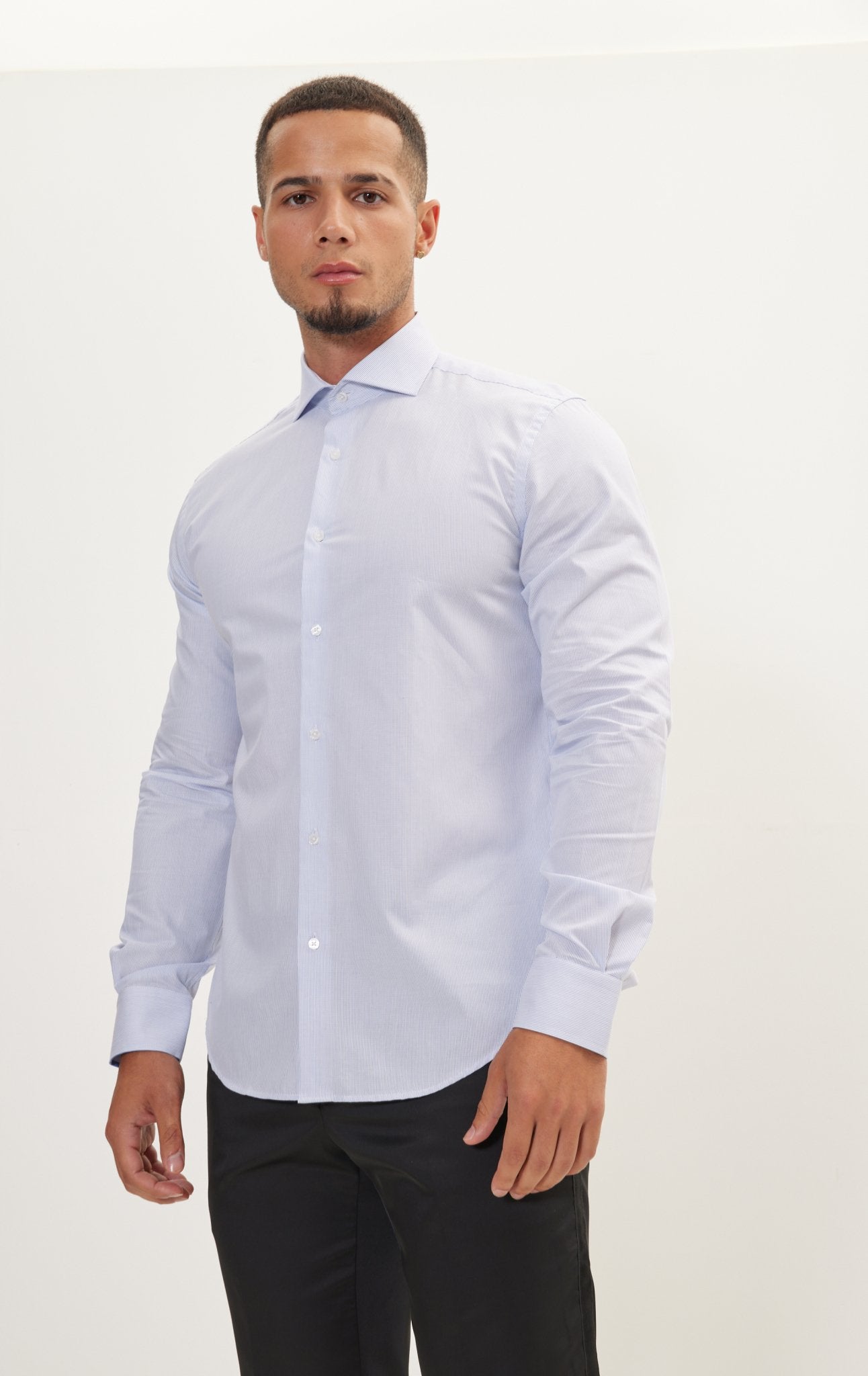 N° AN4902 CHEMISE ROBE EN PUR COTON AVEC PATTE FRANÇAISE COL LARGE - TWILL BLEU BLANC