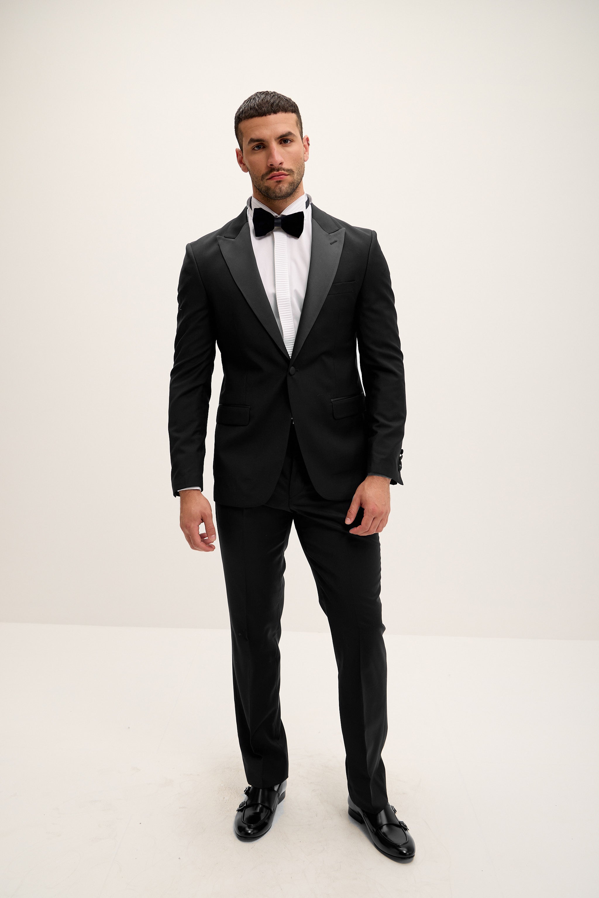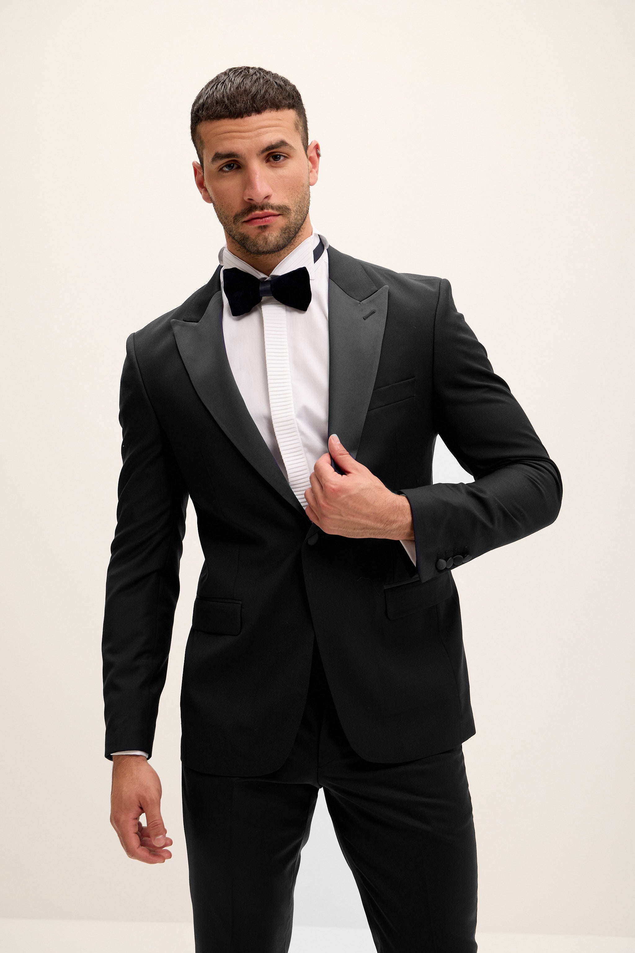 Smoking en laine à revers pointus et coupe ajustée - Noir
