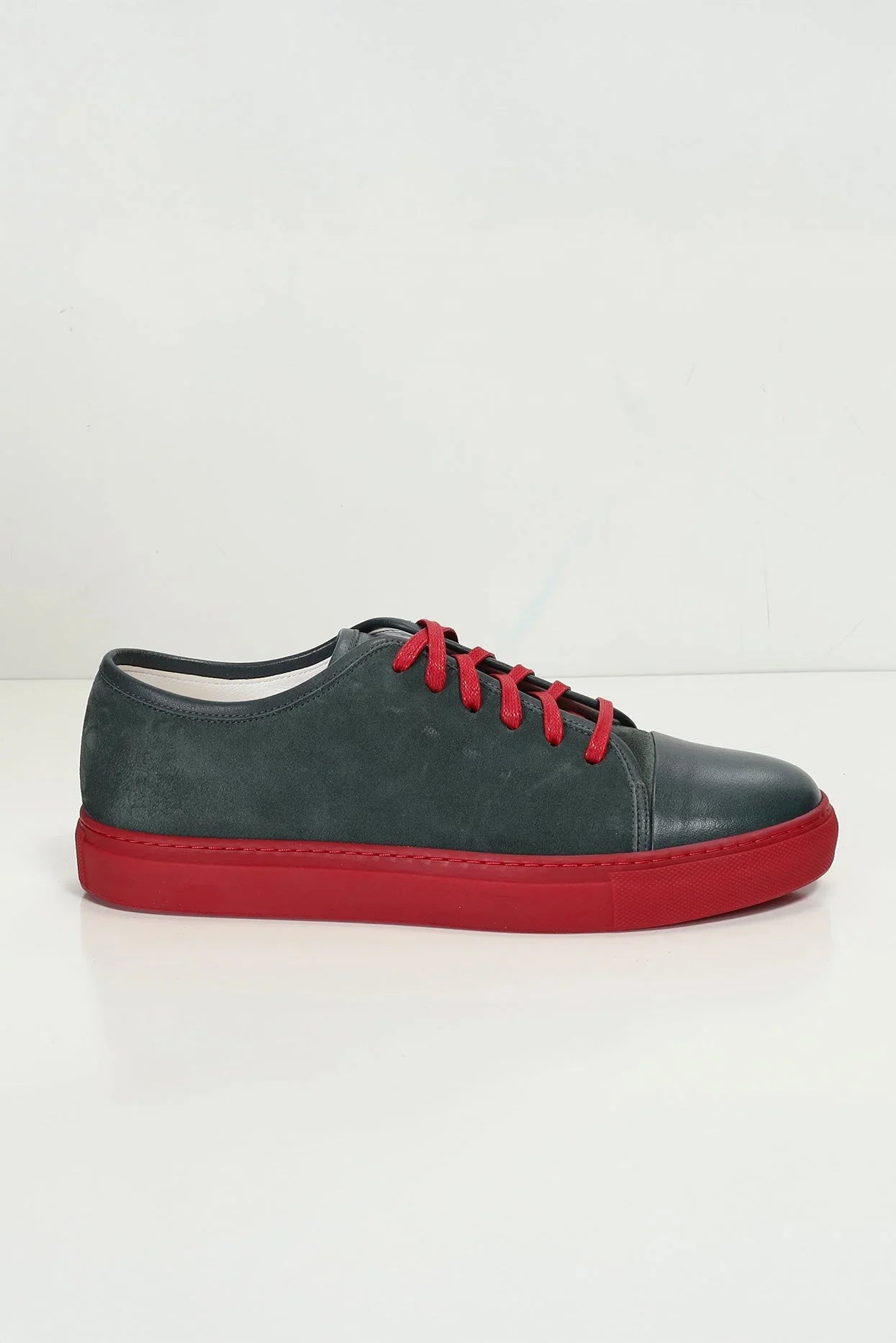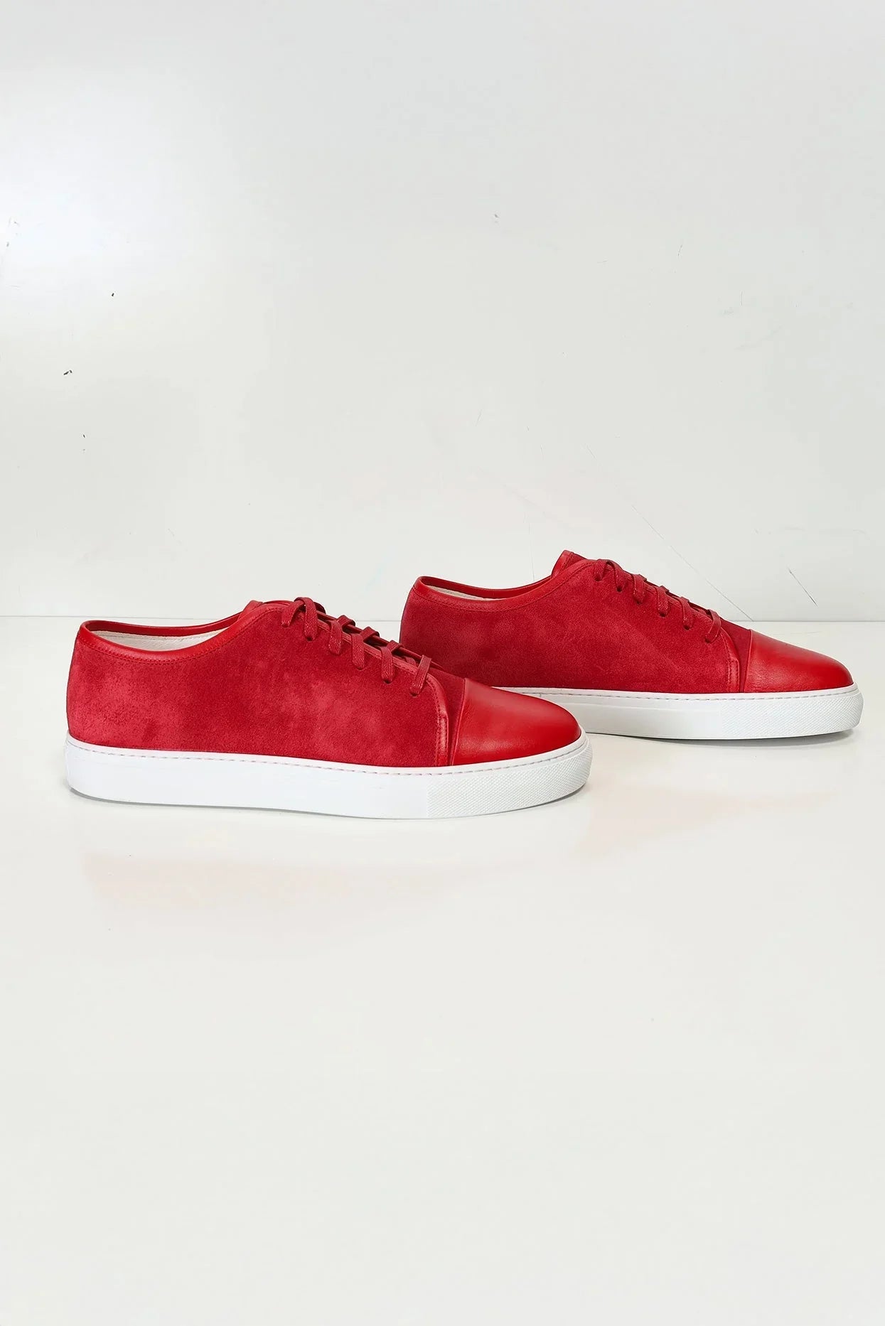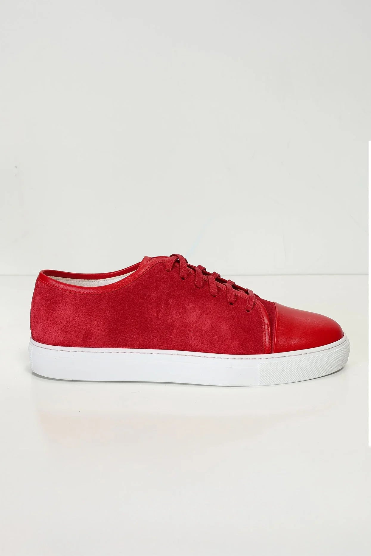 Leather and Suede Court Sneakers - Red White