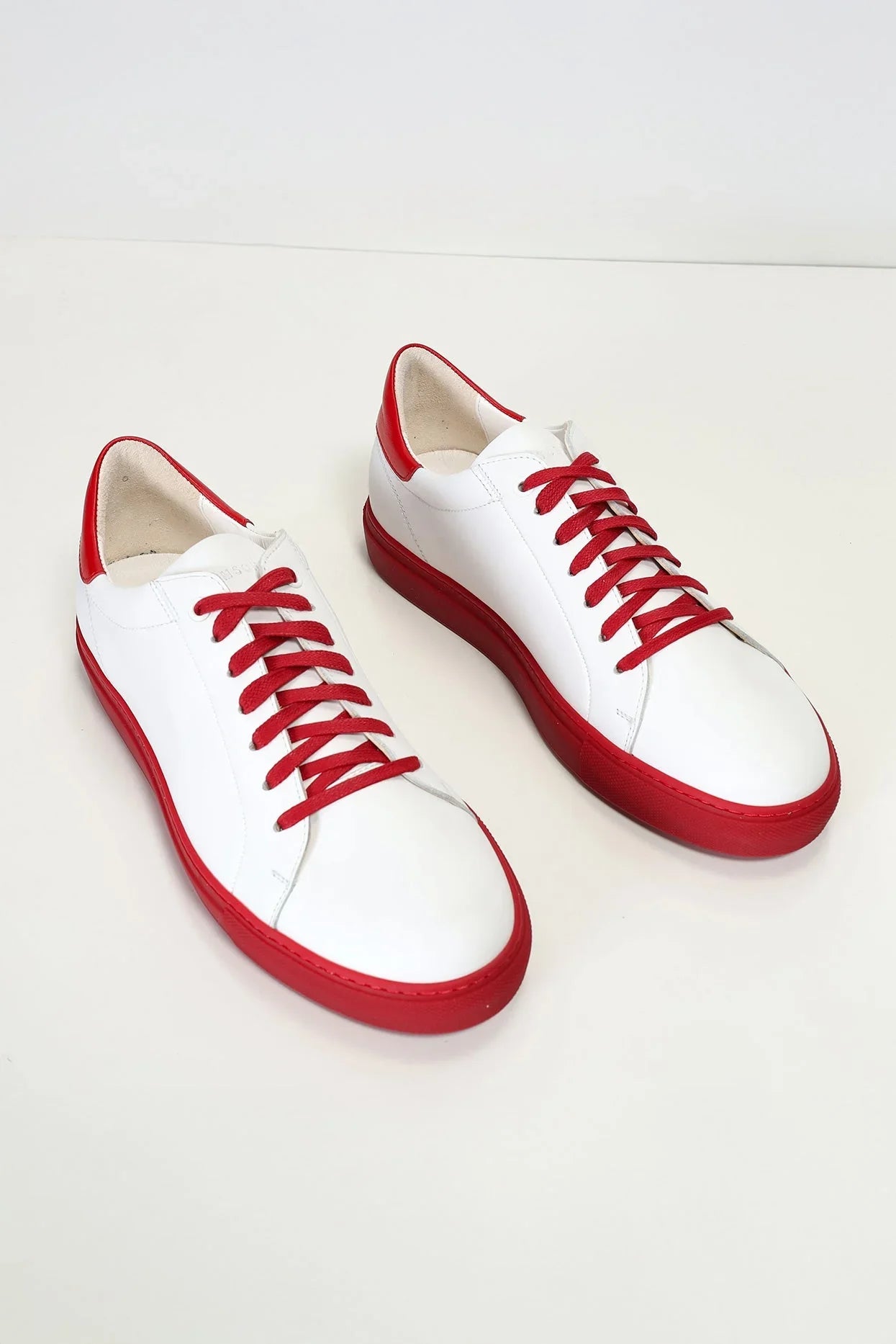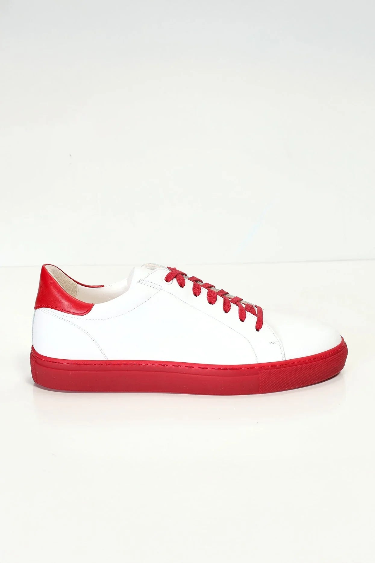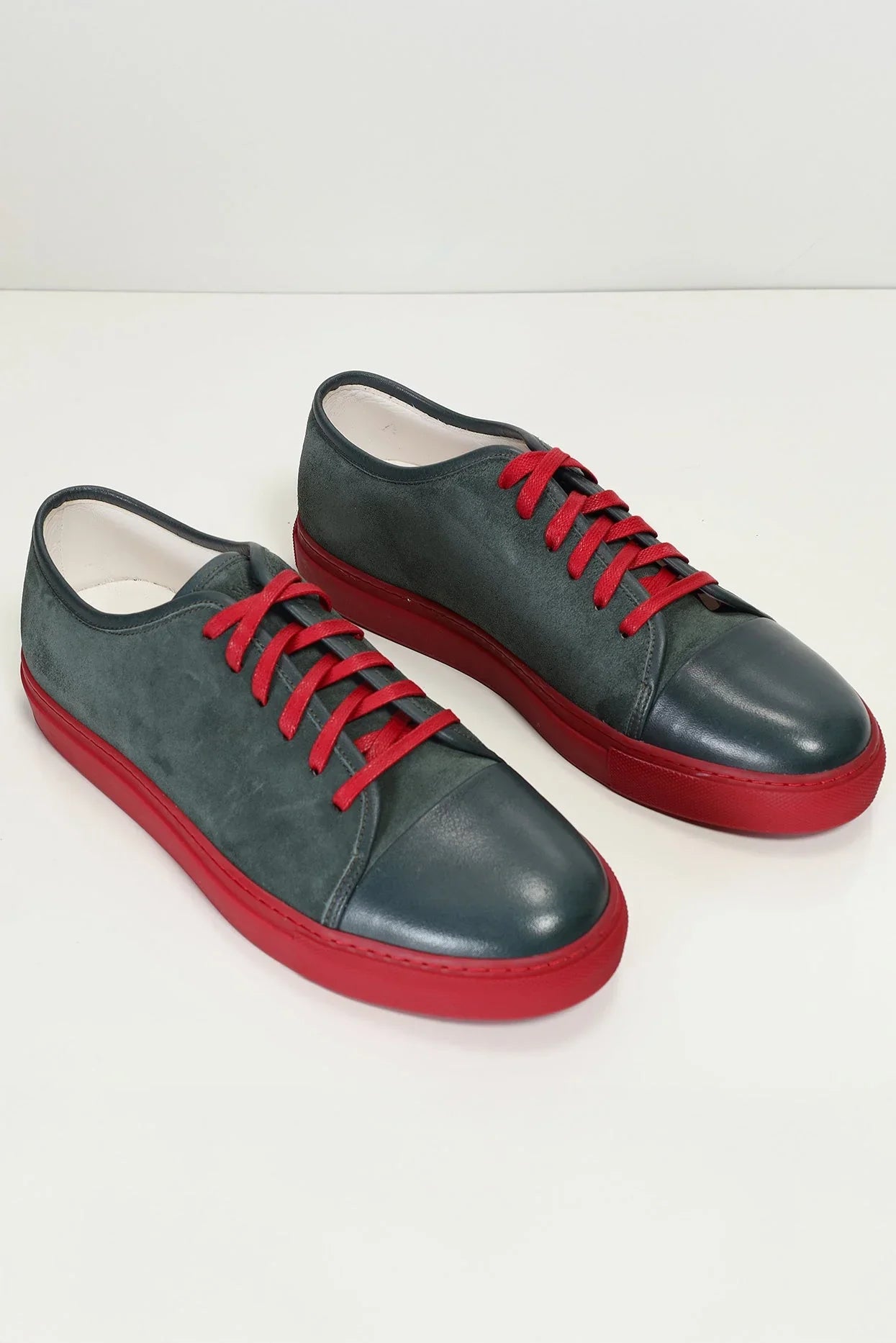Leather and Suede Court Sneakers - Red White