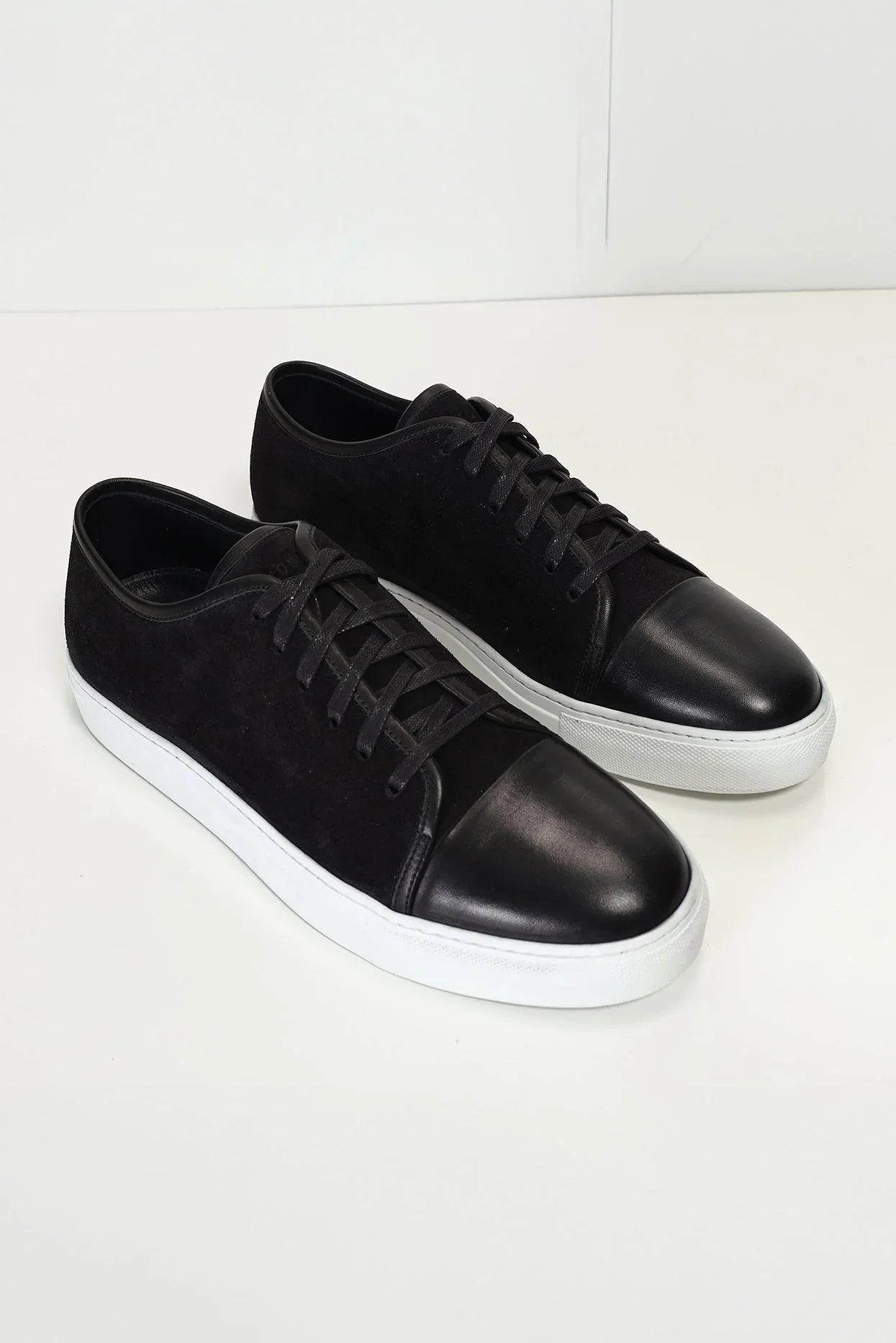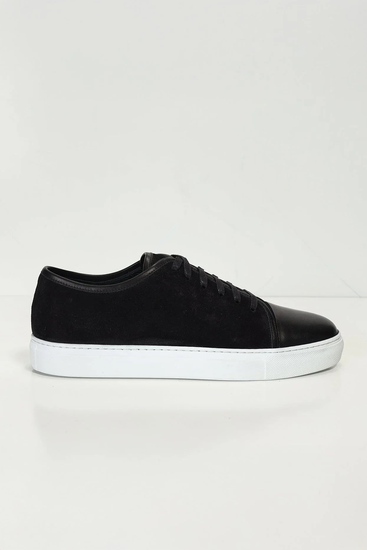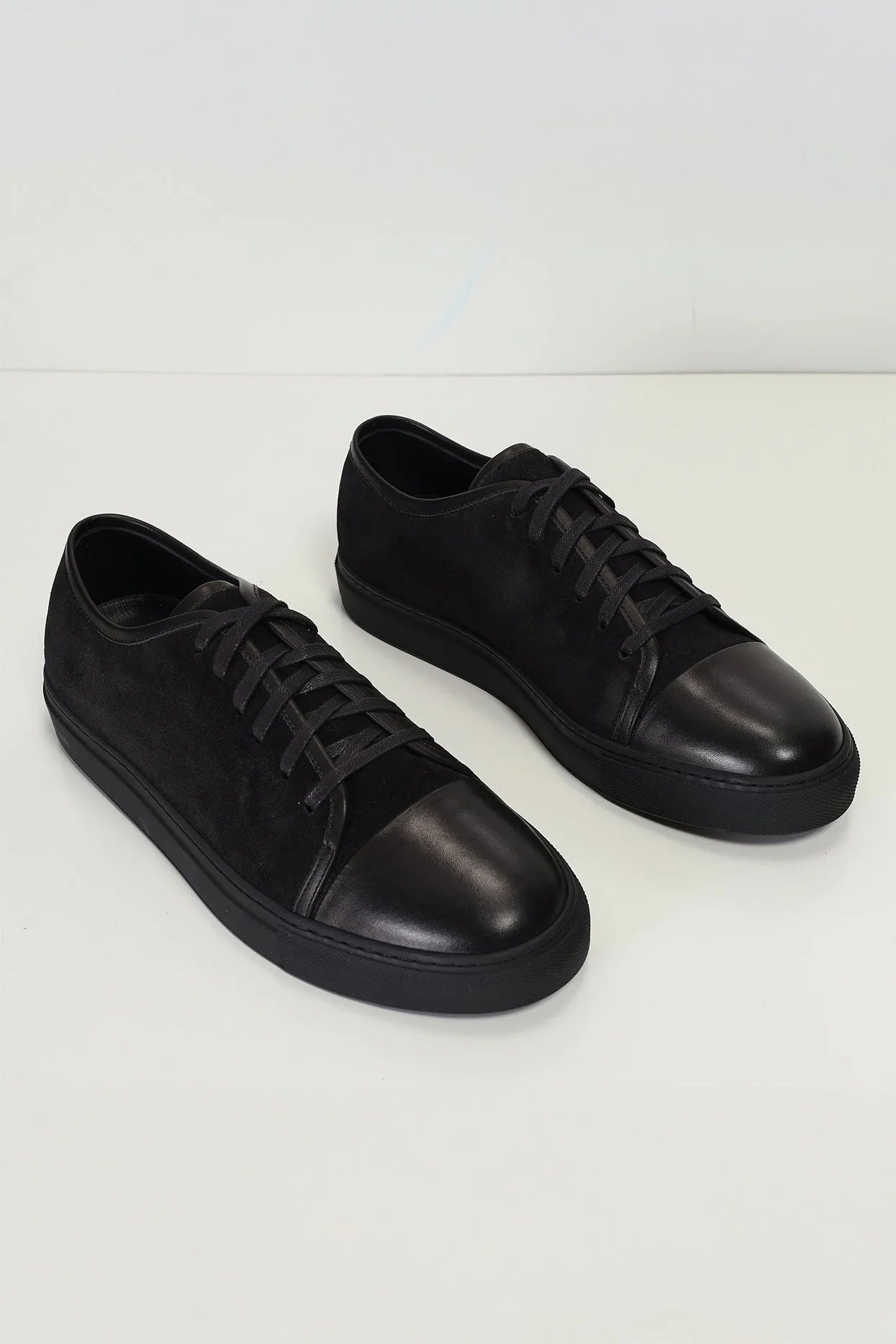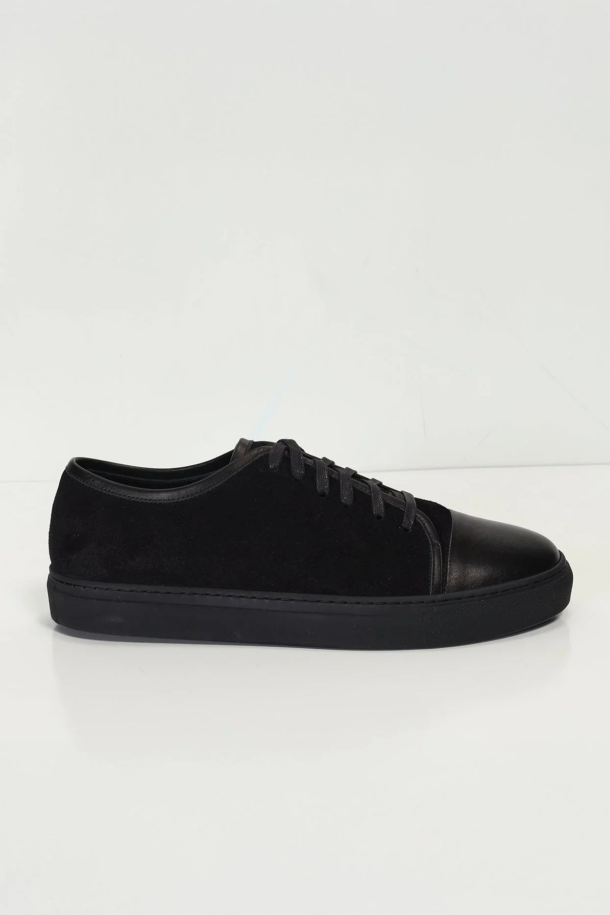Leather and Suede Court Sneakers - Black Black
