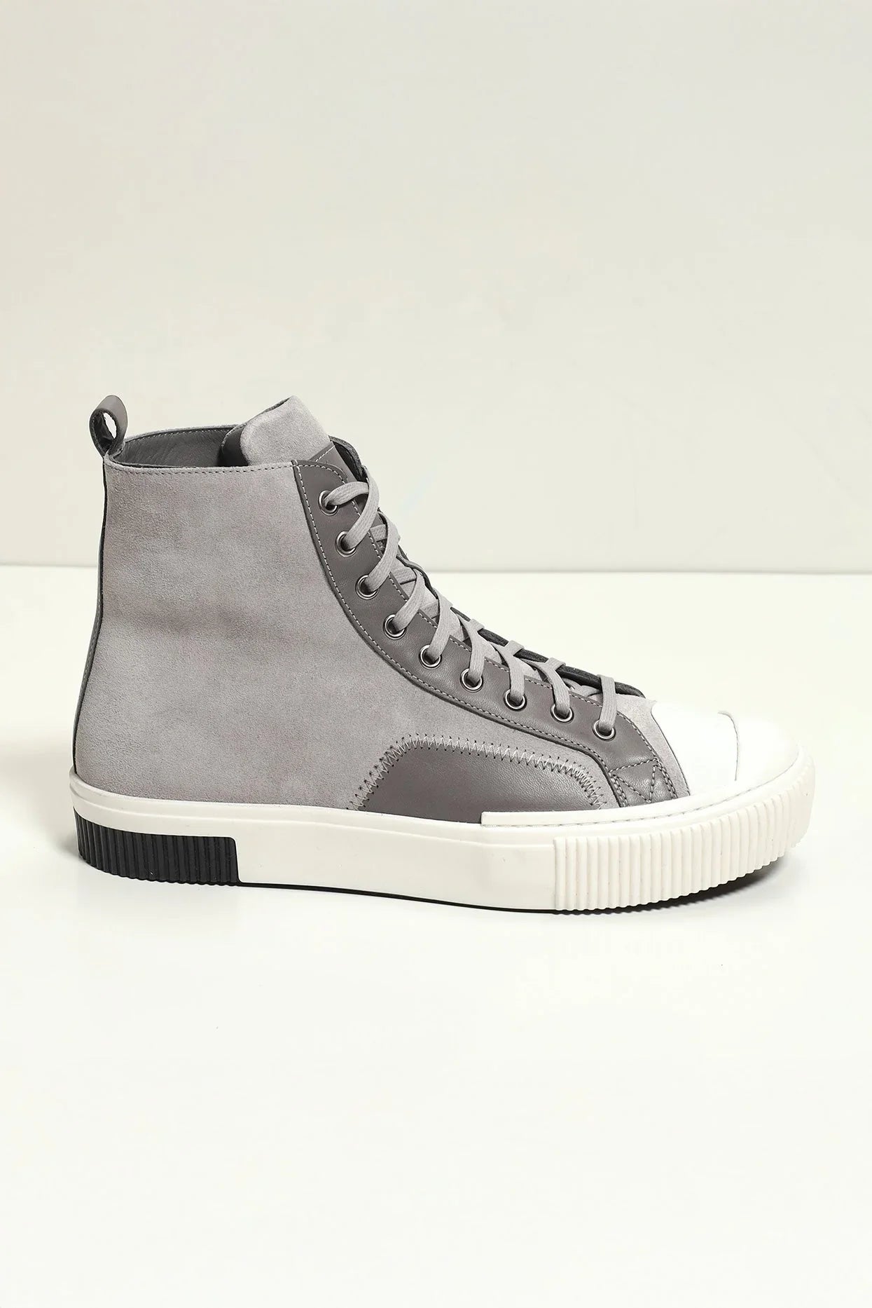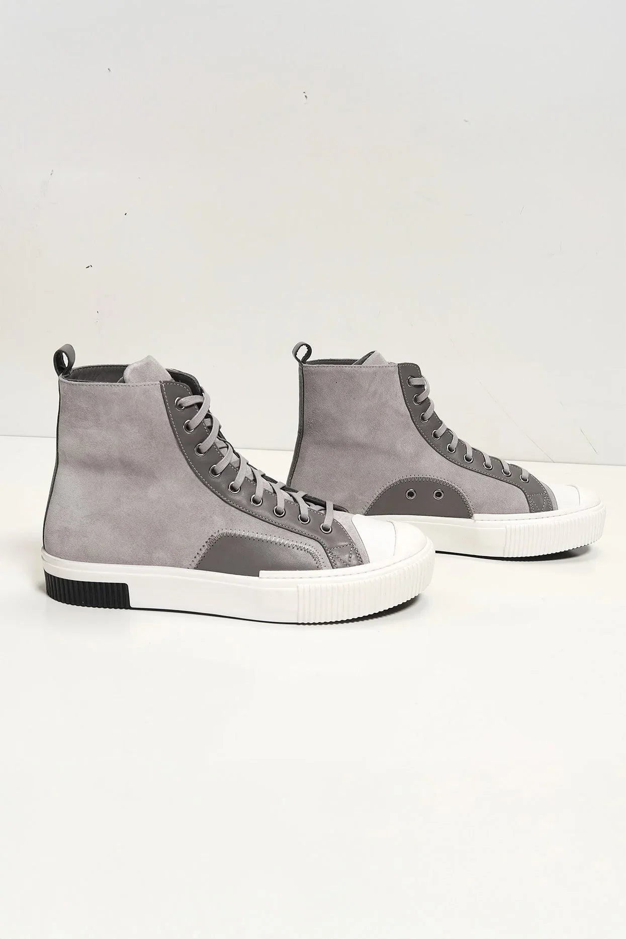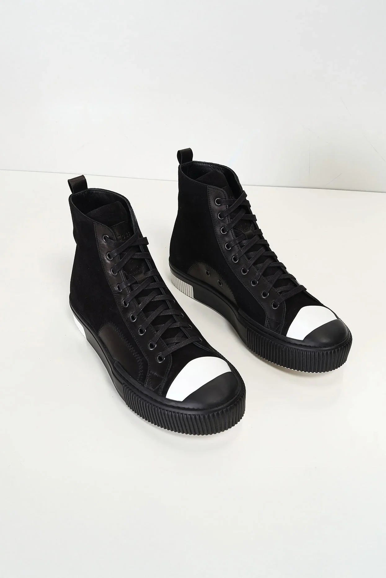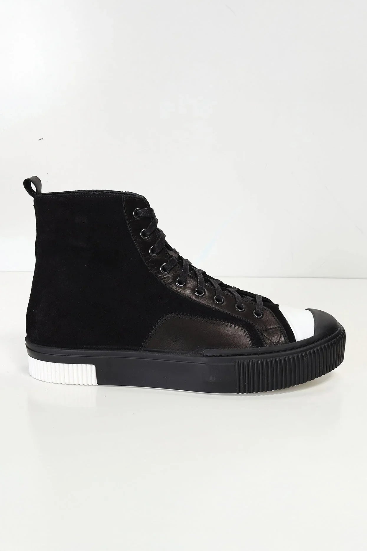 Leather and Suede Court Sneakers - Black Black
