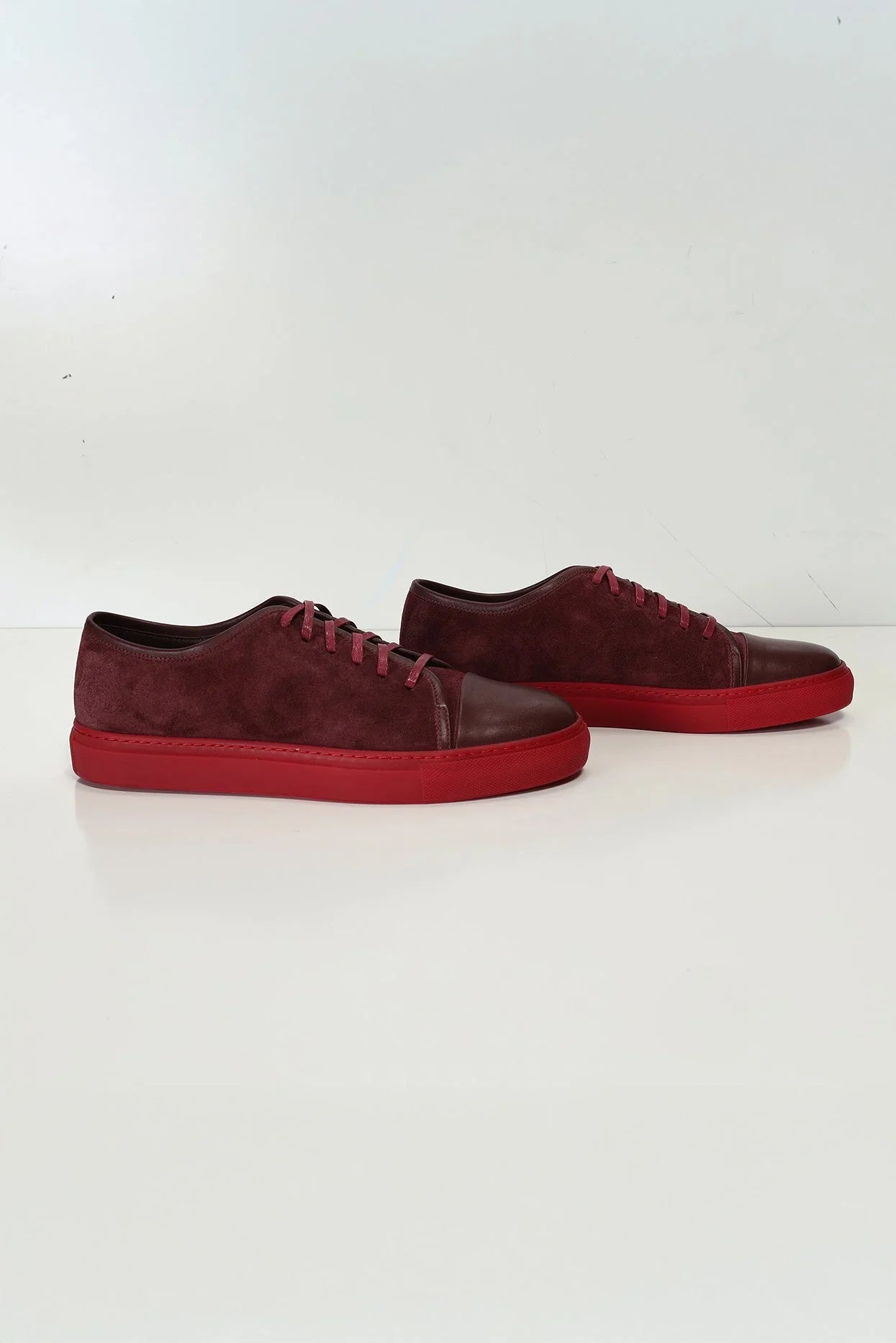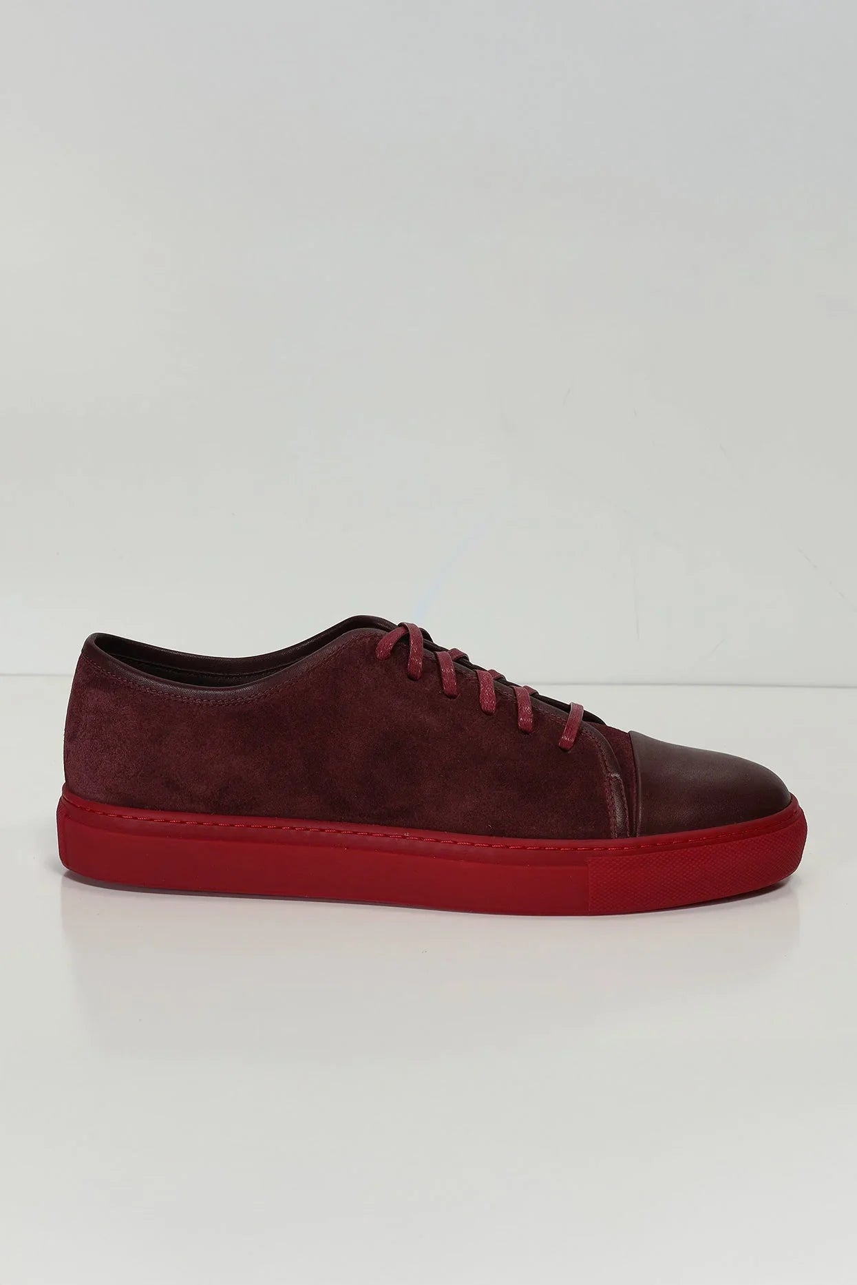 Leather and Suede Court Sneakers - Burgundy Red