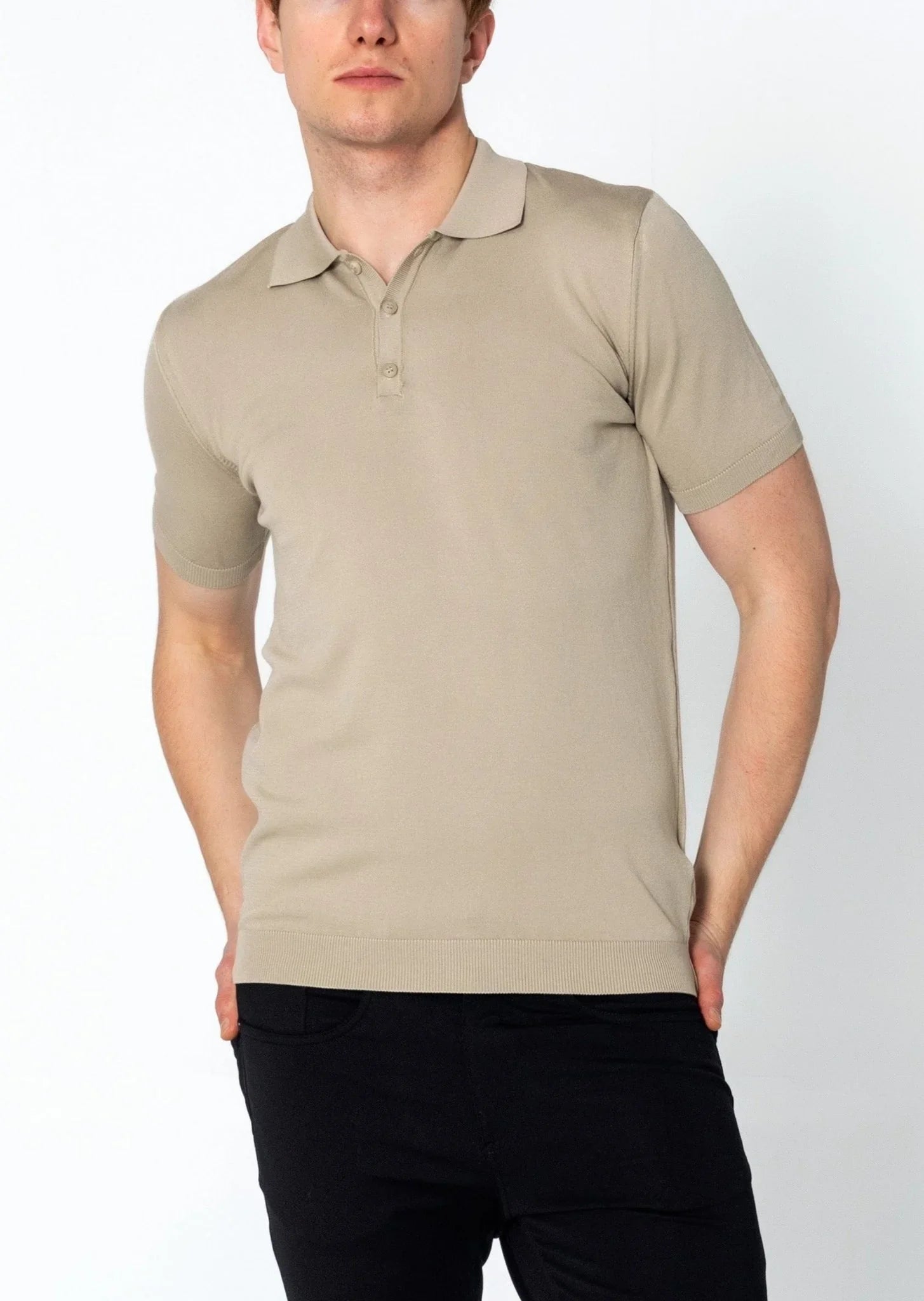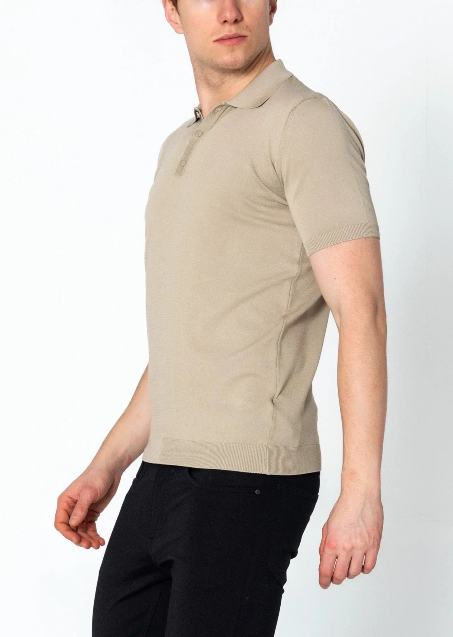 Lightweight Tonal-button Polo Tee - Dark Beige