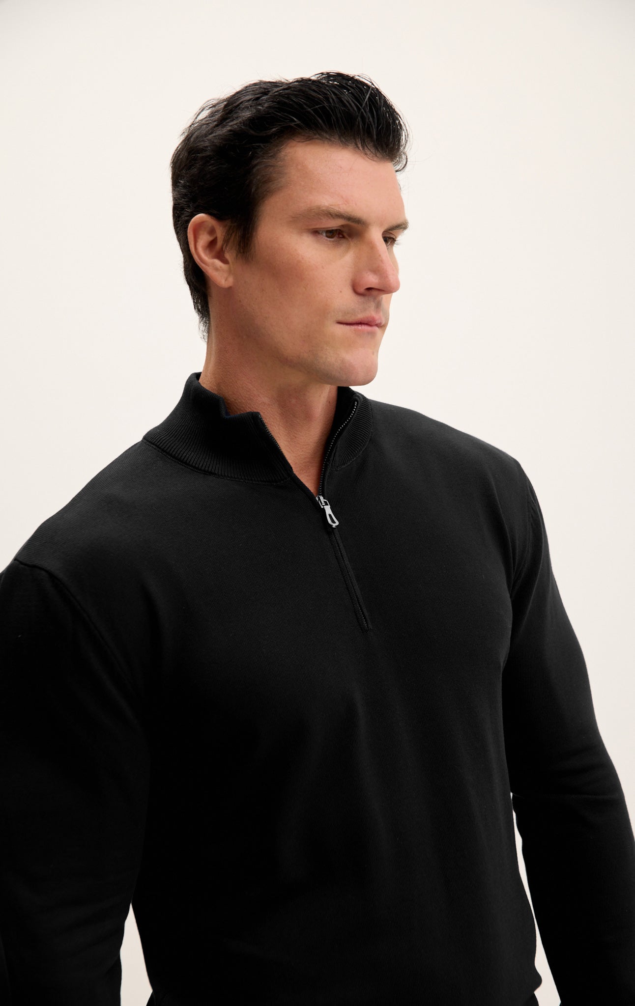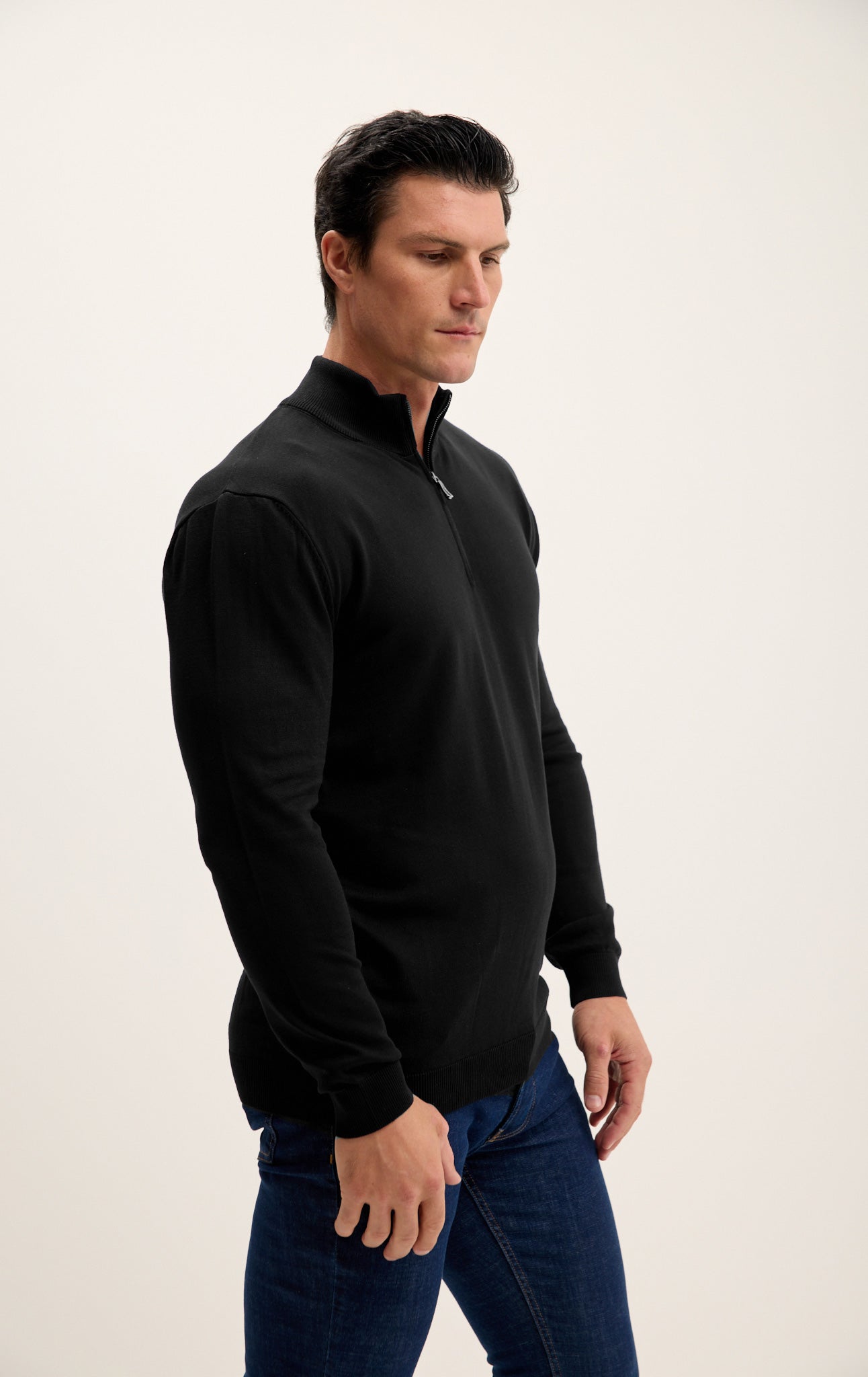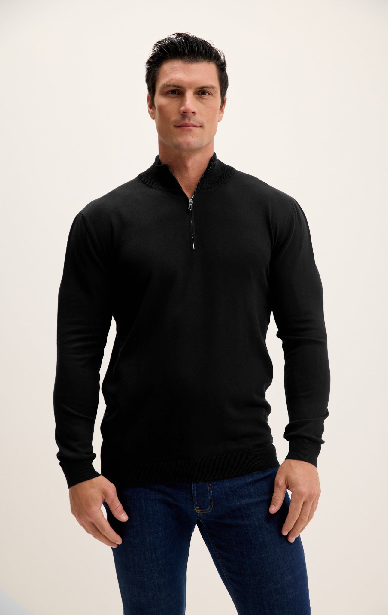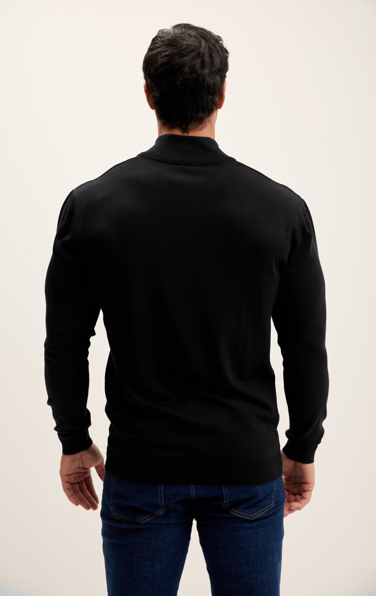 Zipper Closure Mock Neck Sweater - Black