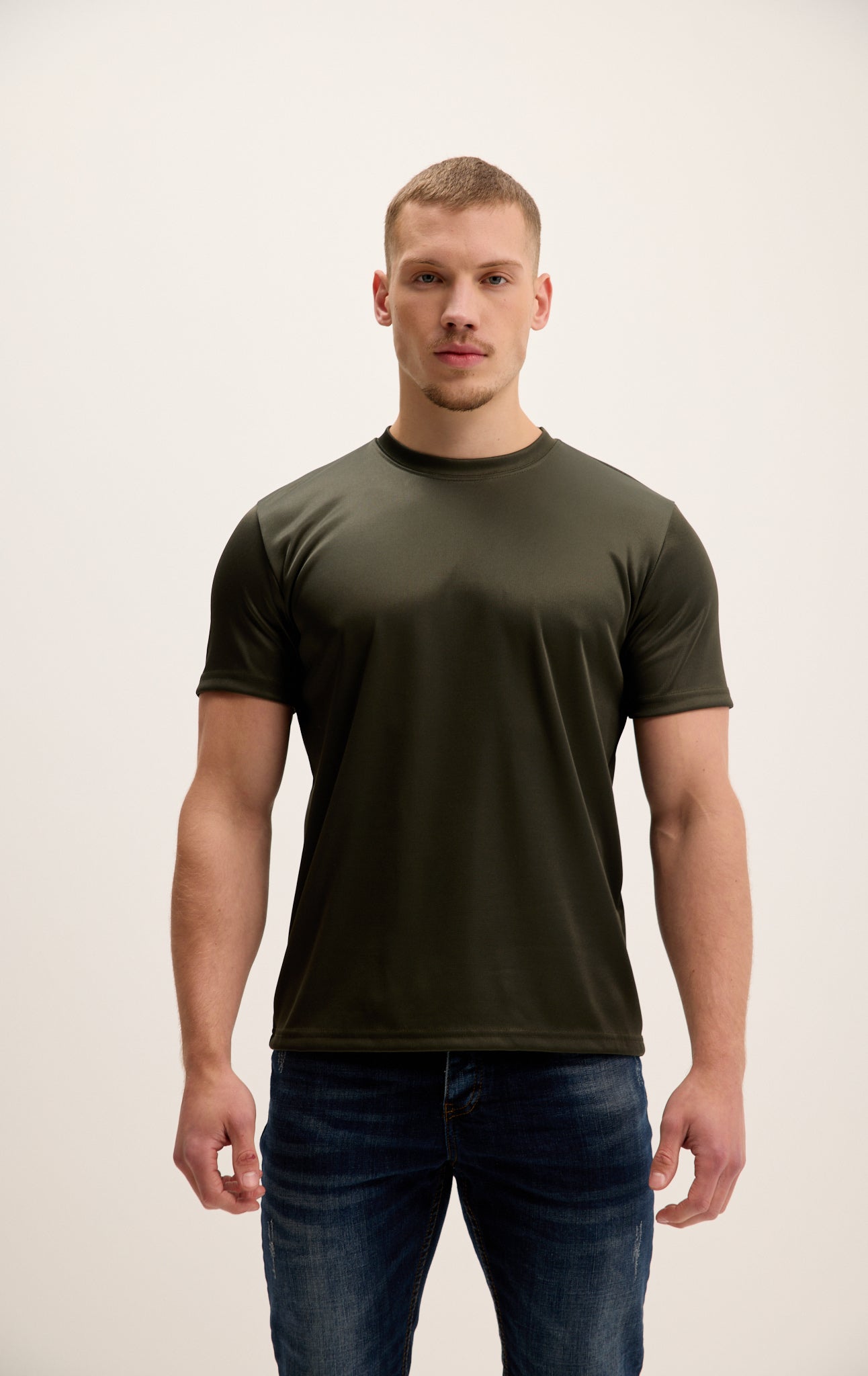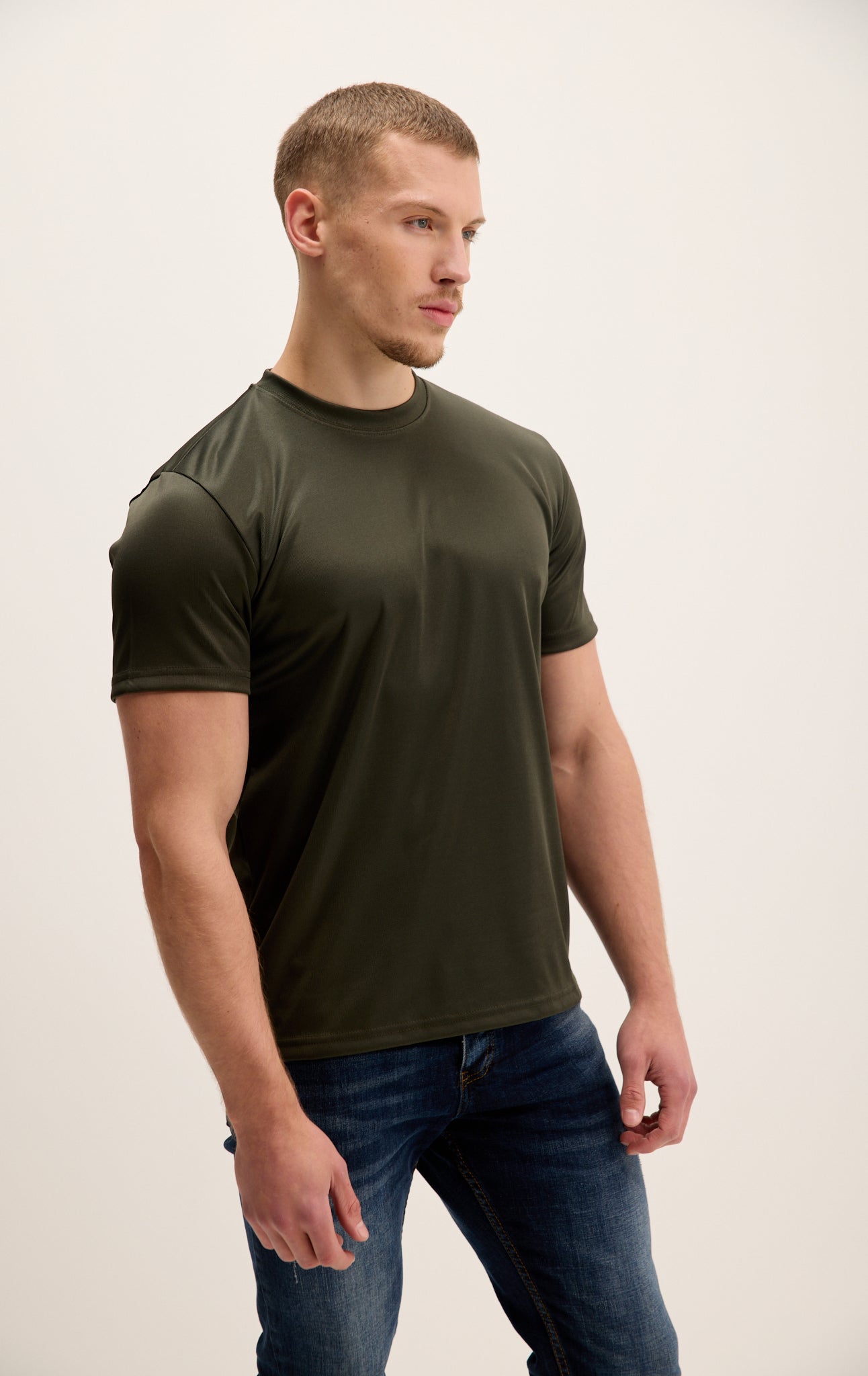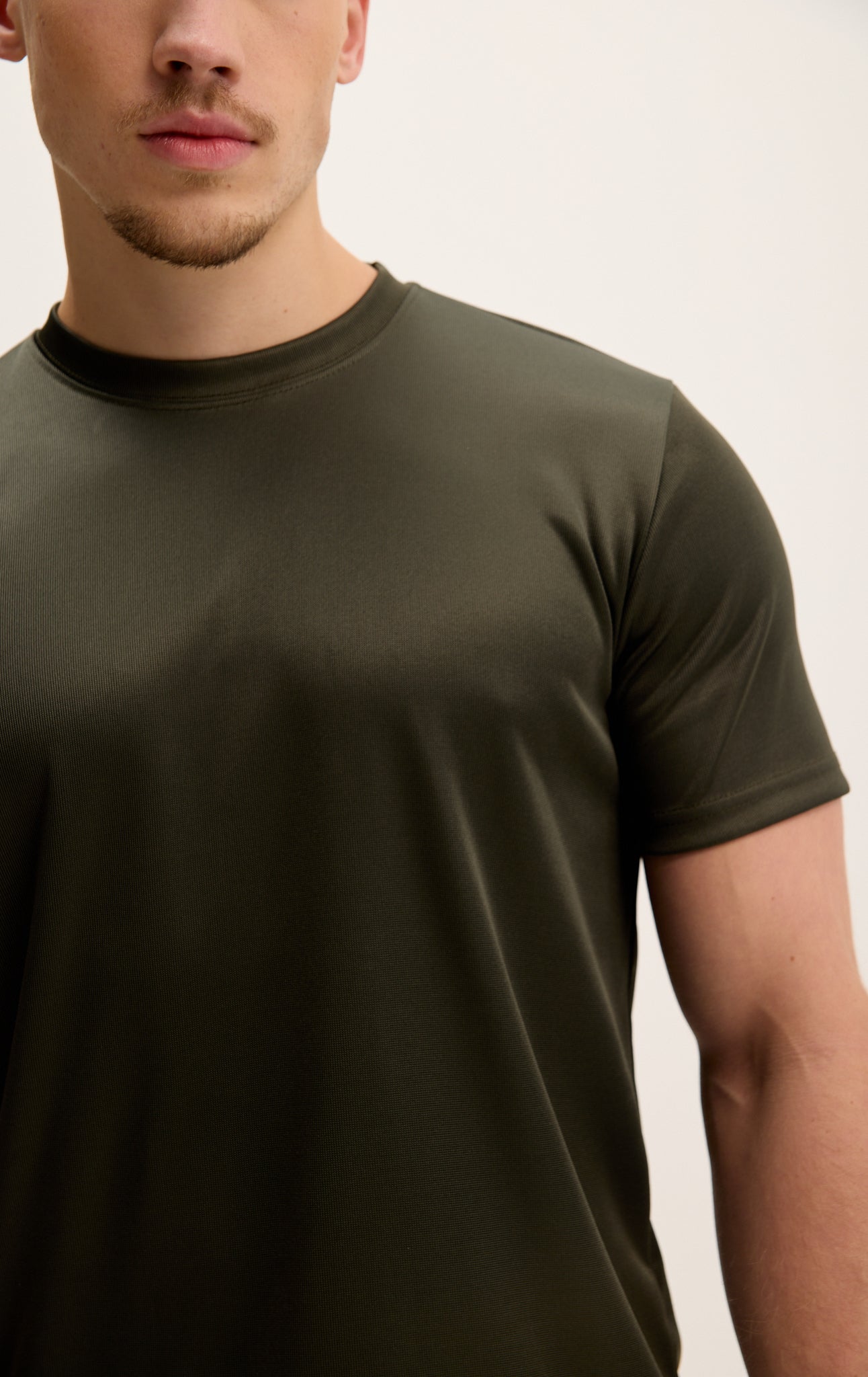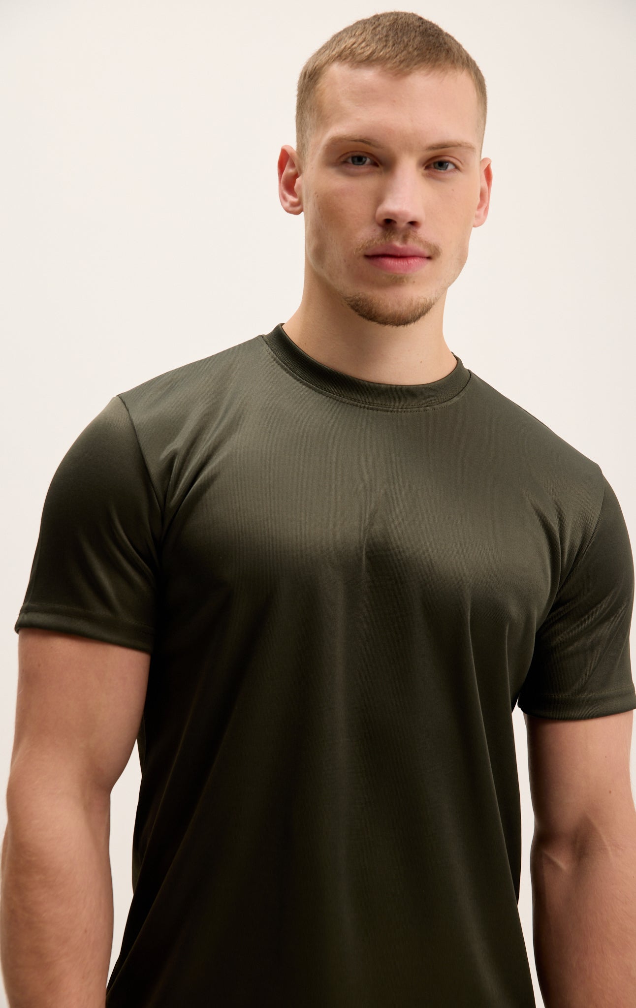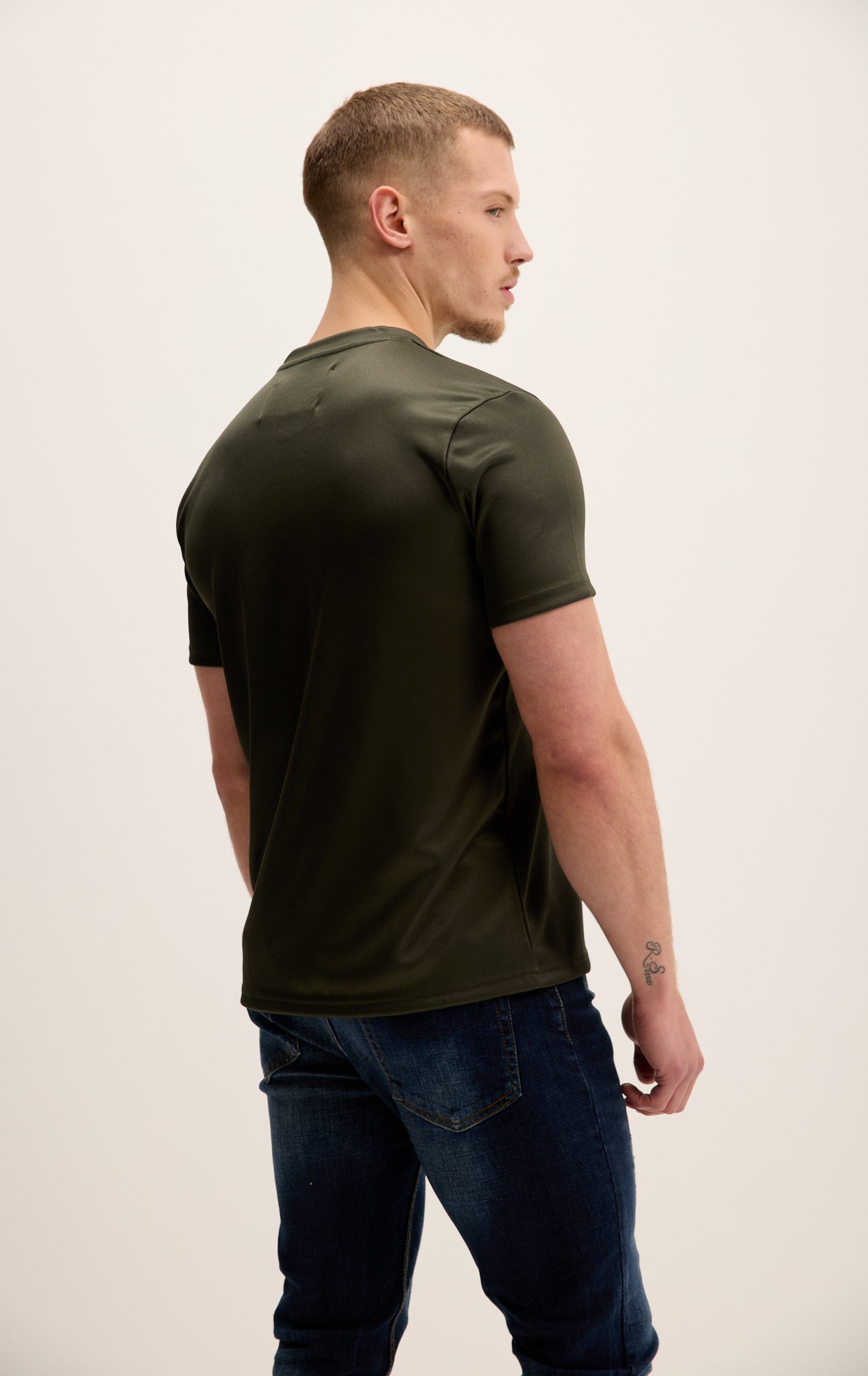 Double Knitted Luxurious Glow Crew Neck T-Shirt - Olive Green