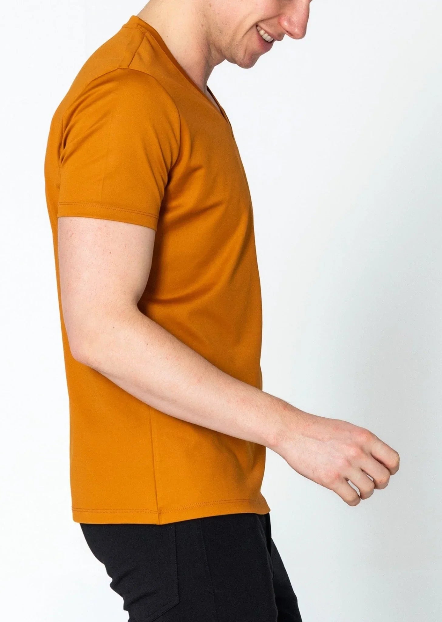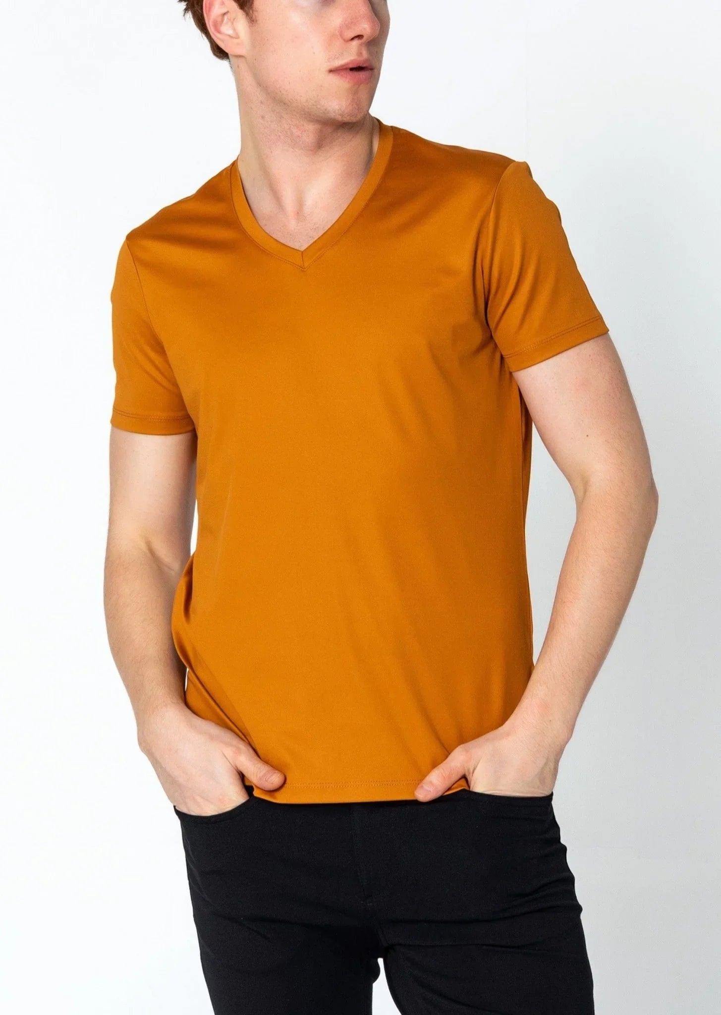Introducing our V-neck Fitted Sleeves T-shirt, the perfect blend of style and comfort! Crafted with a flattering V-neckline and fitted sleeves, this shirt offers a sleek and modern silhouette that complements your physique. Made from high-quality materials, it provides a comfortable fit and feels luxurious against your skin. Whether you're dressing up or keeping it casual, our V-neck Fitted Sleeves T-shirt is a versatile wardrobe essential that will keep you looking and feeling great all day long.