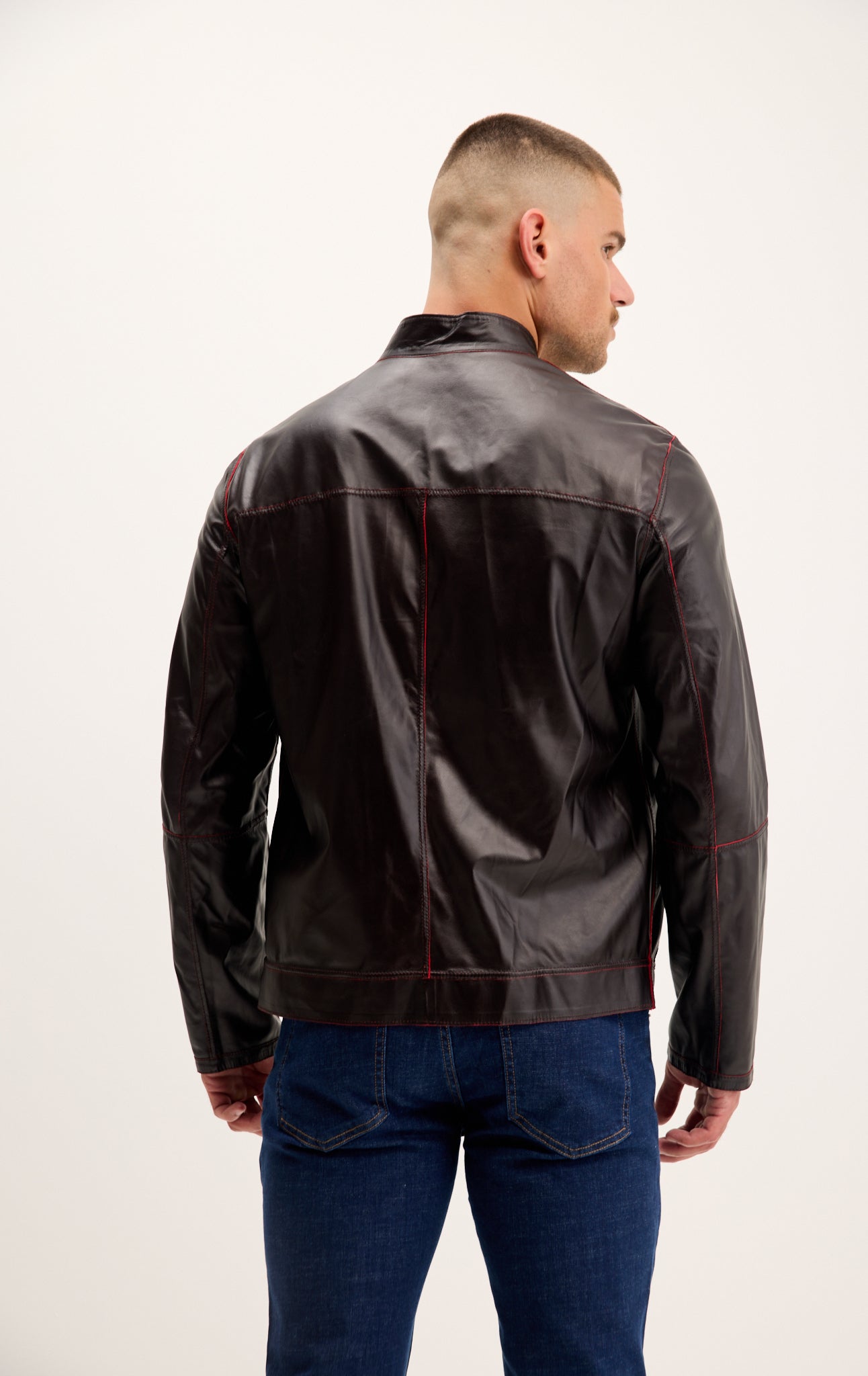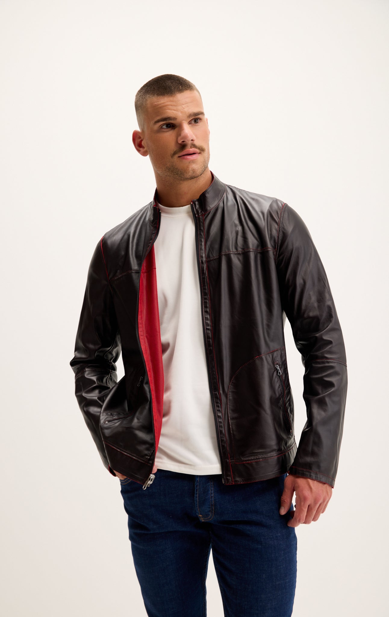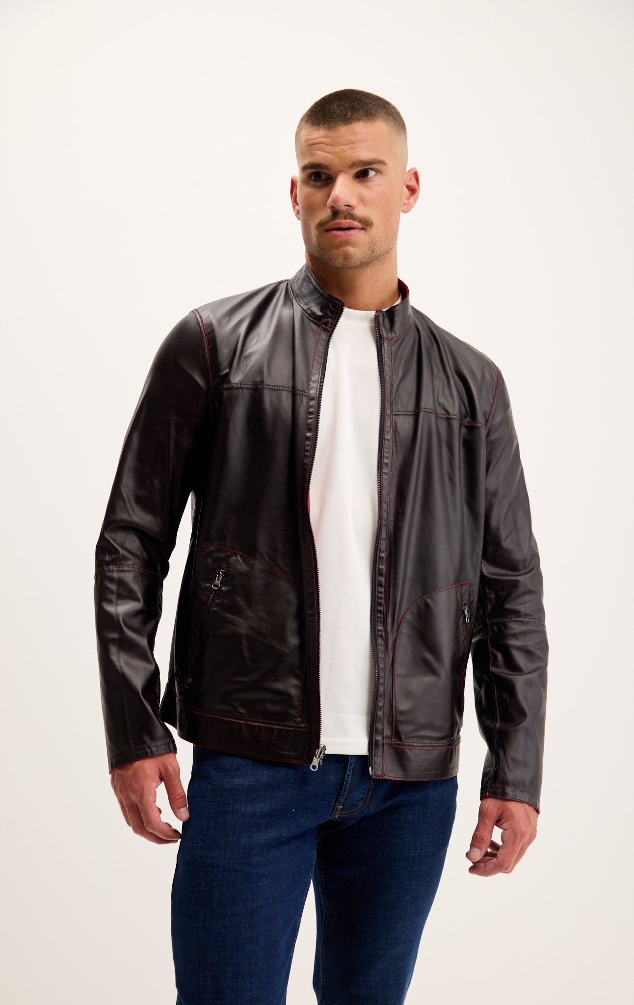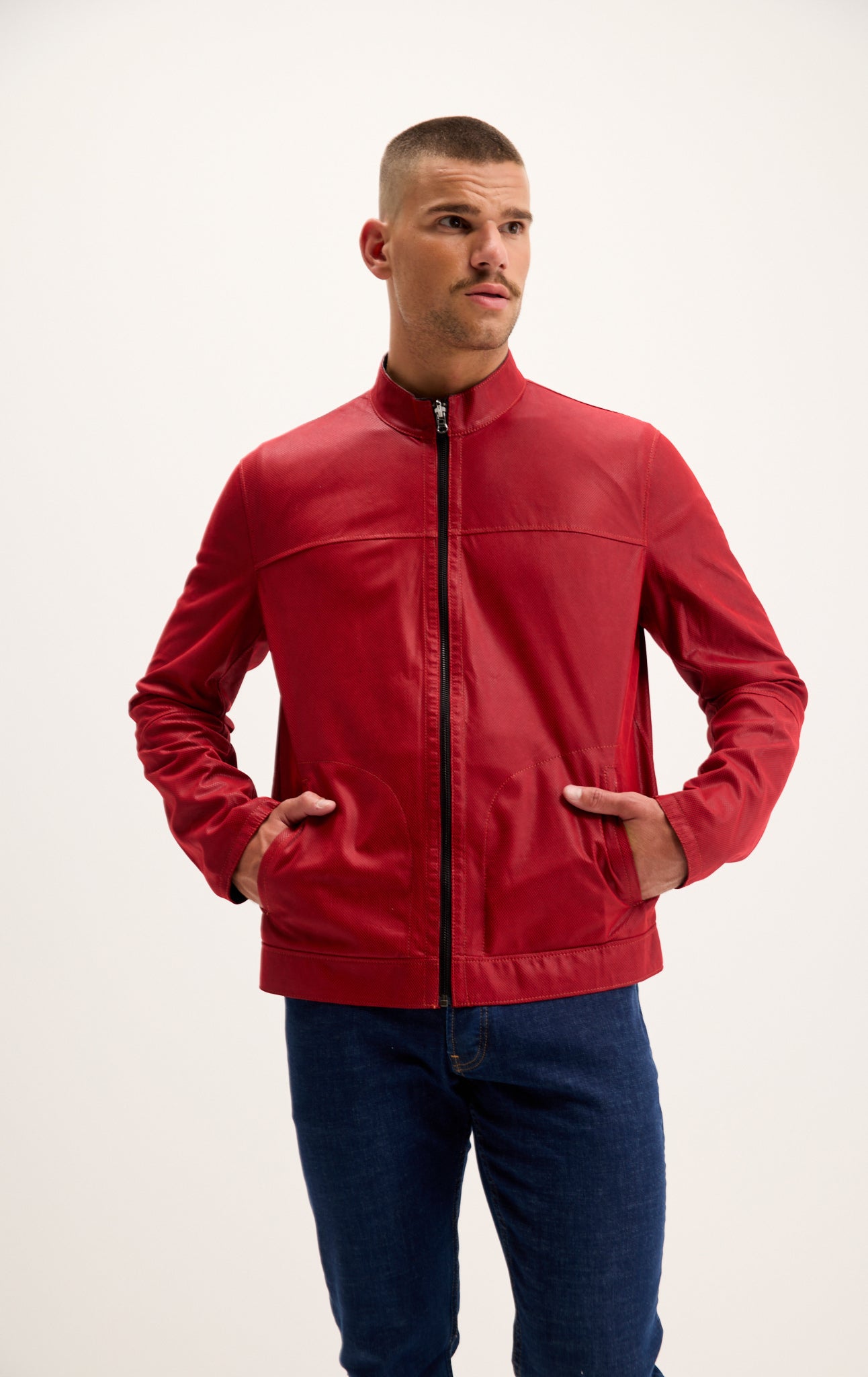 Cut close for a tapered, streamlined fit, this jacket provides a lightweight supple feel for year-round wear. With a zipper closure that runs the length of the jacket, this edgy design pairs well with just about any outfit for an added statement.