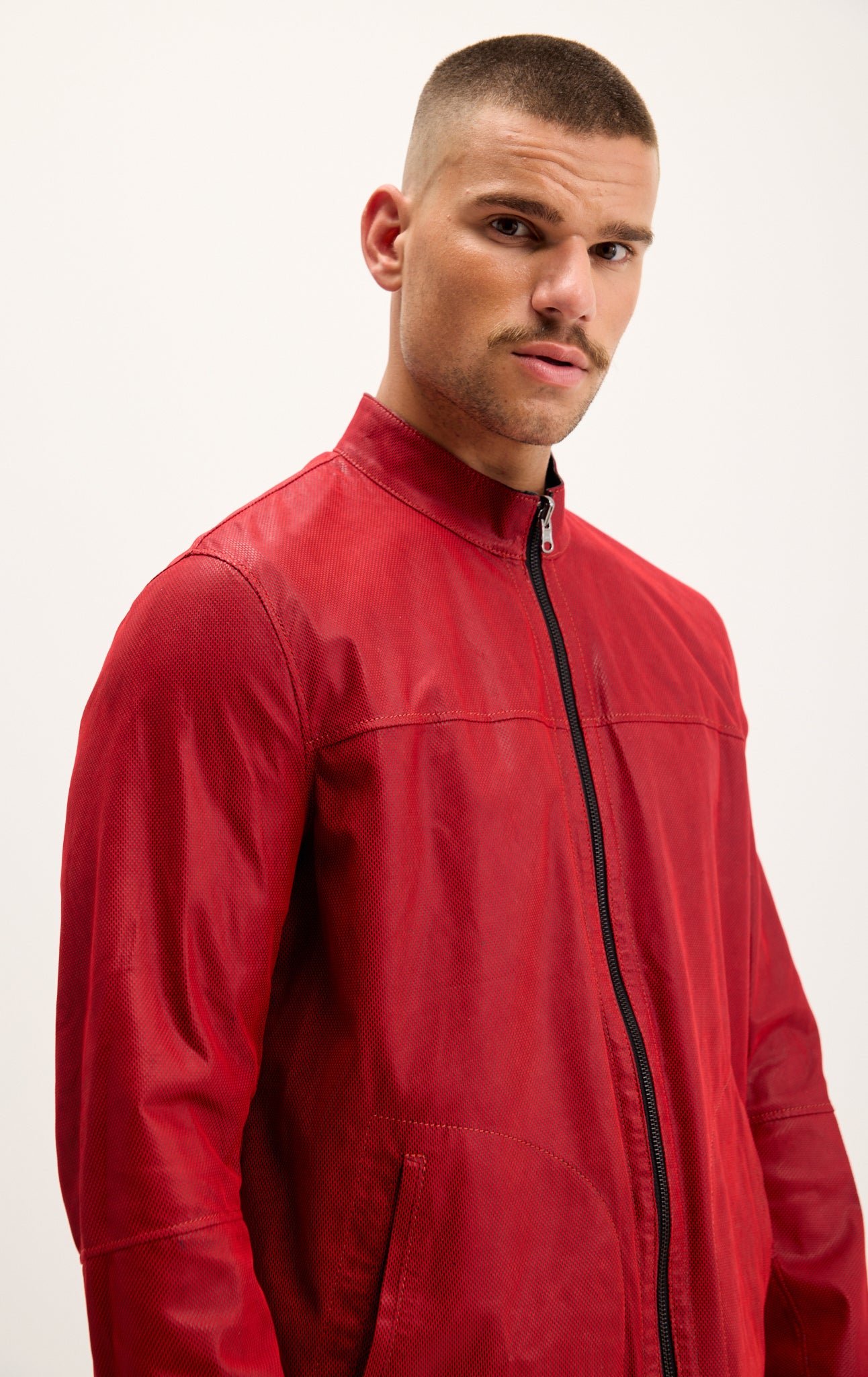 Vanguard Reversible Perforated Suede & Leather Jacket - Red/Navy