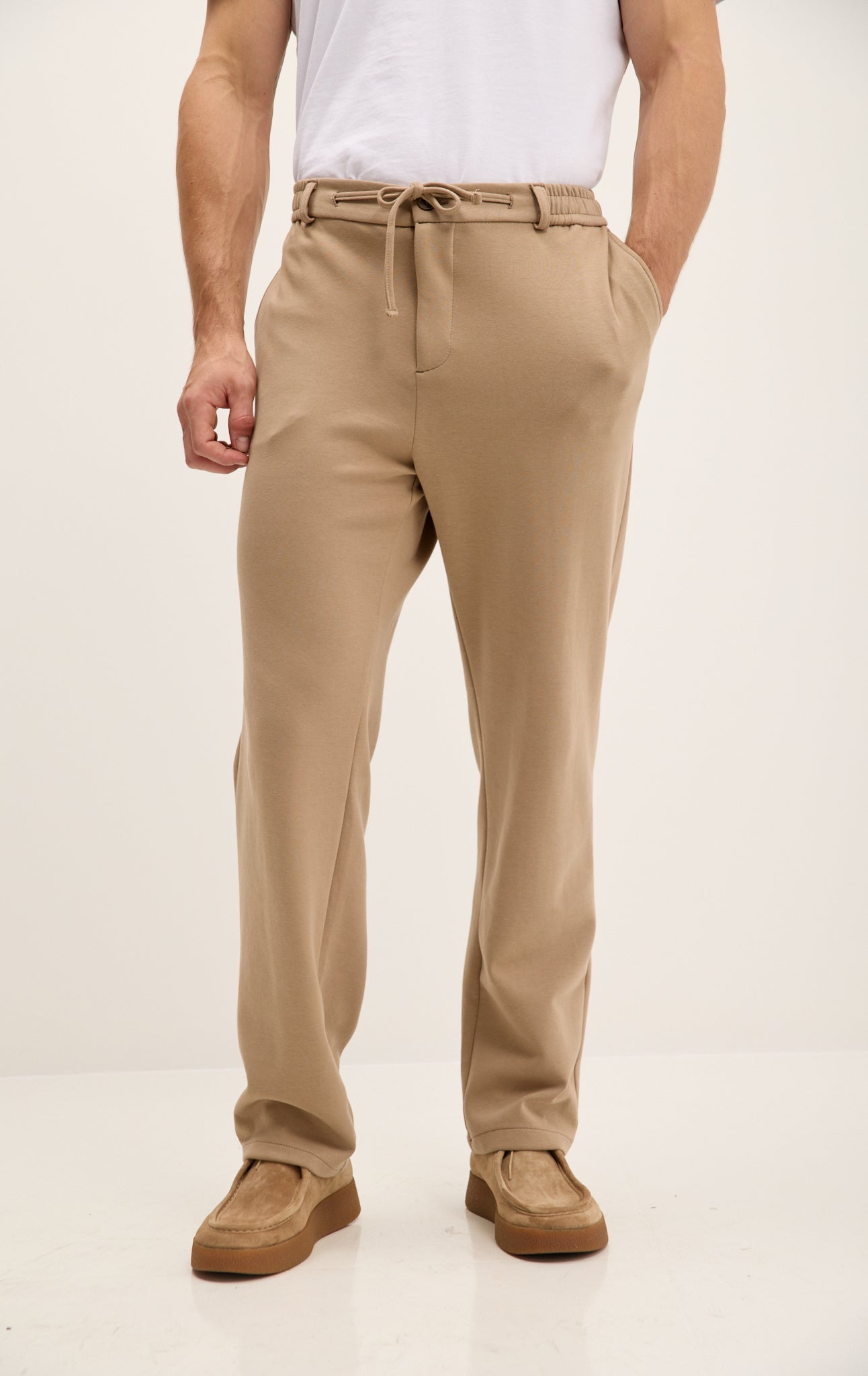 Relaxed Drawstring Casual Pants - Beige