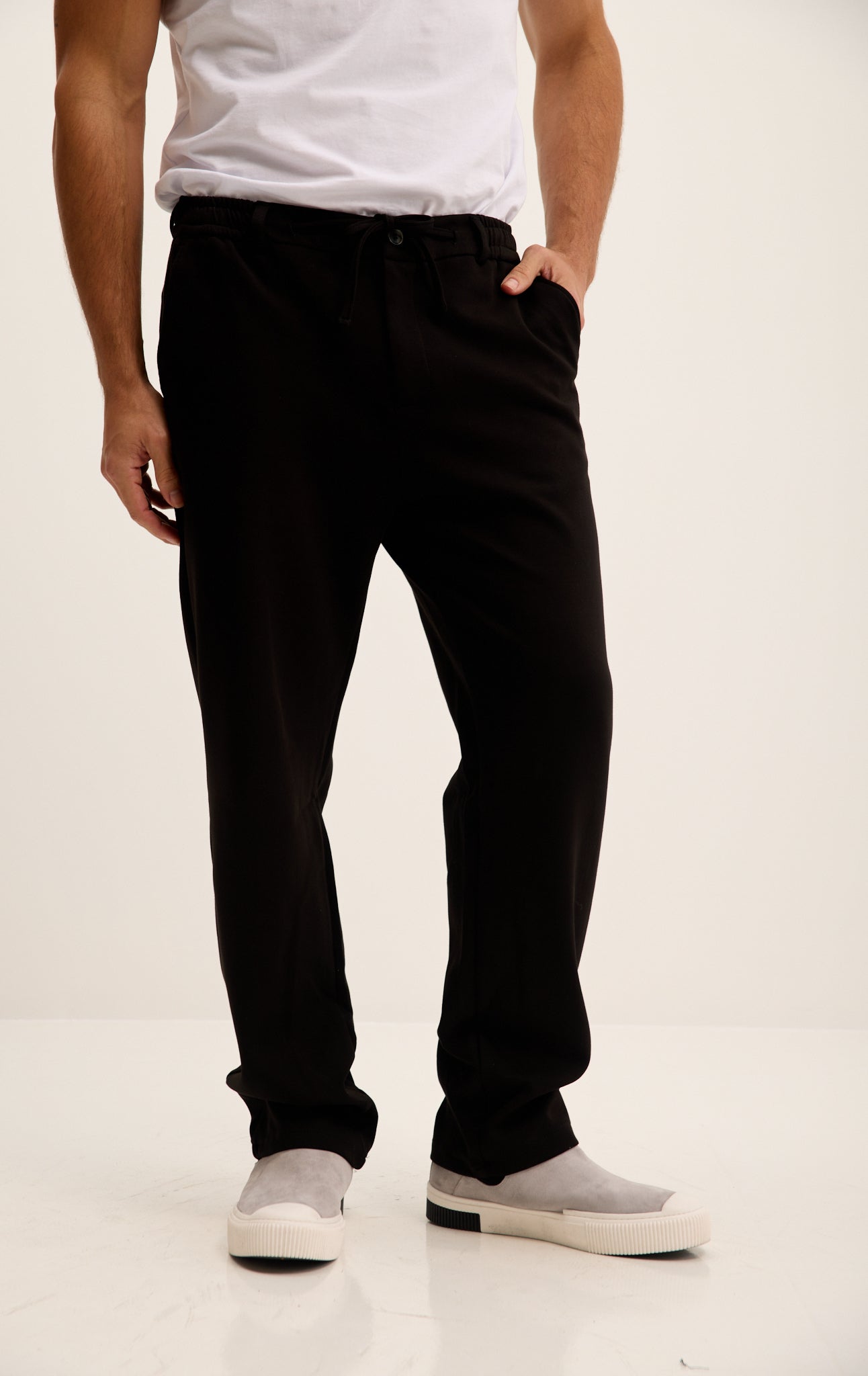 Relaxed Drawstring Casual Pants - Black